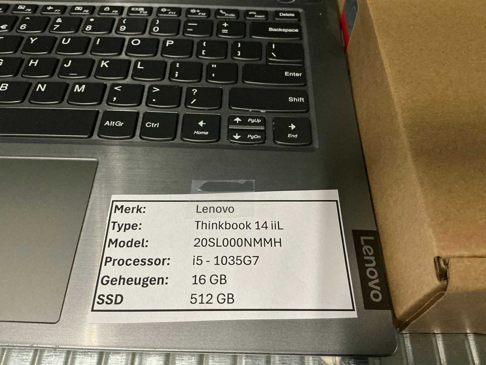 Processor: i5-1035G7. Geheugen: 16GB. SSD: 512GB. Merk: Lenovo Type: Thinkbook 14 iiL
