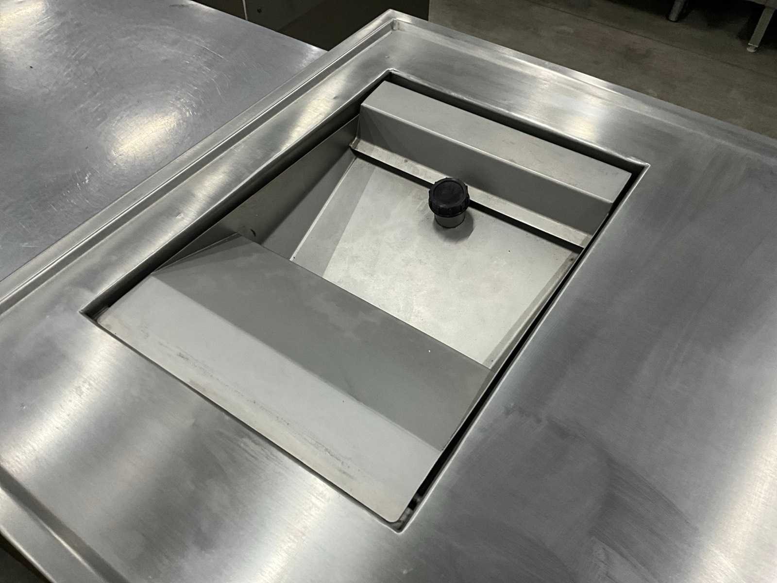 Merk: IMC Type: waste pro bench unit 1000-725 Rvs: true Aansluiting: 400V Lengte: 100cm Breedte: 70cm Hoogte: 89cm