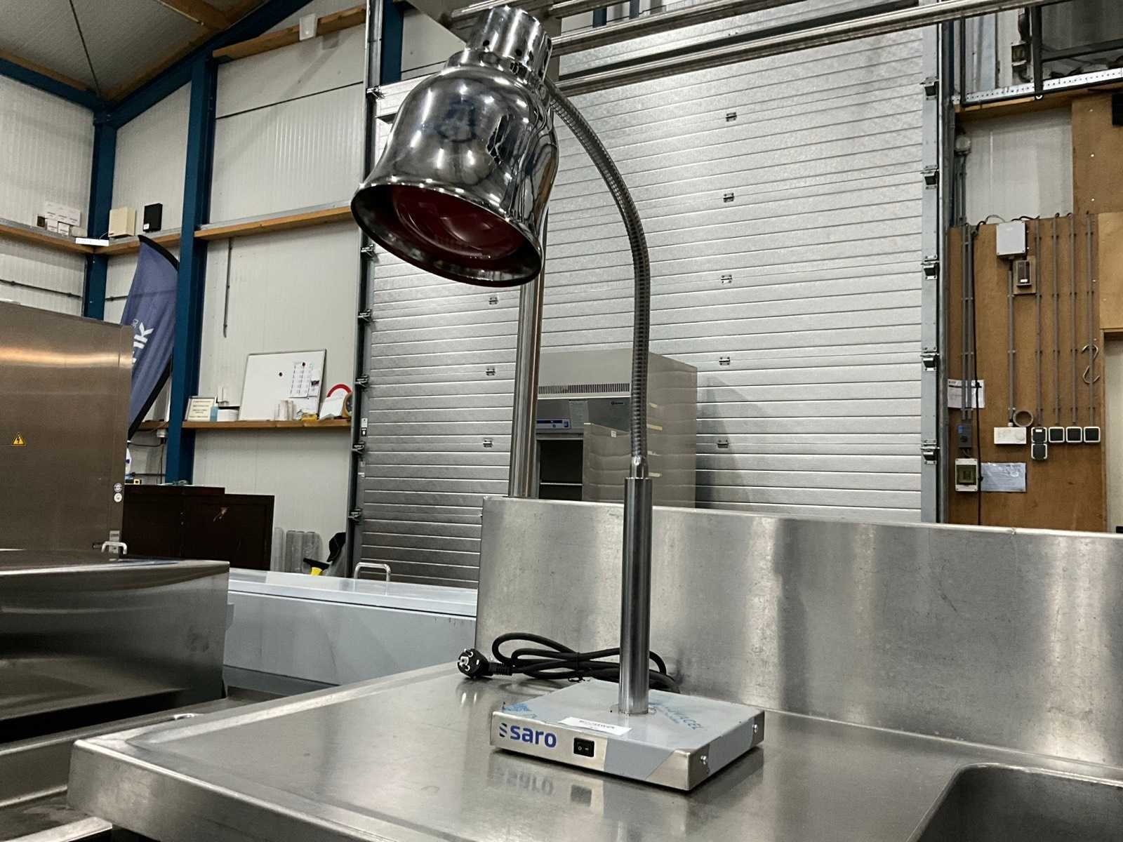 Ongebruikt; inclusief lichtbron. Merk: Saro Totale afmeting L: 22cm Totale afmeting Breedte: 22cm Totale afmeting Hoogte: 90cm Aansluiting: 230V Capaciteit.: 250W Rvs: true Staand model: true