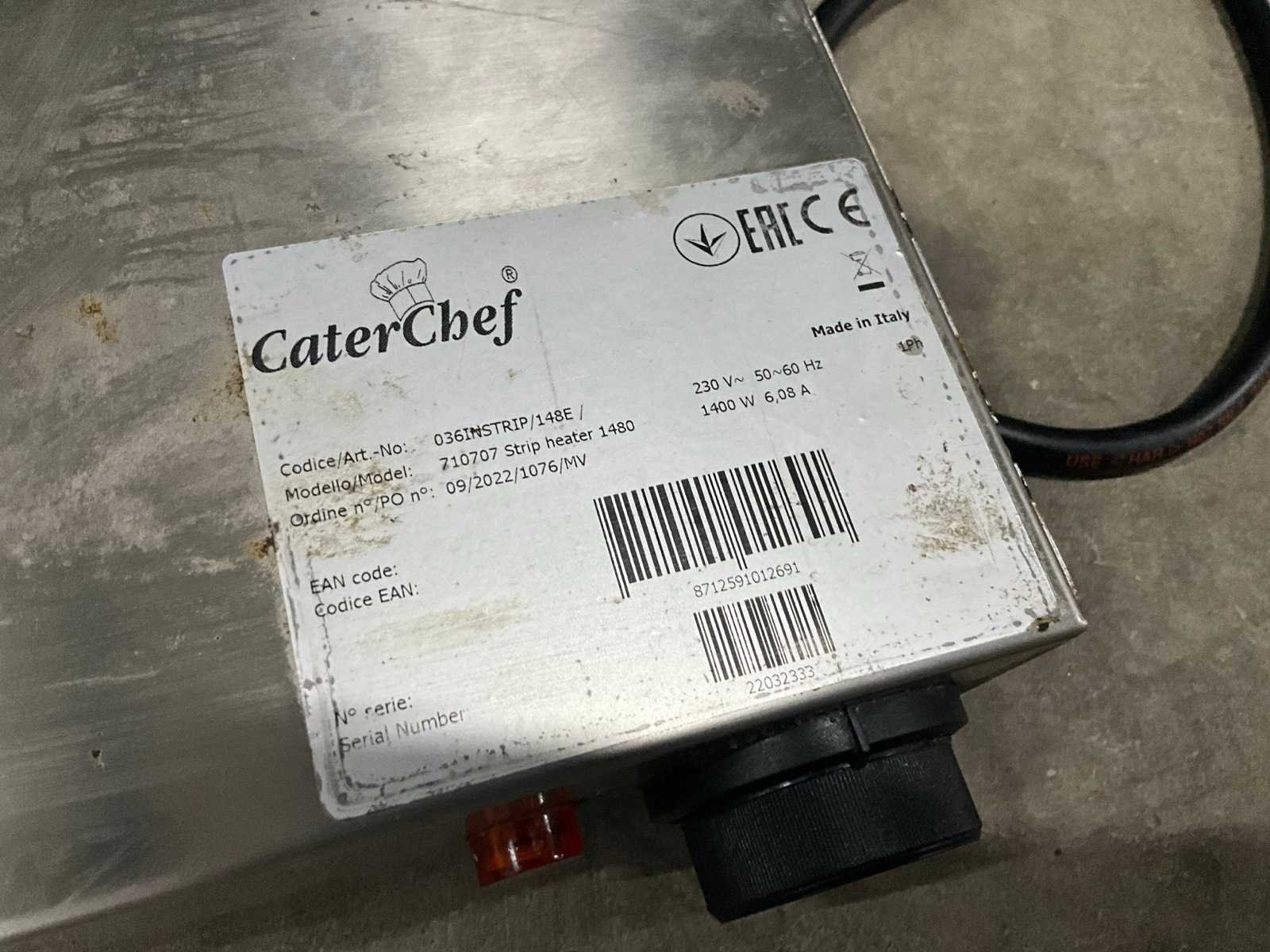 1400 watt. Merk: CaterChef Type: Strip Heater 1400 Totale afmeting L: 148cm Totale afmeting Breedte: 15cm Totale afmeting Hoogte: 7cm Rvs: true Regelbare thermostaat: true Aansluiting: 230V