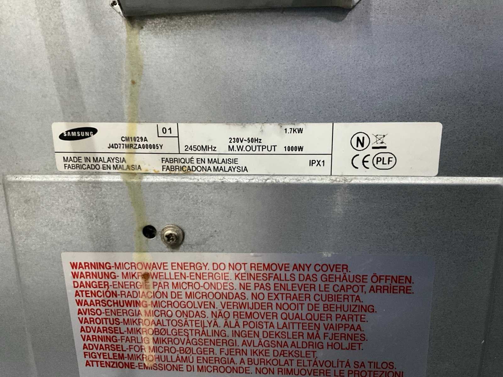 1,7 kw. Merk: Samsung Type: CM 1028 A Totale afmeting L: 46cm Totale afmeting Breedte: 60cm Totale afmeting Hoogte: 37cm Vermogen: 1700W Rvs: true Aansluiting: 230V