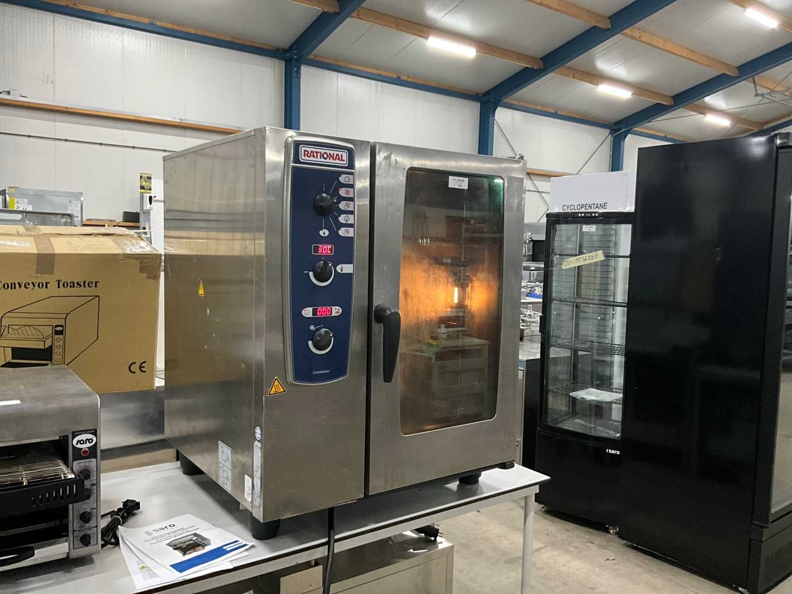 10x 1/1 GN Merk: Rational Type: CM 61 Aantal niveau's: 10 Vermogen: 19000W Aansluiting: 400V Elektrisch: true Totale afmeting L: 85cm Totale afmeting Breedte: 83cm Totale afmeting Hoogte: 1050cm