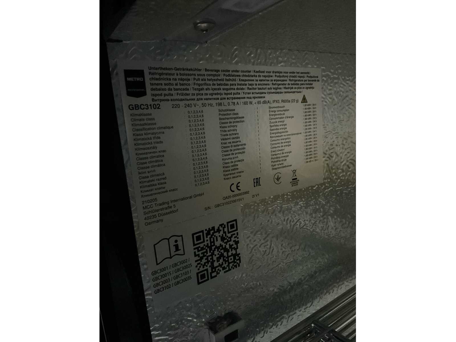 Ongebruikt; 160 watt. Merk: Metro Type: GBC3102 Capaciteit.: 198l Schuifdeur(en): 2 Aansluiting: 230V Totale afmeting L: 900mm Totale afmeting Breedte: 510mm Totale afmeting Hoogte: 880mm