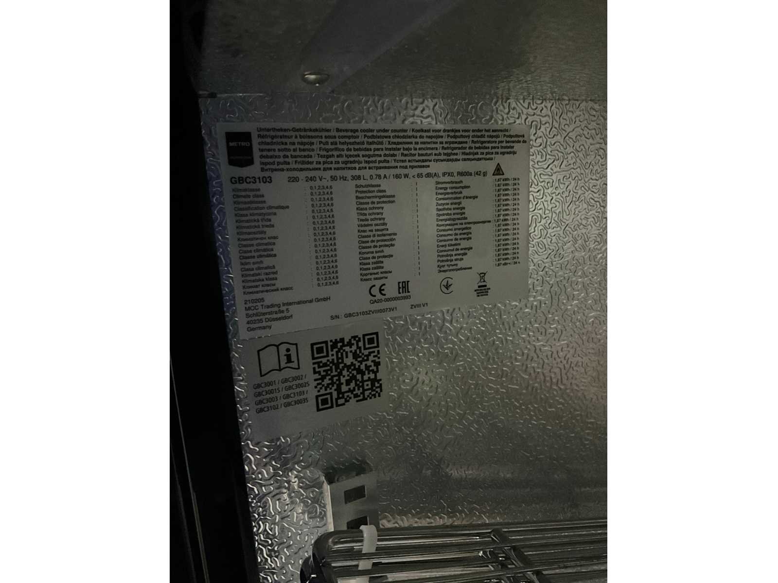 Demo model; 160 watt. Merk: Metro Type: GBC3103 Capaciteit.: 308l Schuifdeur(en): 3 Aansluiting: 230V Totale afmeting L: 1350mm Totale afmeting Breedte: 510mm Totale afmeting Hoogte: 880mm