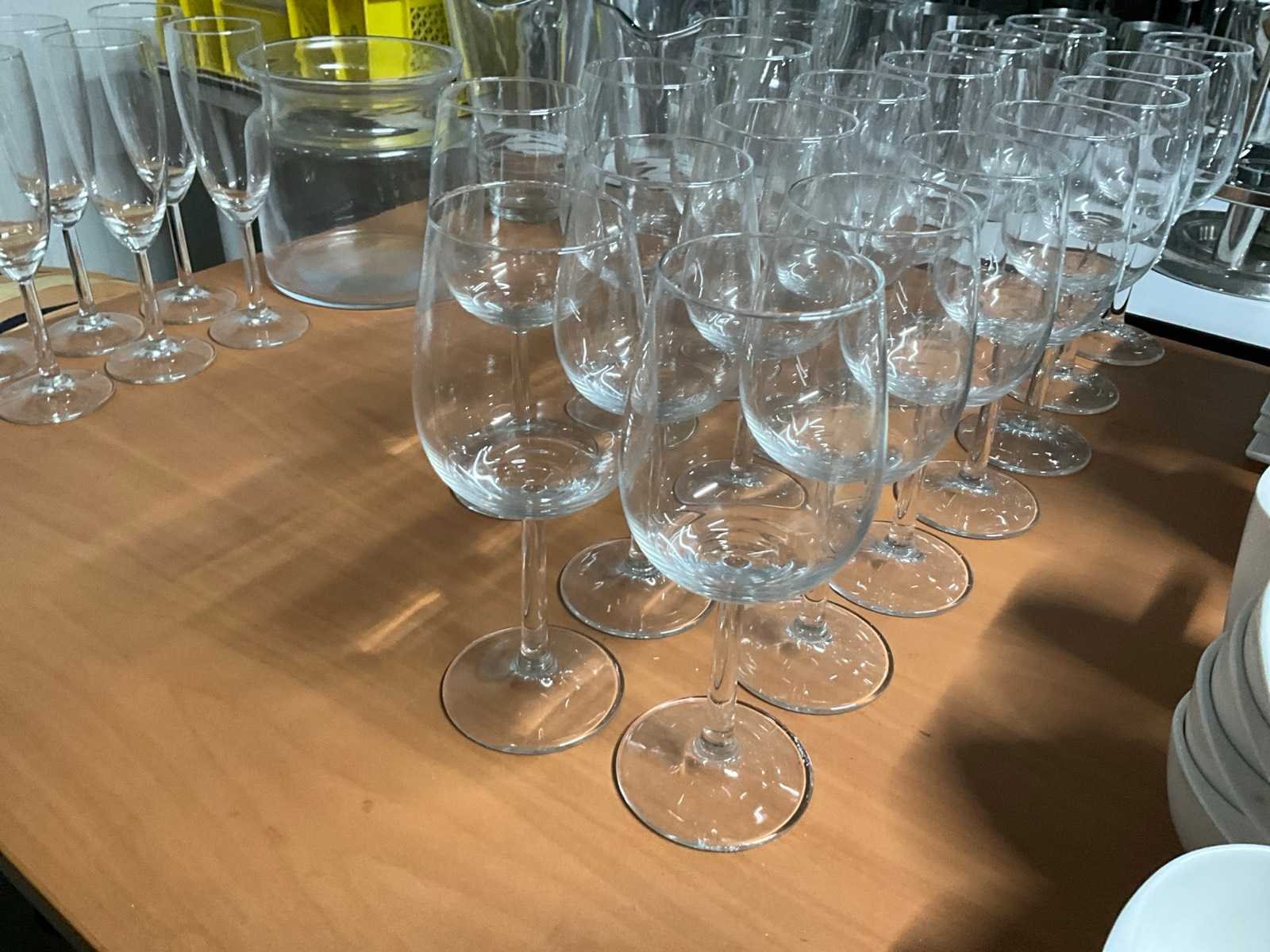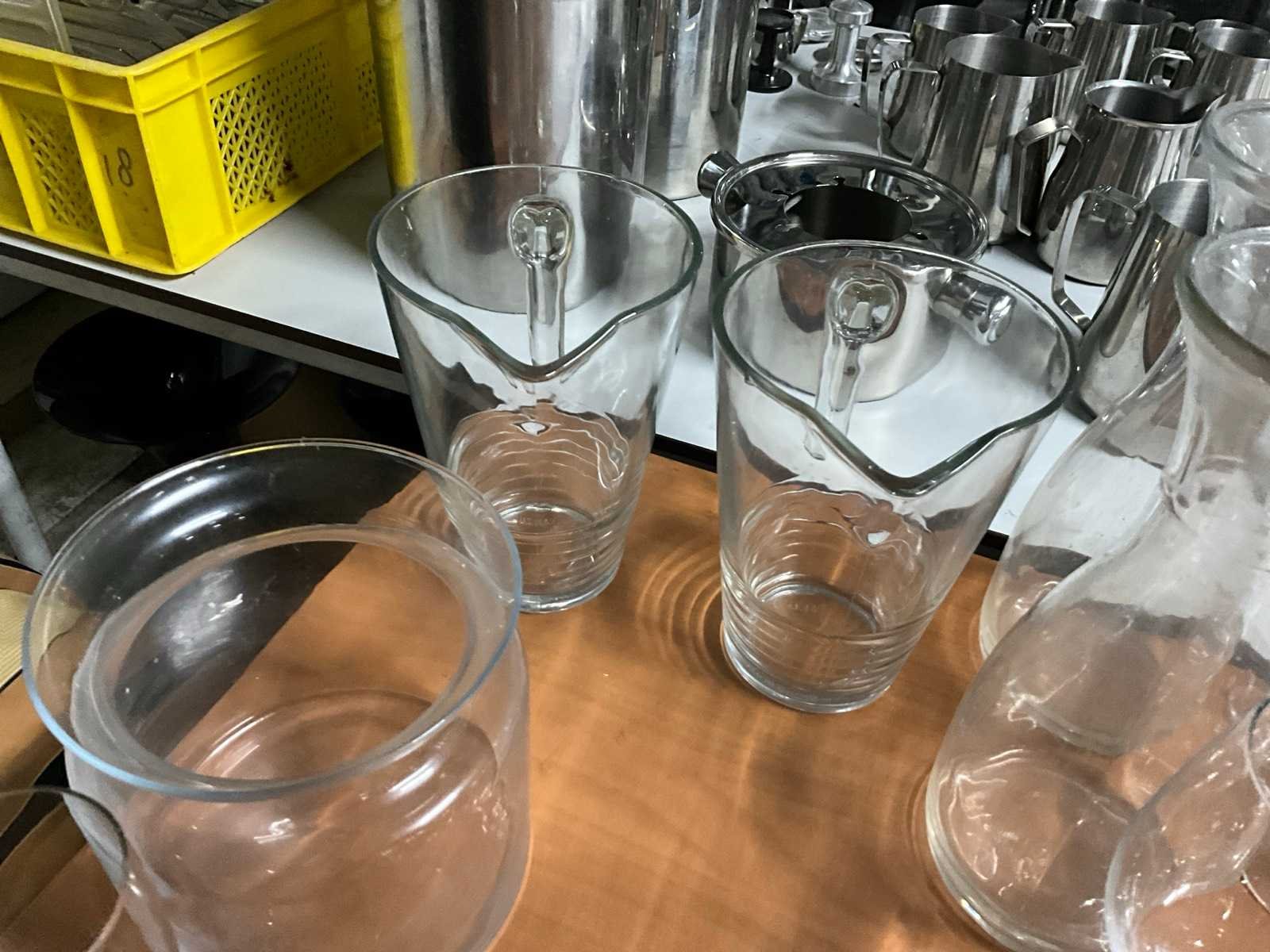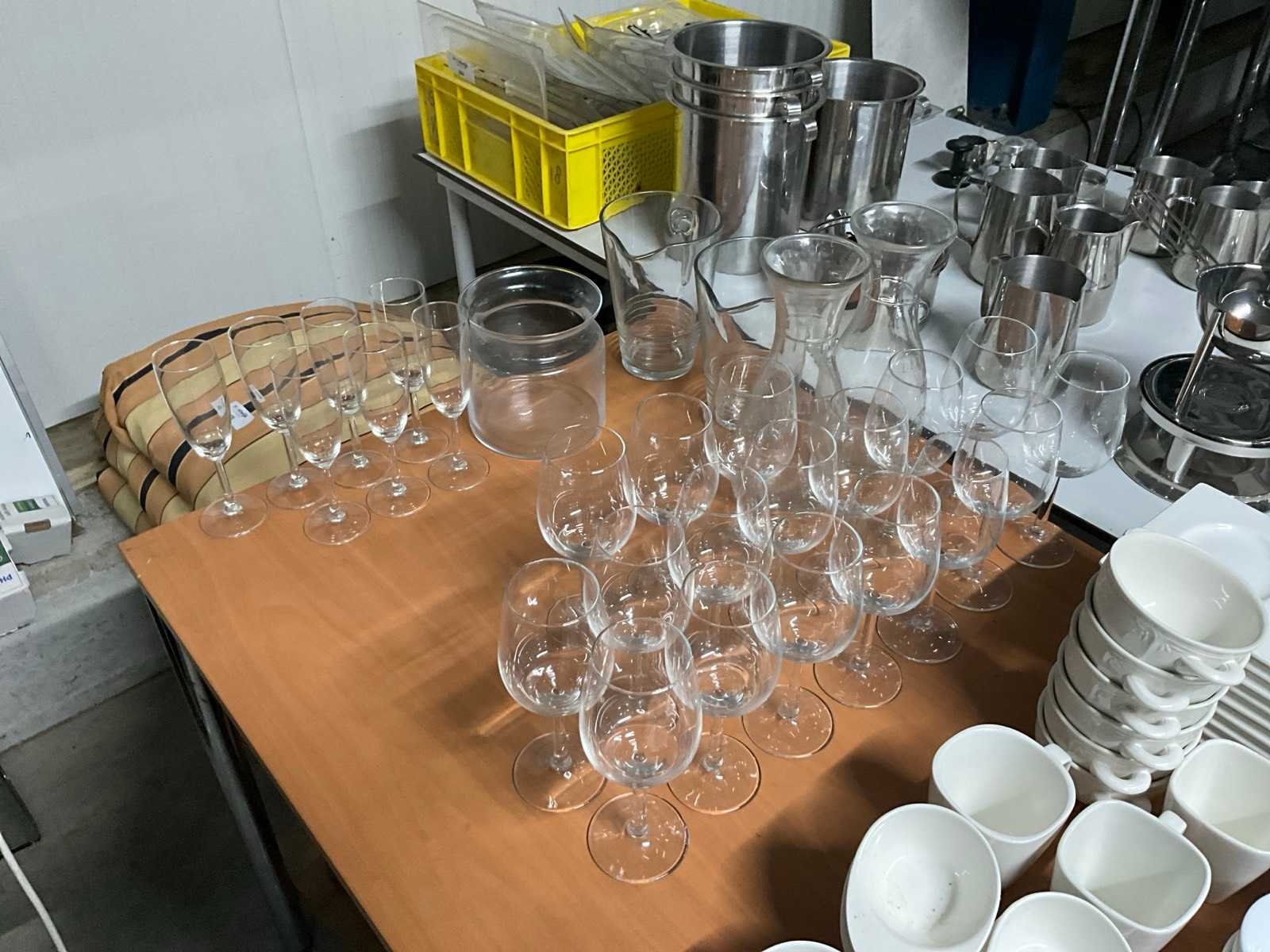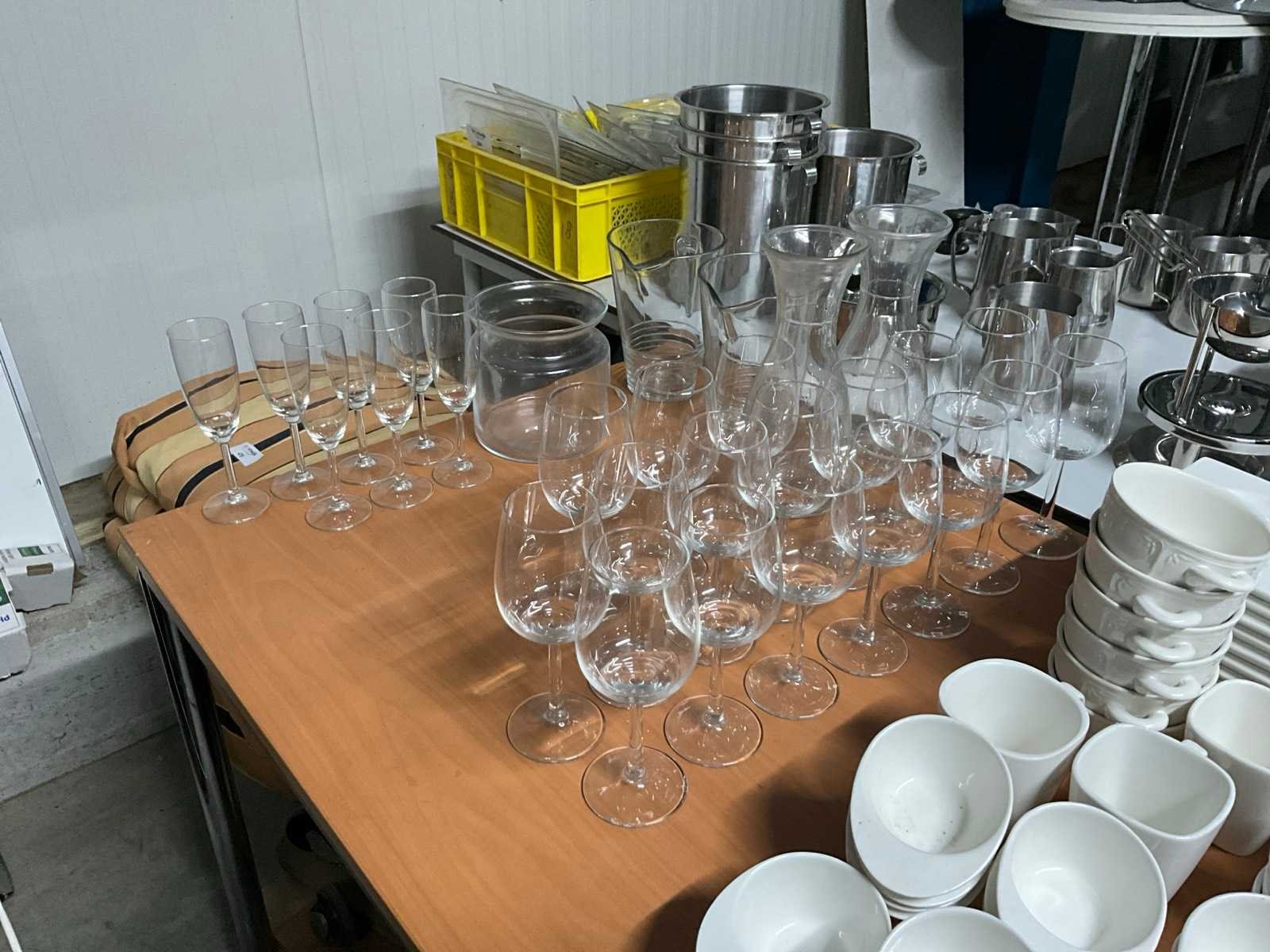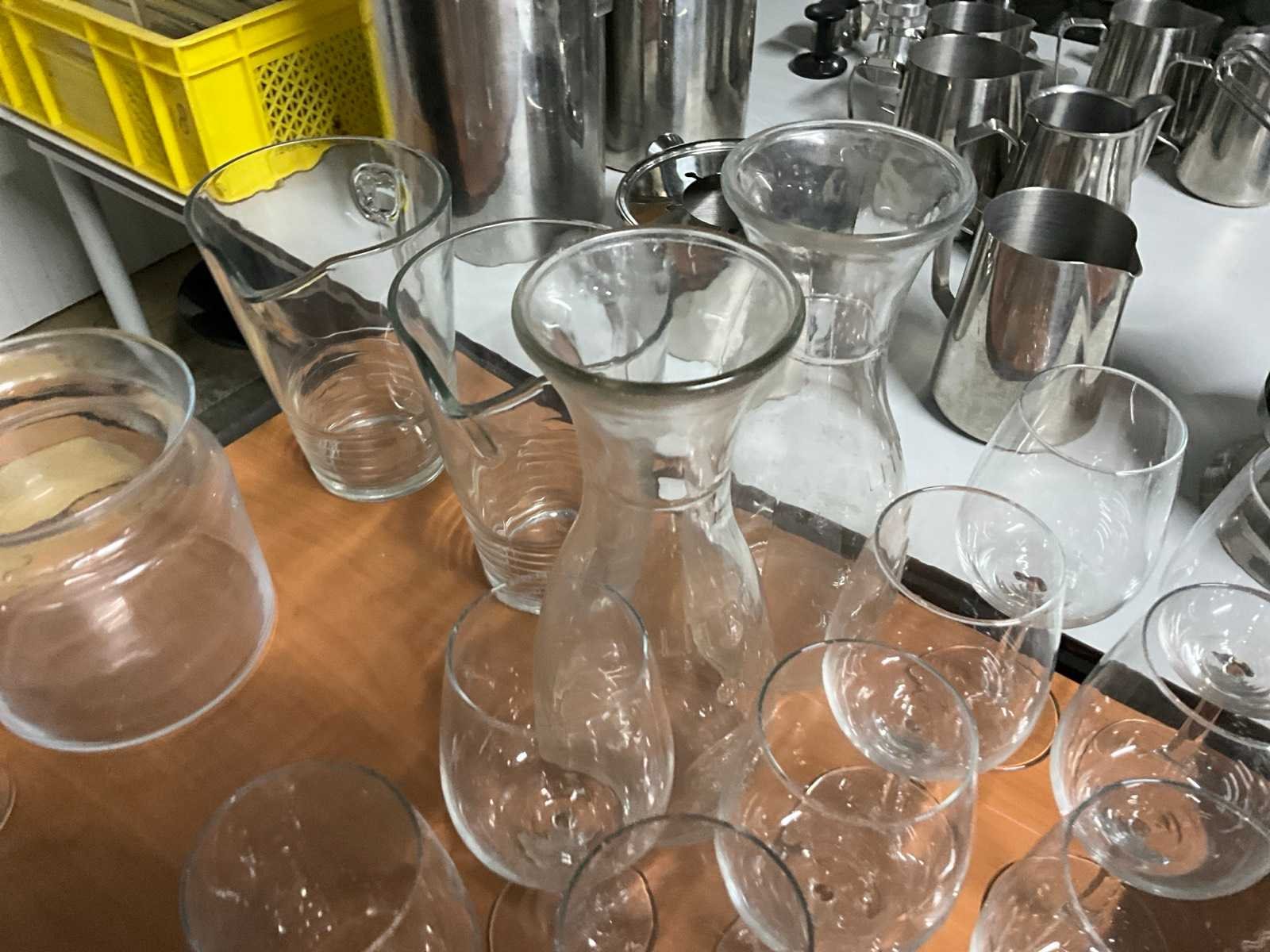 Wijnglazen, karaffen en kannen.