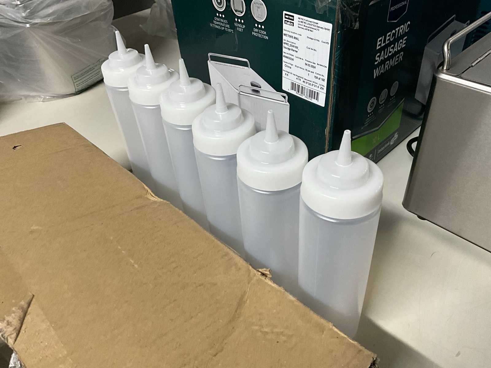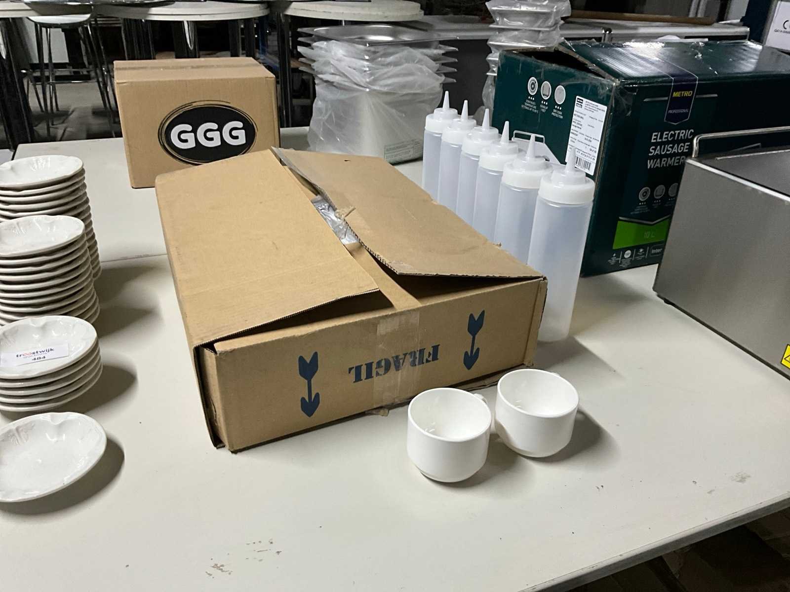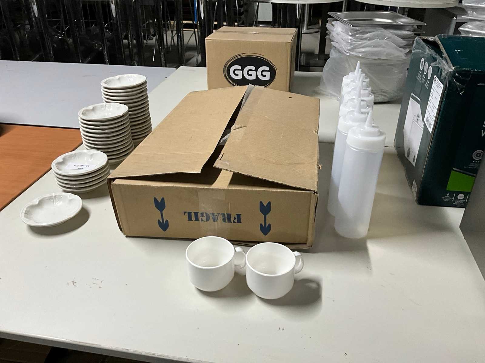 Ongebruikt; 50 x beker; 6 x sausfles Merk: AMC Materiaal: kunststof