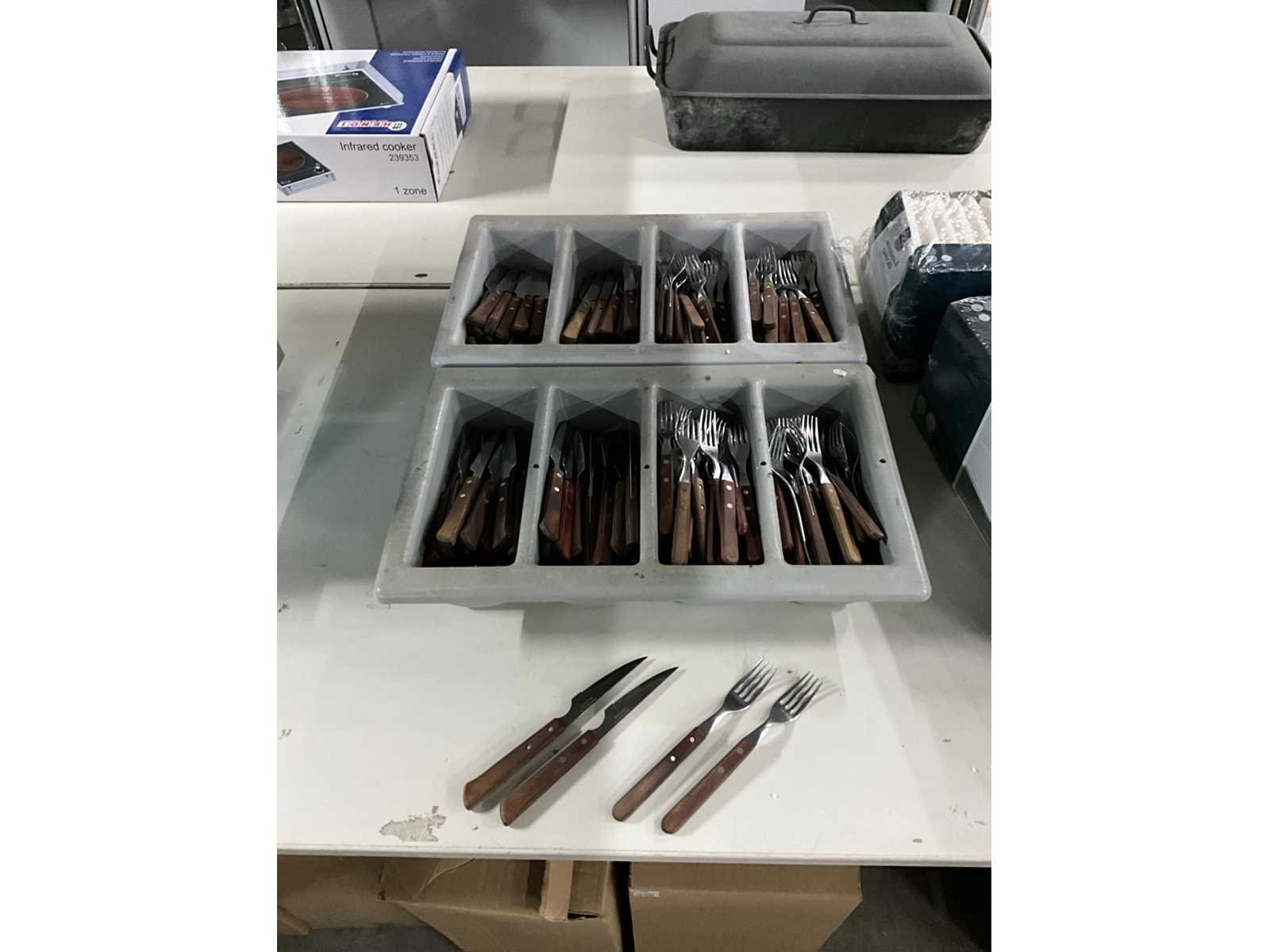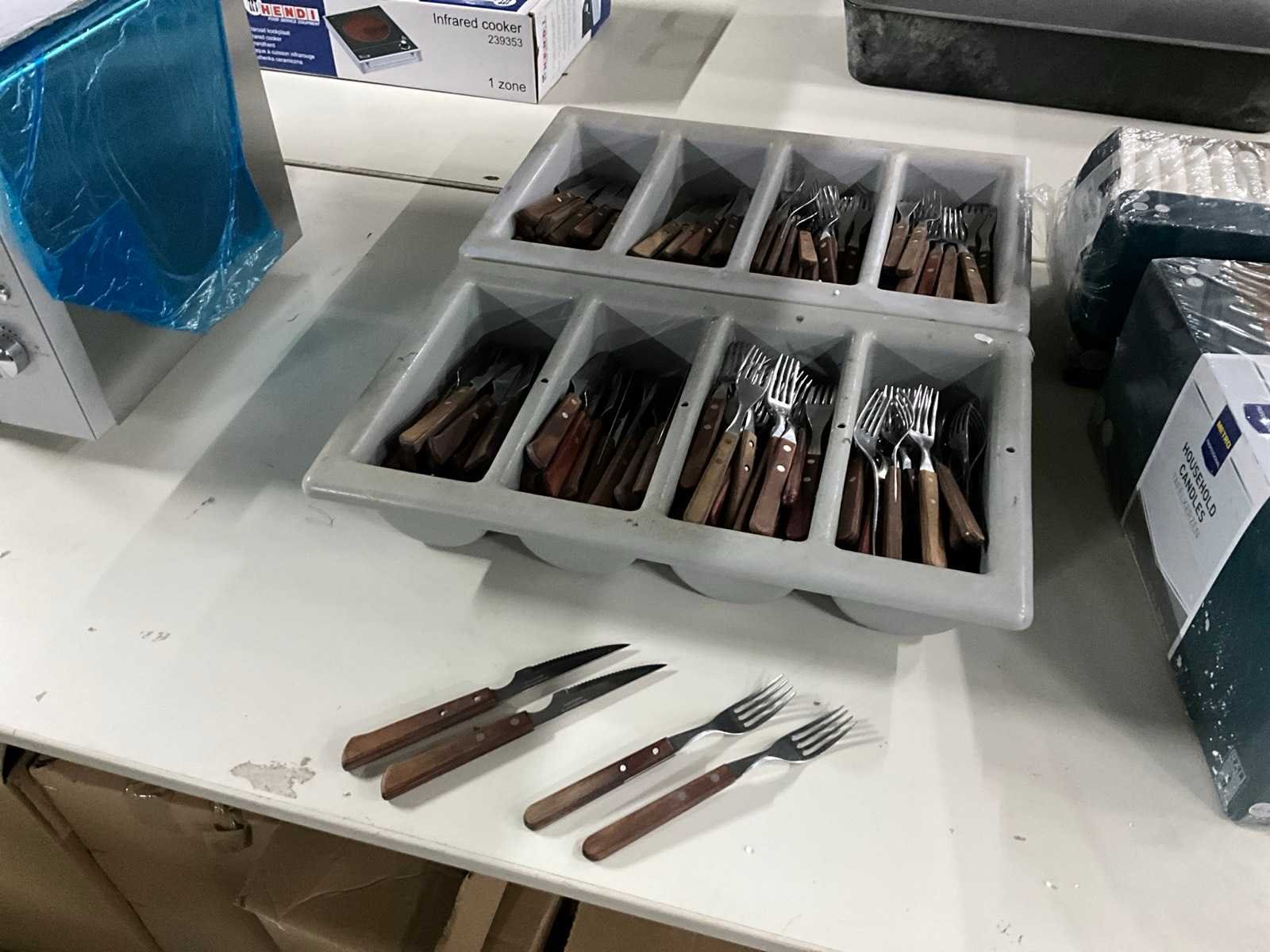 Identiek; 90 x mes, 110 vorken; inclusief 2 bestekbakken. Merk: Tramontina Totale afmeting L: 22cm Rvs: true