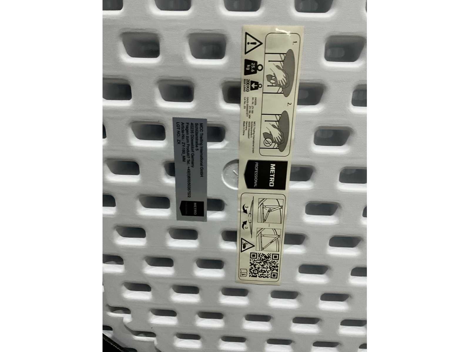 Ongebruikt; inklapbaar; beschadigd.; diam. 178 cm. Merk: Metro Type: ZY-180 Metaal: true Totale afmeting Hoogte: 75cm Kunststof: true