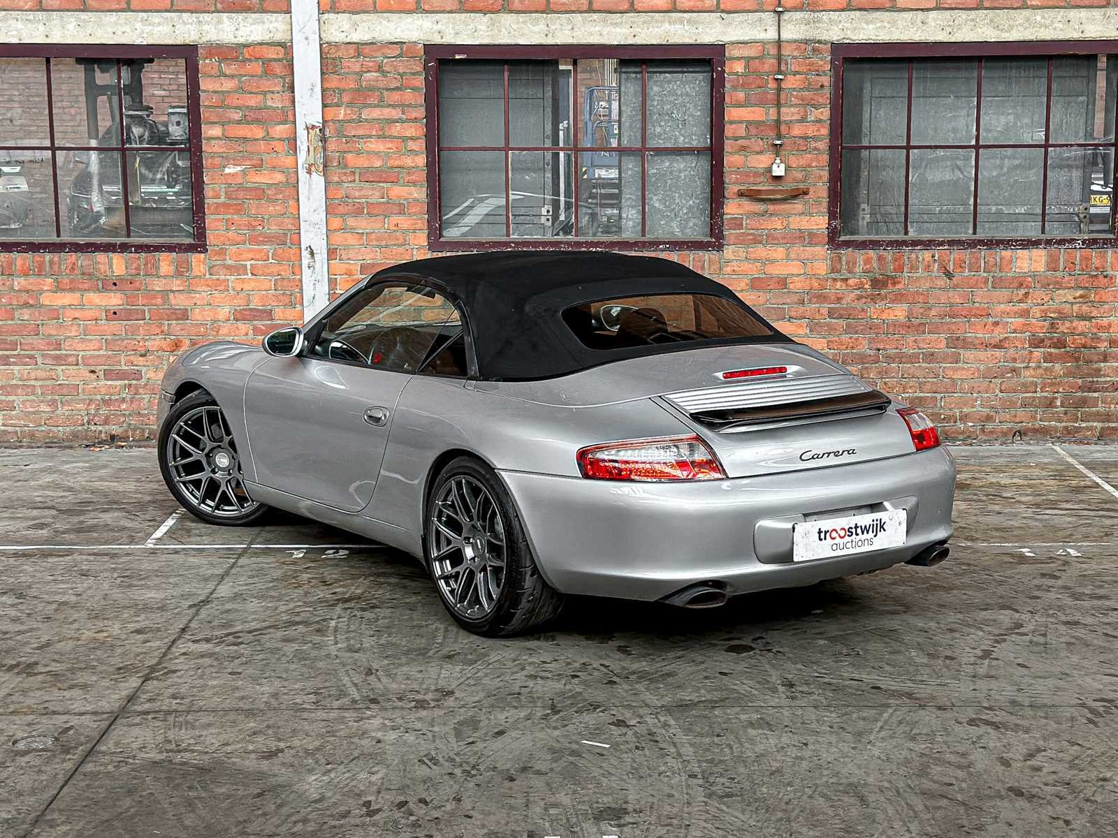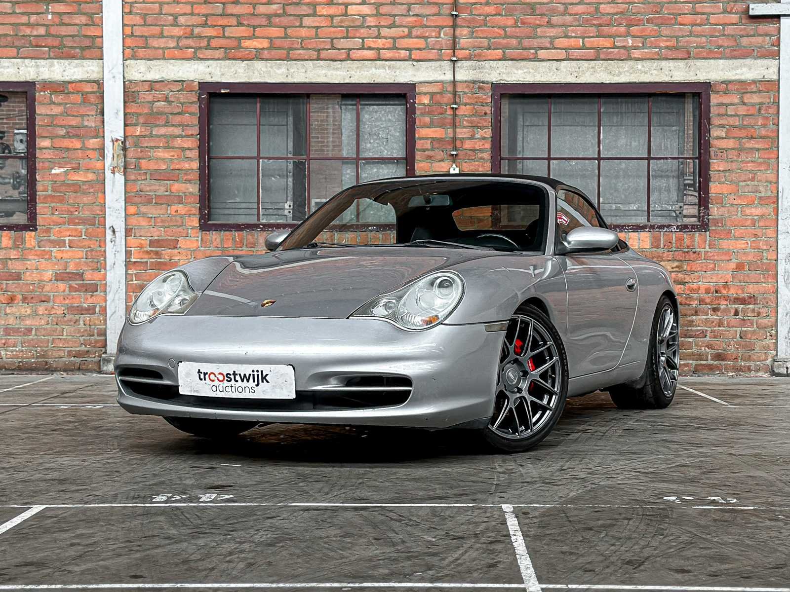 Merk: Porsche Model: 911 Type: Cabriolet Carrera 3.6 996 Facelift Brandstof: benzine Afgelezen mijlenstand: 105415mi Chassisnummer: WP0CA299X3S650406 Datum eerste toelating: 26-6-2003 Vermogen (pk): 320hp Aandrijving: Achterwielaandrijving Kleur: zilver Transmissie: Handgeschakeld Stuurwiel: Links gestuurd Carrosserie: Cabriolet Nationaliteit documenten: USA (salvage) title, invoerrechten en BTW zijn voldaan