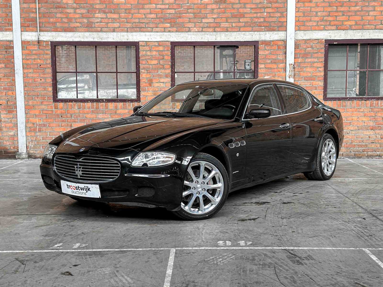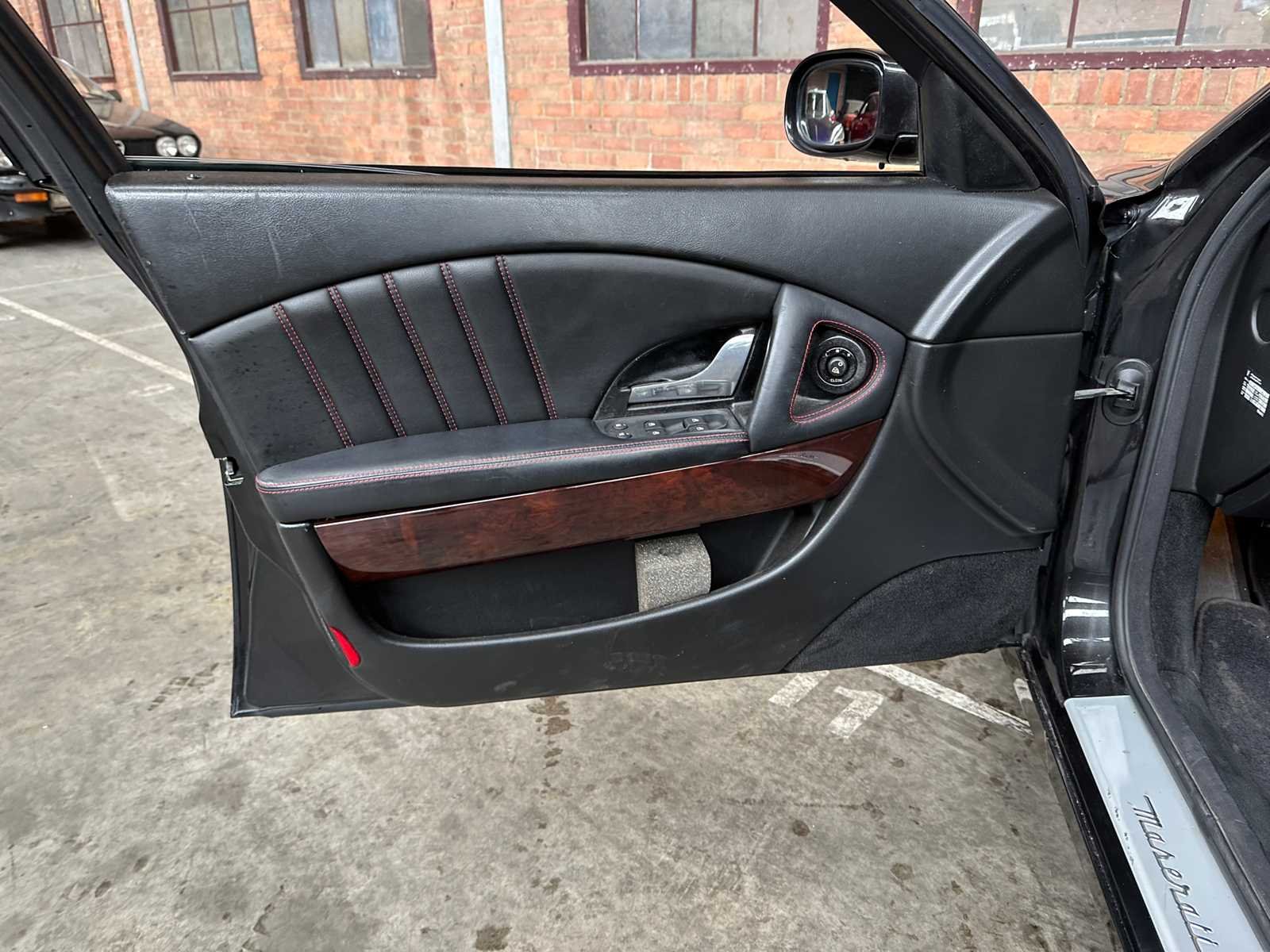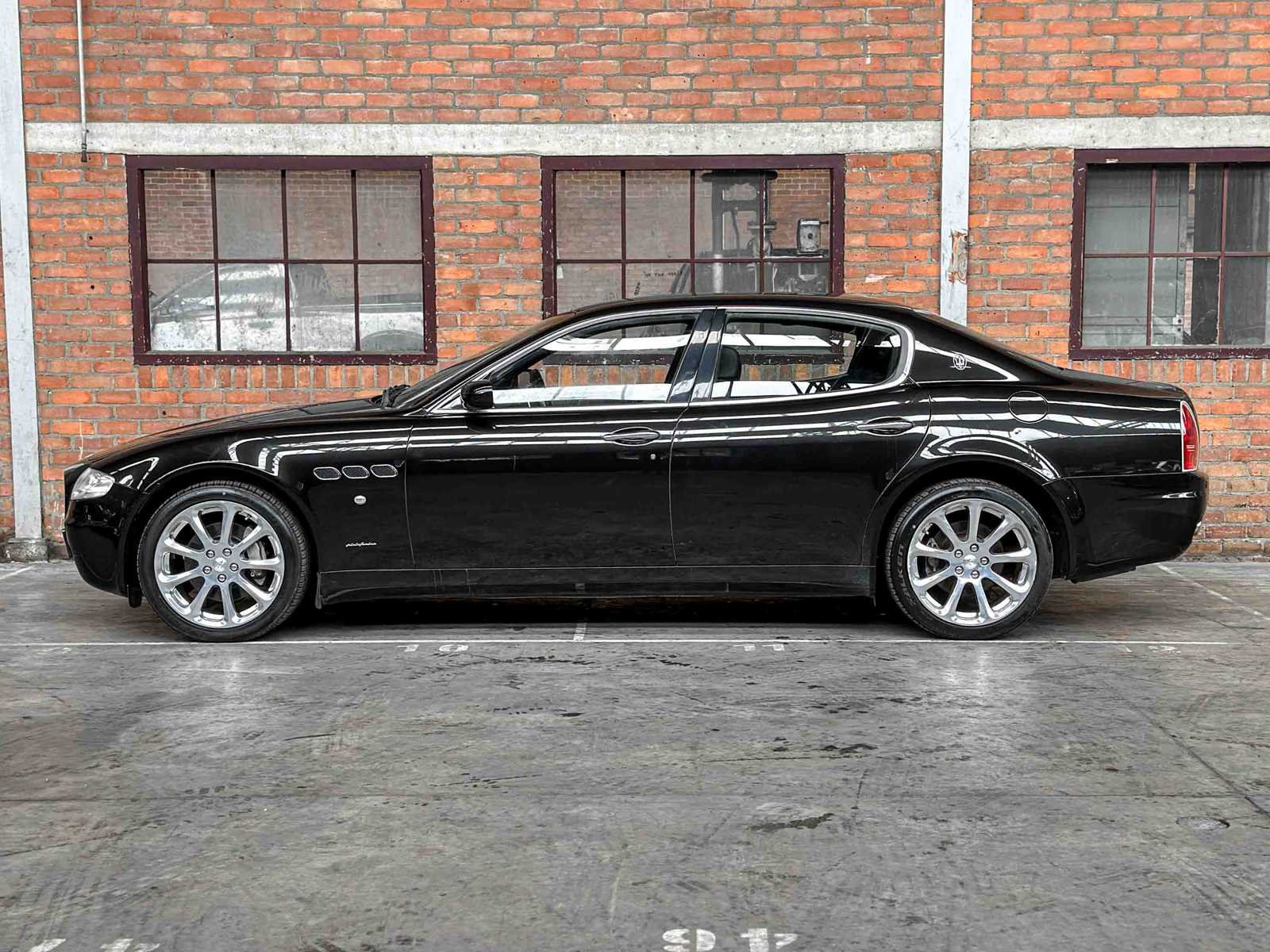 Merk: Maserati Model: Quattroporte Type: 4.2 V8 Afgelezen kilometerstand: 41000km Brandstof: Benzine Chassisnummer: ZAMCD39J000020810 Datum eerste toelating: 2005-01-01 Vermogen (pk): 400hp Aandrijving: Achterwielaandrijving Kleur: Zwart Transmissie: Automaat Stuurwiel: Links Carrosserie: Sedan Nationaliteit documenten: Japanse documenten, invoerrechten en BTW zijn voldaan Onderhoudshistorie: Ja, gedeeltelijk