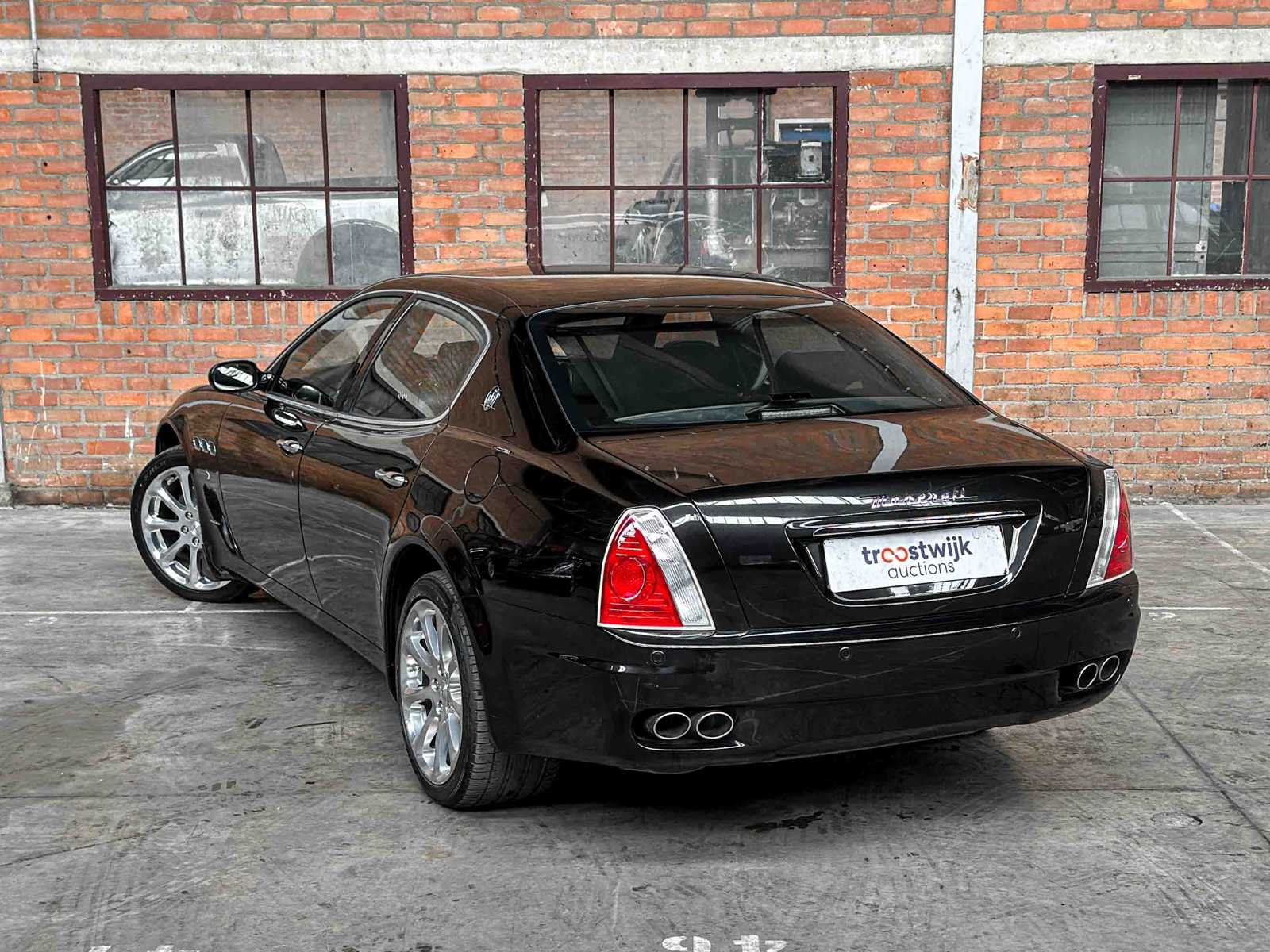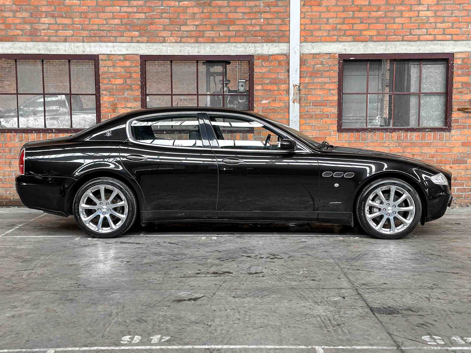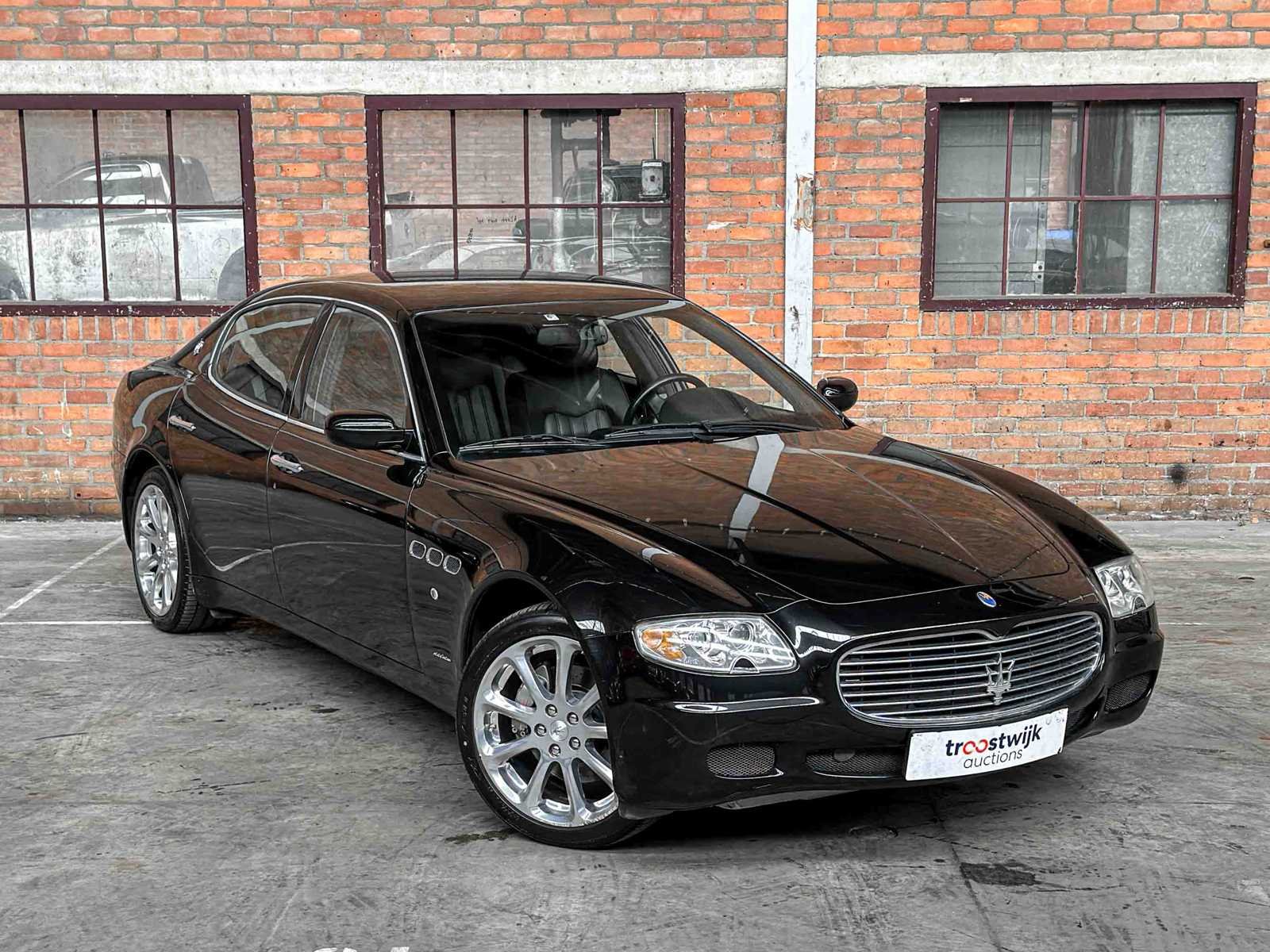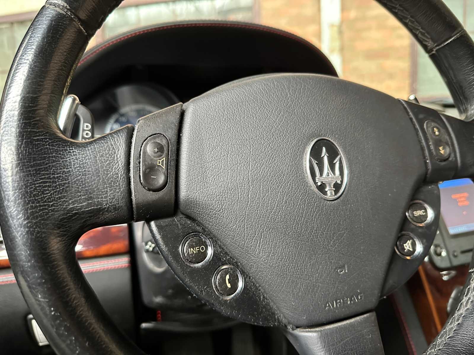 Merk: Maserati Model: Quattroporte Type: 4.2 V8 Afgelezen kilometerstand: 41000km Brandstof: Benzine Chassisnummer: ZAMCD39J000020810 Datum eerste toelating: 2005-01-01 Vermogen (pk): 400hp Aandrijving: Achterwielaandrijving Kleur: Zwart Transmissie: Automaat Stuurwiel: Links Carrosserie: Sedan Nationaliteit documenten: Japanse documenten, invoerrechten en BTW zijn voldaan Onderhoudshistorie: Ja, gedeeltelijk