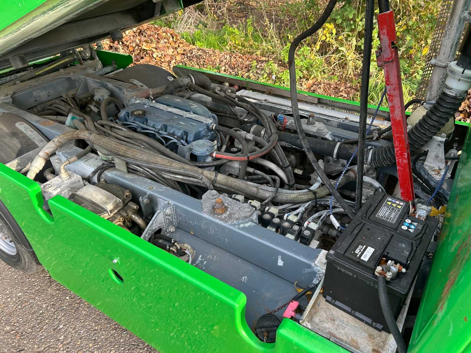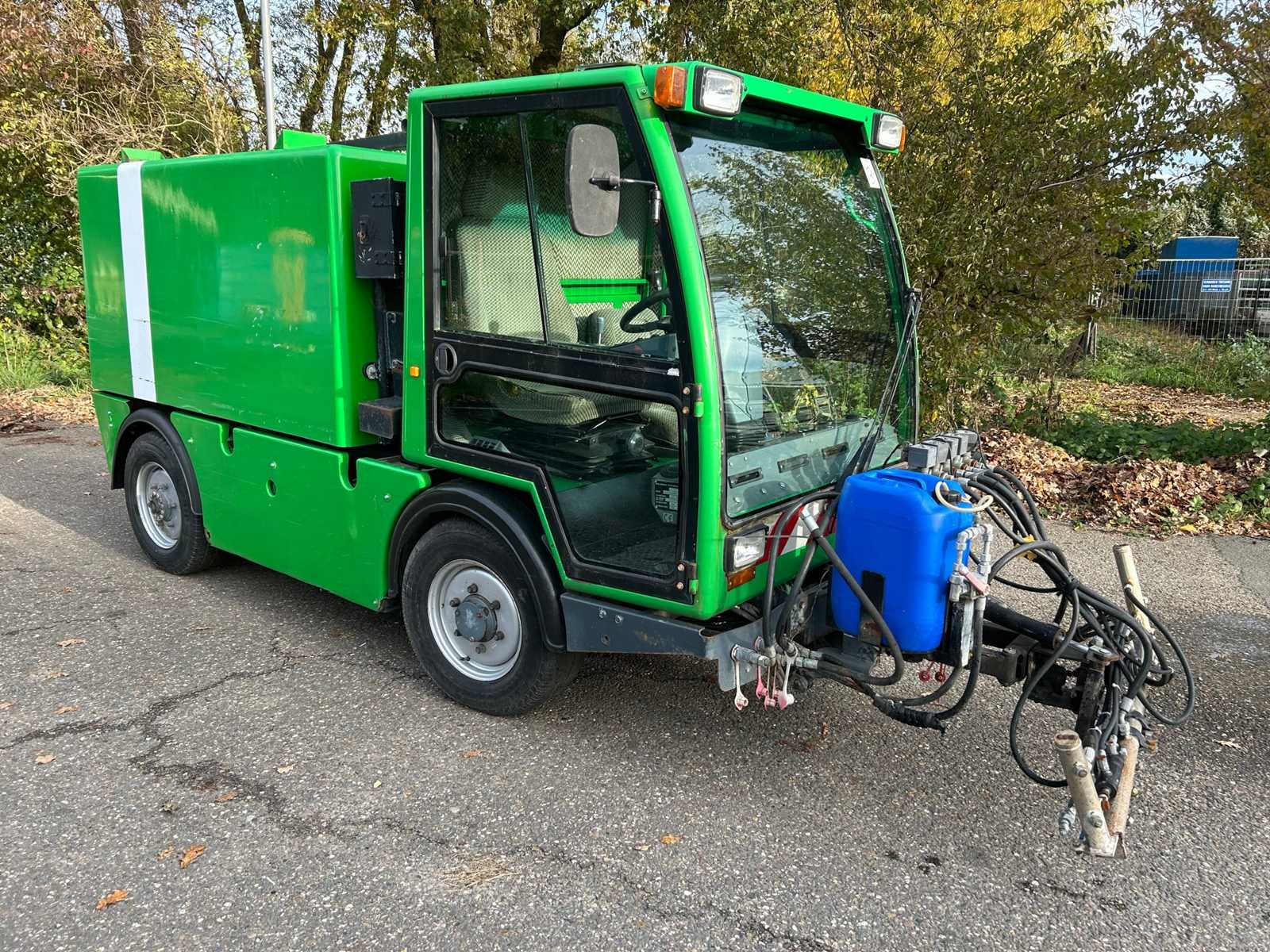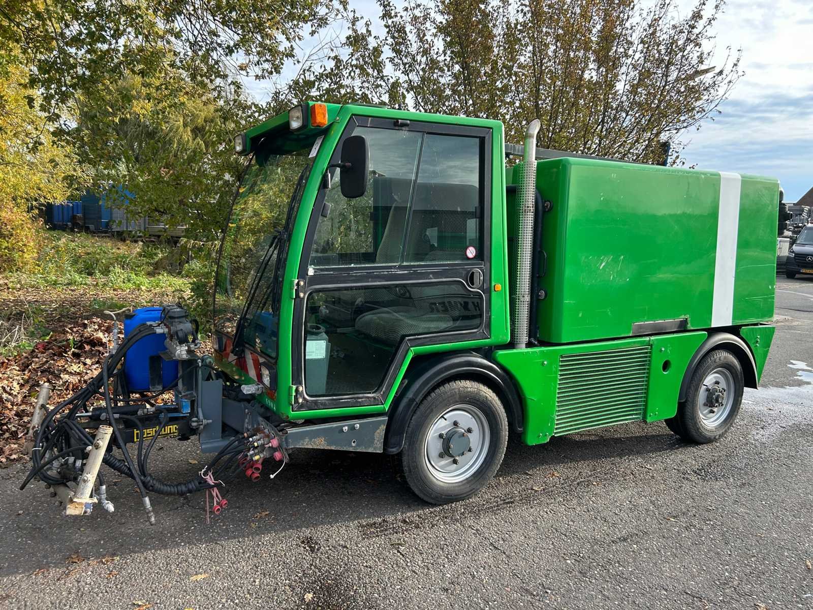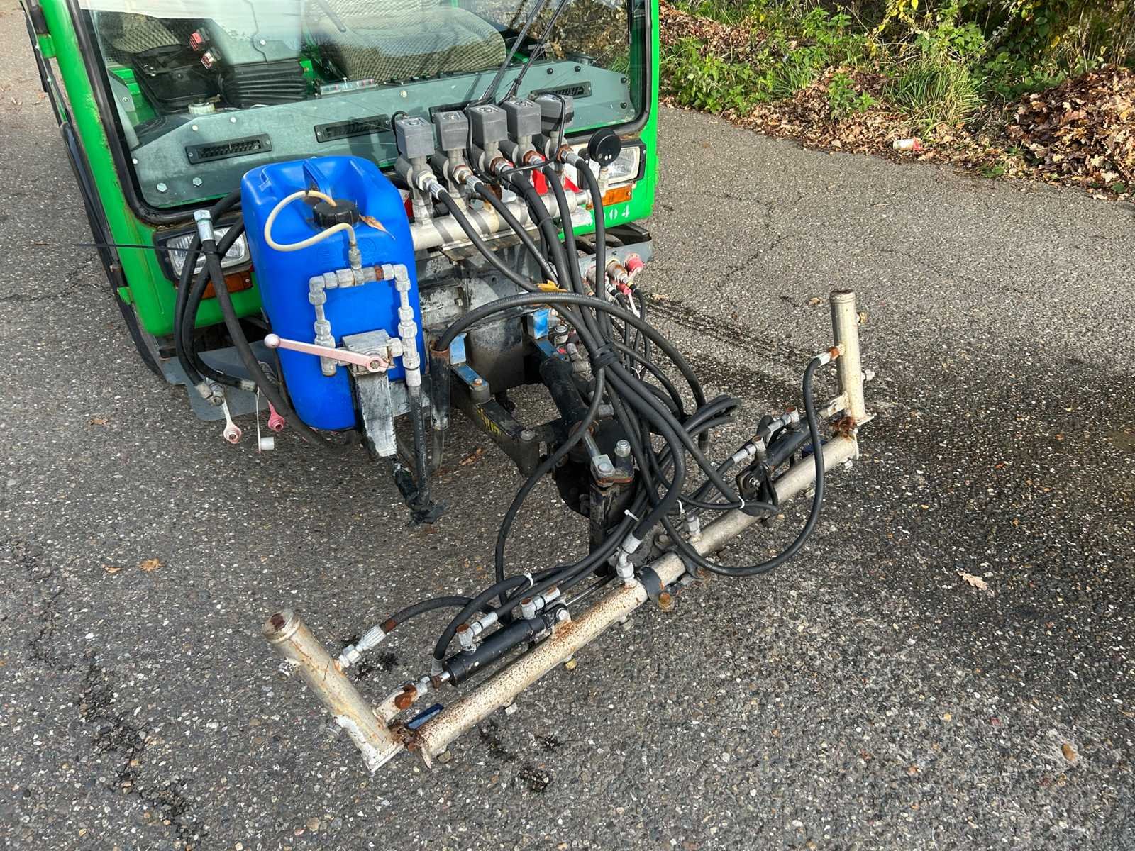 Werktuigdrager/straatreinigingsmachine, VM2800 turbo diesel 2.8L, Vermogen: 82PK, Geveerde stoel, Voorwiel-, vierwielbesturing, Watertank inhoud: 2500 liter, hogedrukpomp: 60 tot 90 liter/min, werkdruk van 0 tot 80 bar, Met slangenhaspel van 10 meter, Hefinrichting voorzijde, 8 Hydrauliek punten voorzijde, Draaibare arm voor spuitlans, Ledverlichting, Dakraam, Hydrostaat, Werkuren: 1975 uur Bouwjaar: 2006 Afgelezen urenstand: 6962hr Afmetingen: LxBxH: 500x160x205CM, Eigen gewicht: 4500KG Merk: Boschung Type: L3 Pony Bouwjaar: 2006 Afgelezen urenstand: 6962hr Eigen gewicht: 4500kg Totale afmeting L: 5000mm Totale afmeting Breedte: 1600mm Totale afmeting Hoogte: 2050mm