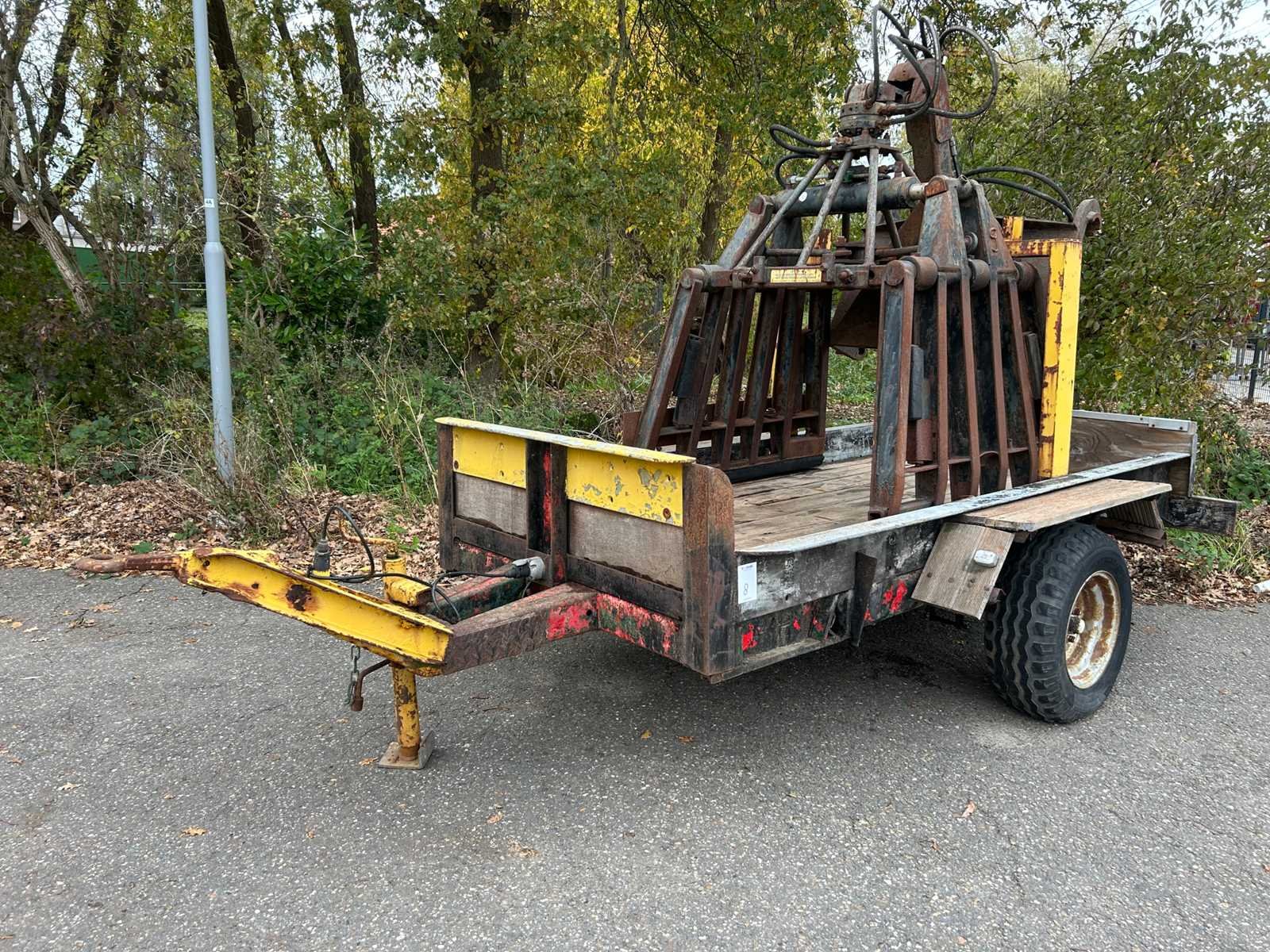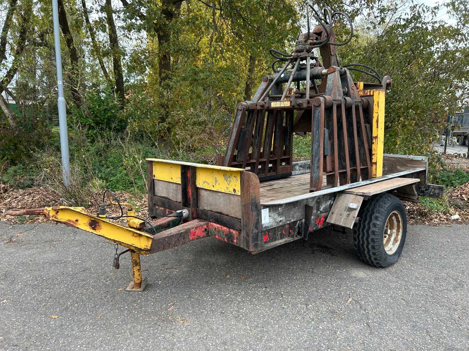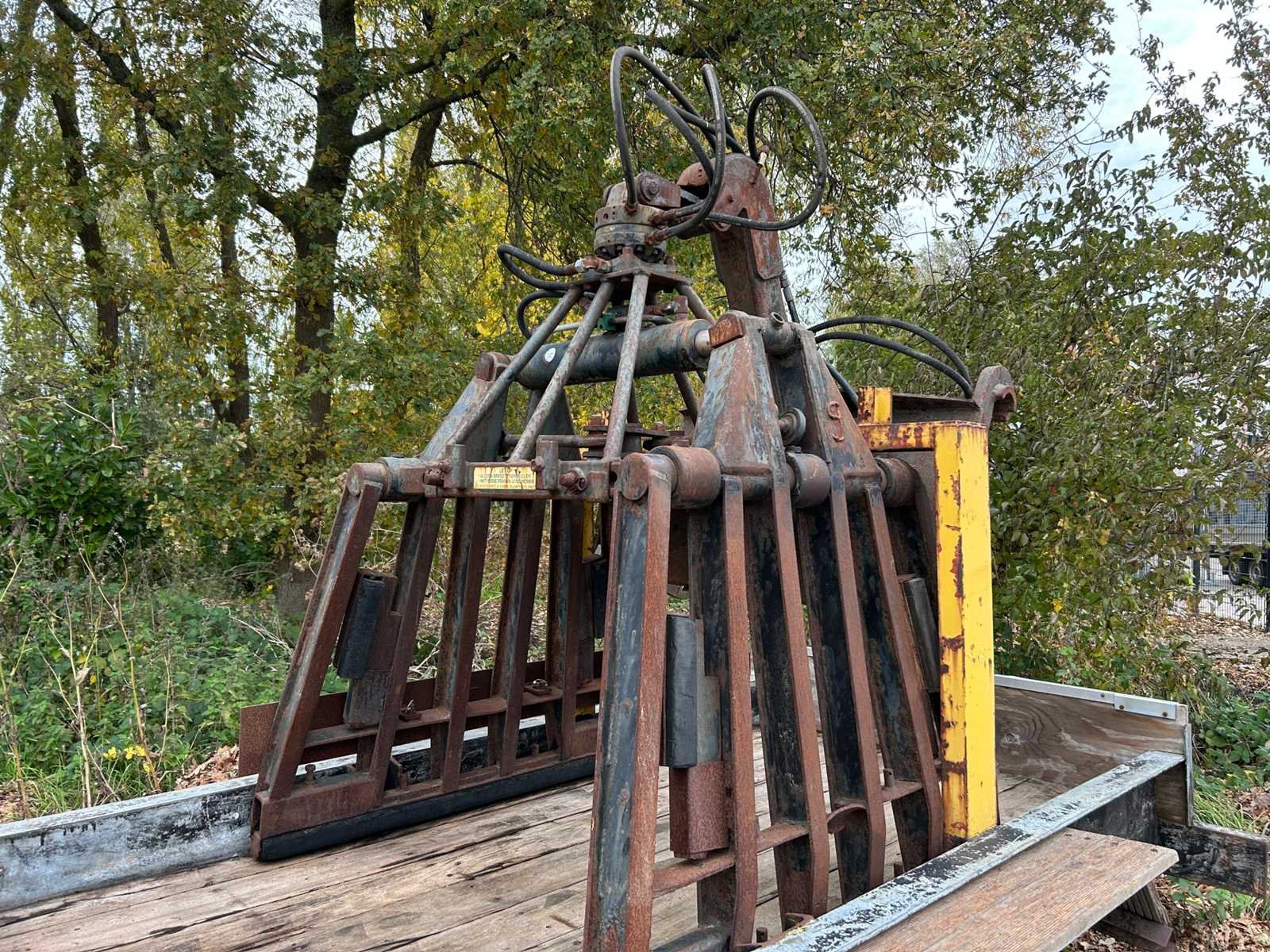 Laadvloer bakkenwagen: 300x145x15CM, Achterschot uitneembaar, Hydraulisch roterende stenenklem, V.v. Jip met Volvo wiellader aansluiting, Dikte aansluitplaat 35MM, Afmetingen complete set: 459x215x260CM.