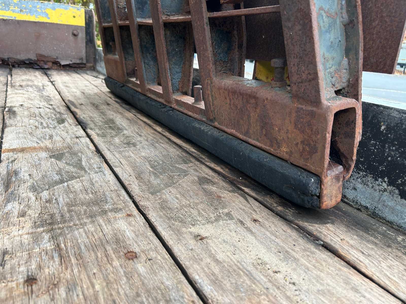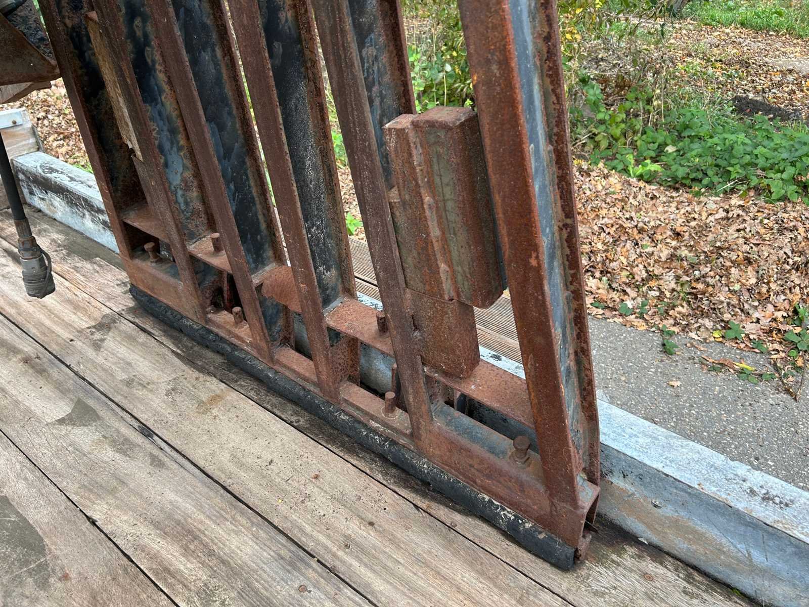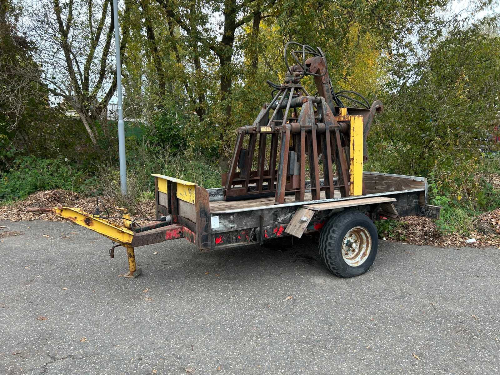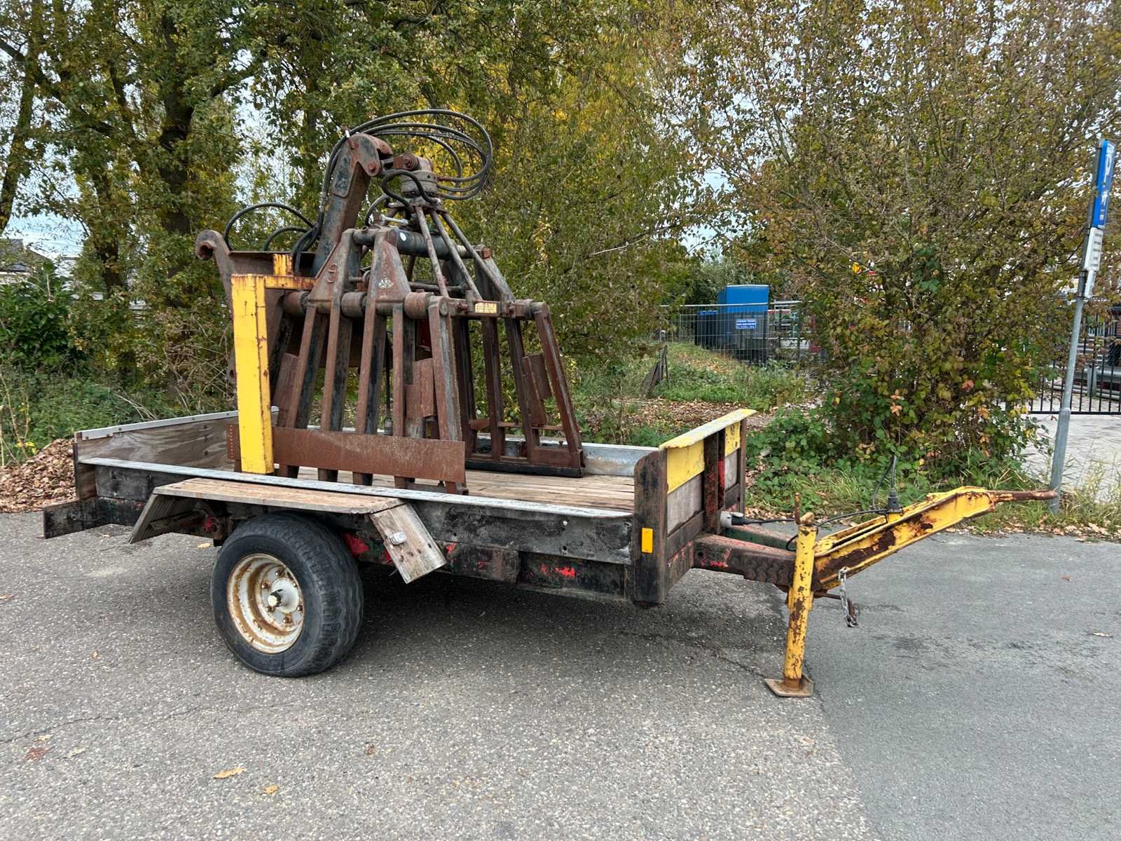 Laadvloer bakkenwagen: 300x145x15CM, Achterschot uitneembaar, Hydraulisch roterende stenenklem, V.v. Jip met Volvo wiellader aansluiting, Dikte aansluitplaat 35MM, Afmetingen complete set: 459x215x260CM.