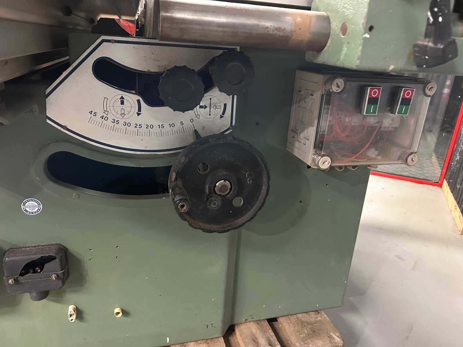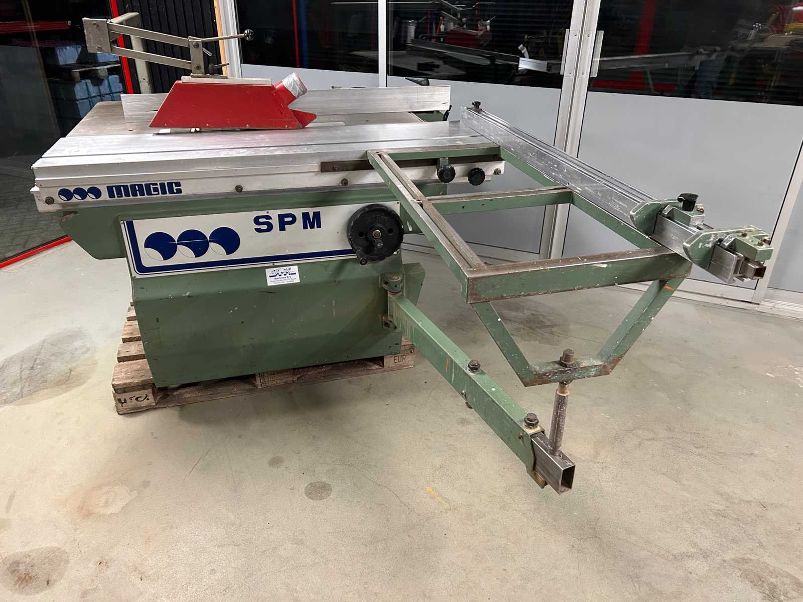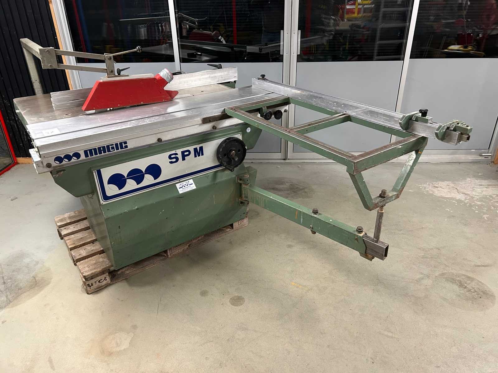 Werkend op 400v, Diameter zaagblad 400MM, Diameter asgat 30MM, Maximale zaaghoogte 130MM, Lengte glijtafel 100CM, Hoekverstelling tot 45 graden, Maximale te zagen breedte 1200MM, Transport lengte: 160cm, Transport breedte: 160cm, Transport hoogte: 140cm, Merk: Magic Model: SPM Spanning: 400V