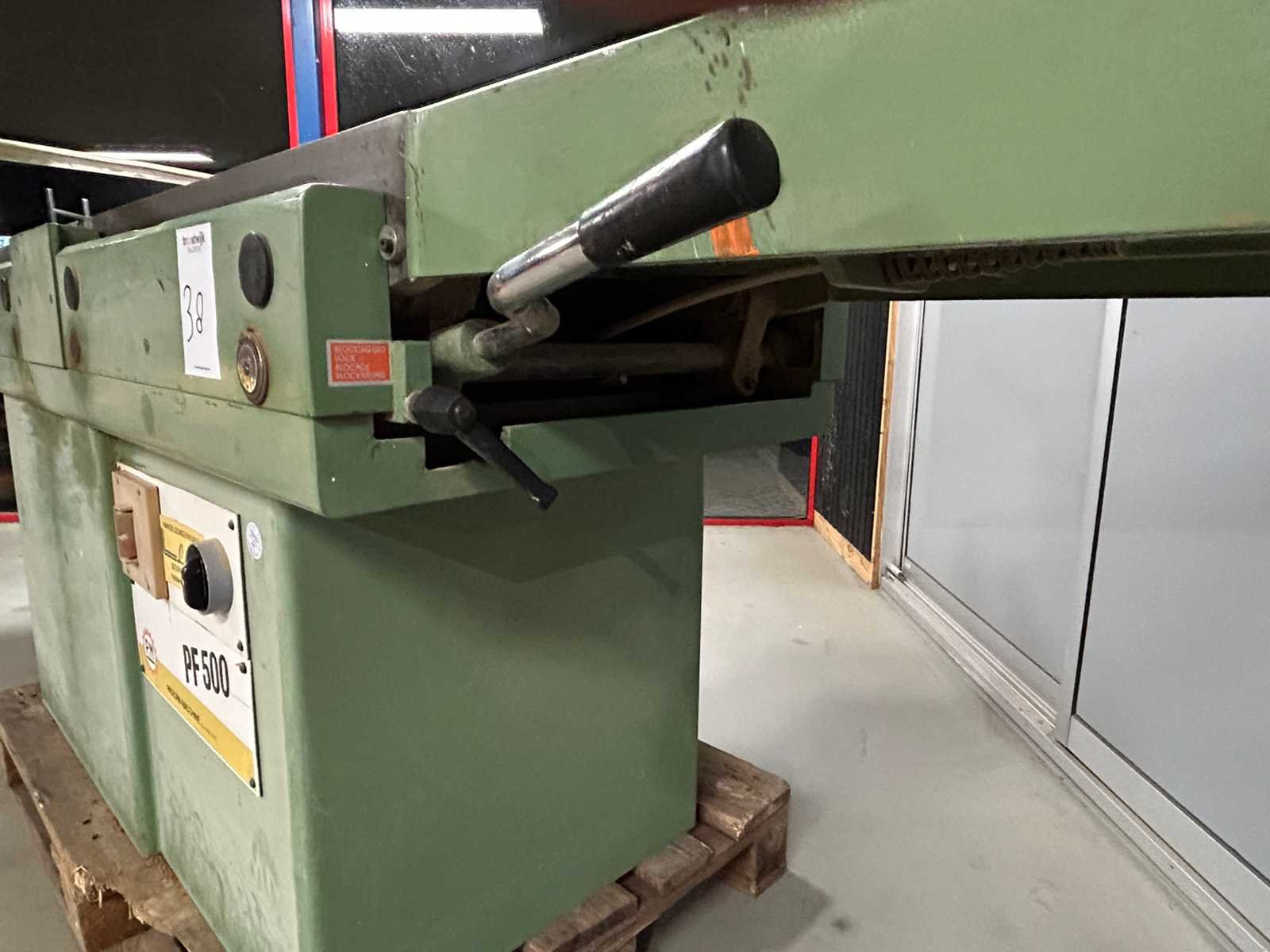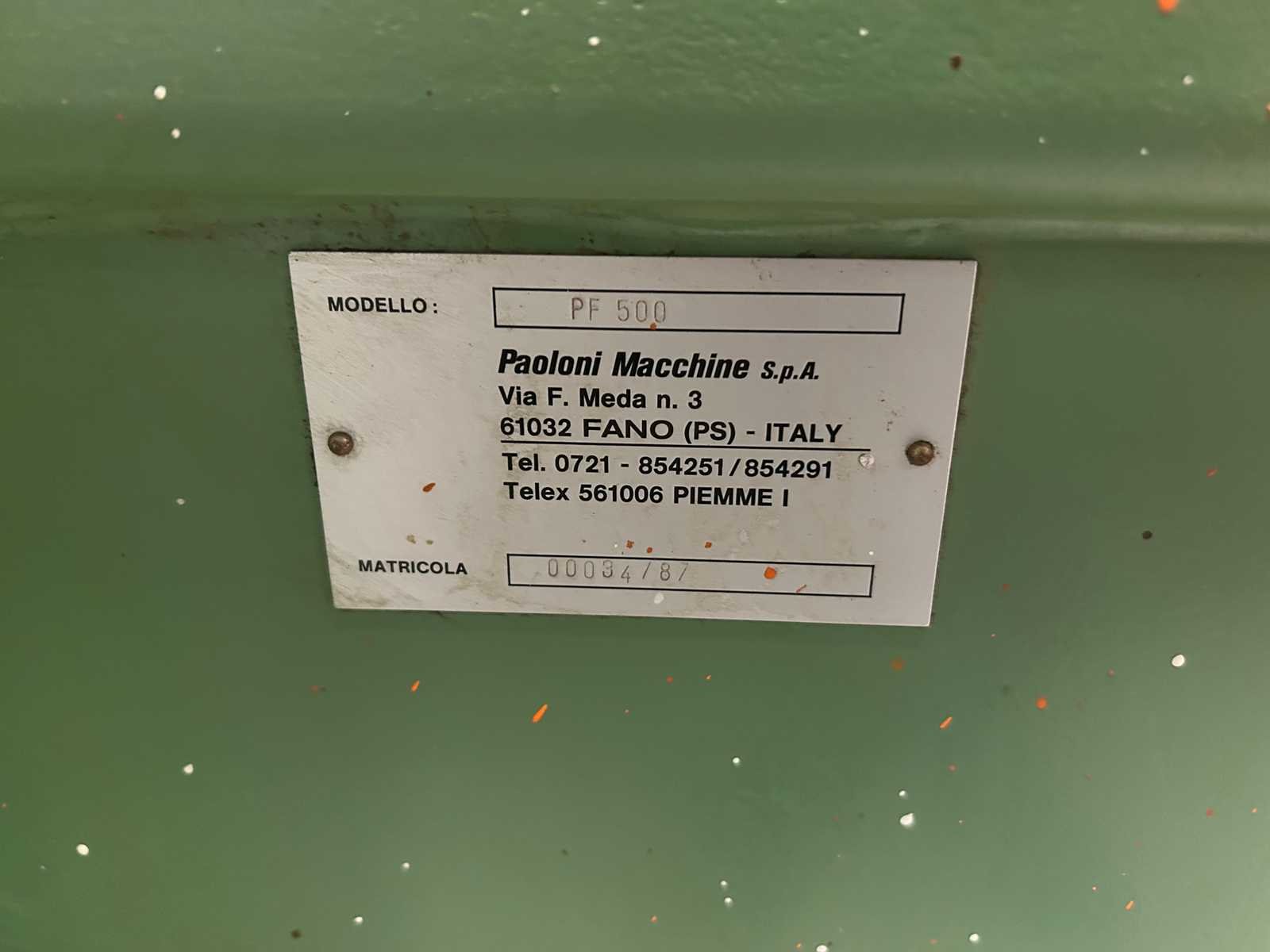 Voorzien van afzuigplaat, Merk: Paolini Macchine Type: PF500 Werkbreedte: 500mm Aansluiting: 400V Totale afmeting Breedte: 1000mm Totale afmeting Hoogte: 1200mm Totale afmeting L: 2750mm