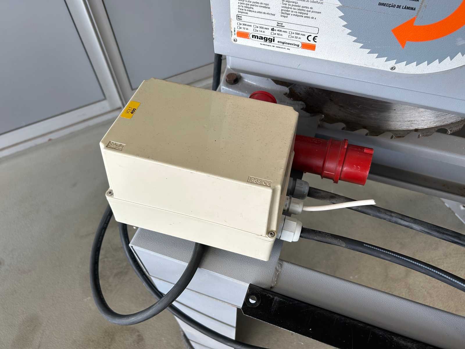 - Geremde 3 kW/4PK krachtstroommotor. - 400 mm zaagblad, - Zaagbladbeveiliging, - Dubbel verstek mogelijk (schuin instelbaar), - Noodstop Merk: Maggi Type: Junior 640 Bouwjaar: 2001 Aansluiting: 400V Afmeting l: 1200mm Afmeting b: 900mm Afmeting h: 1550mm