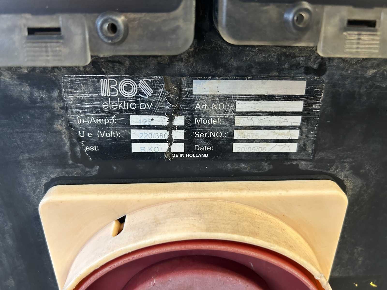 Ingang: doorvoerkast geschikt voor 95MM2, Uitgang: 2x 63amp, 5 aderig 400V, Uitgang: 2x 32amp, 5 aderig 400V, Uitgang: 2x 32amp, 4 aderig 400V, Uitgang: 6x WCD 230V Merk: BOS Model: Midi Hoog Lengte: 60cm Breedte: 60cm Hoogte: 95cm