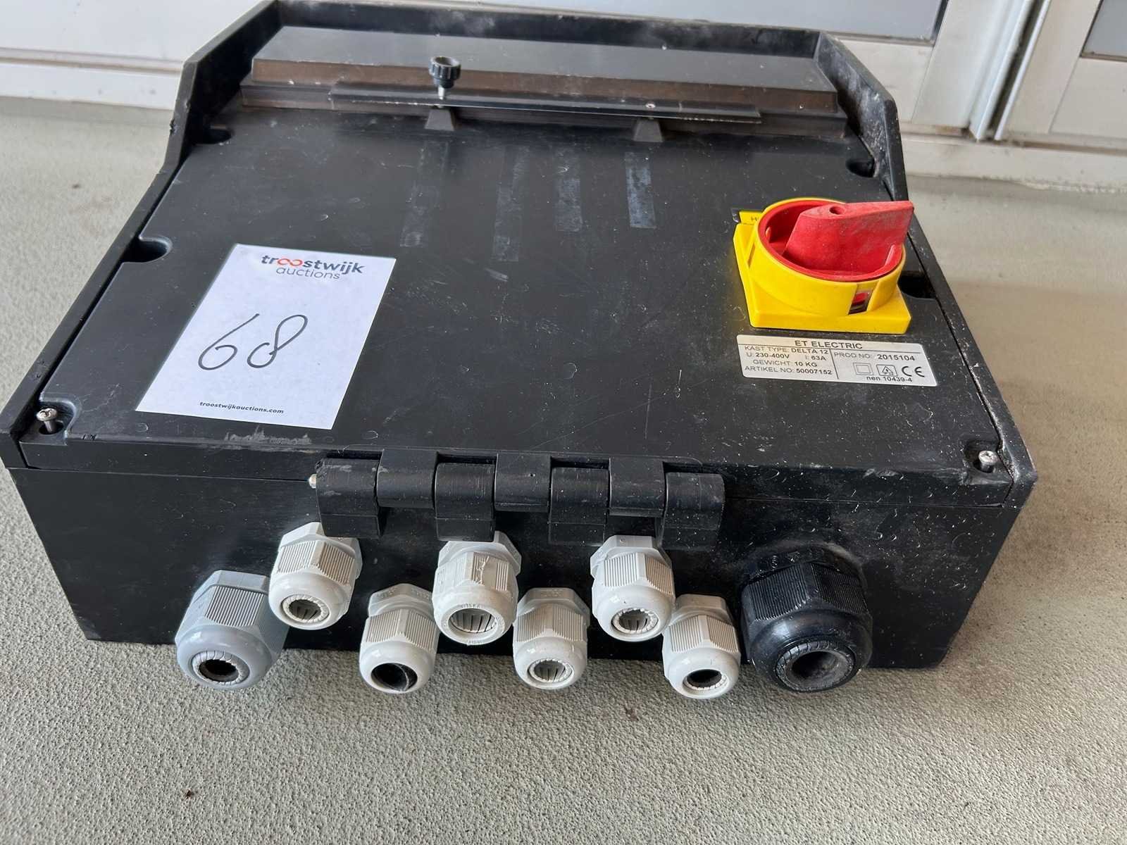 63A, 7 groepen, eigen gewicht 10kg. Merk: ET electric Model: Delta 12 Lengte: 40cm Breedte: 40cm Hoogte: 20cm