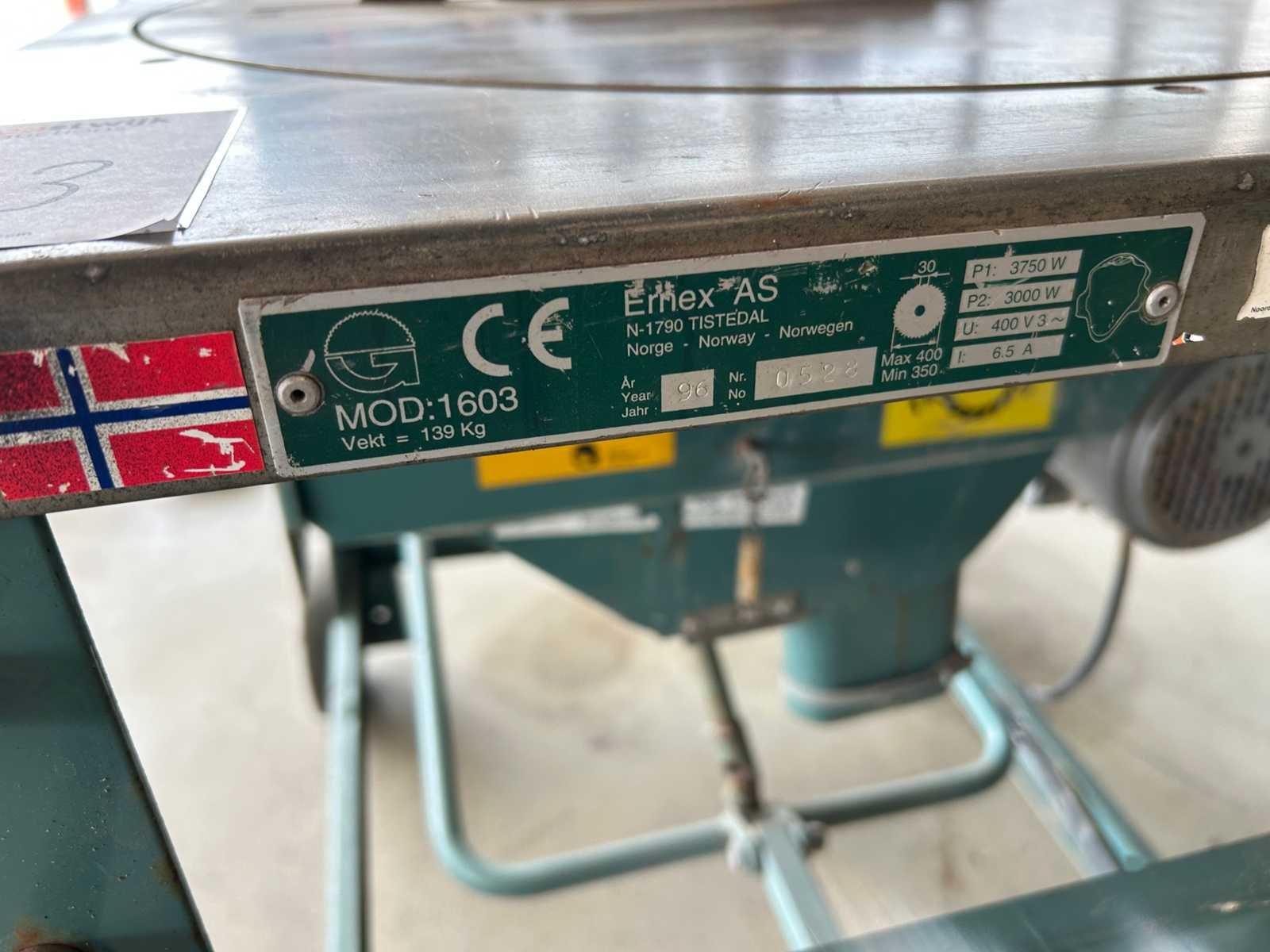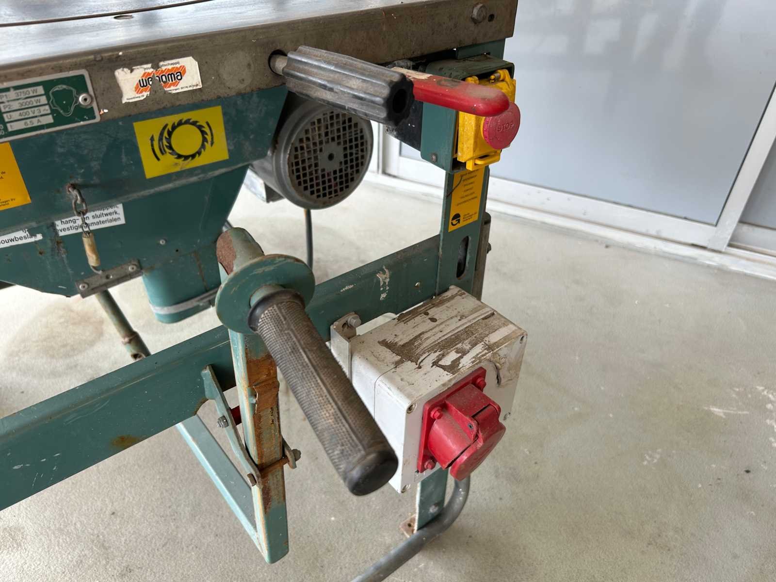 400v, 3000W, Diameter asgat 30mm, Max diameter zaagblad 400mm, Eigen gewicht 140kg, Maximale zaaghoogte 120mm, Afmetingen 130 lang, 75 breed, 85 hoog, Merk: Gjerde Model: 1603 Spanning: 400V Vermogen: 3000W Diameter zaagblad: 400 Gewicht: 140kg