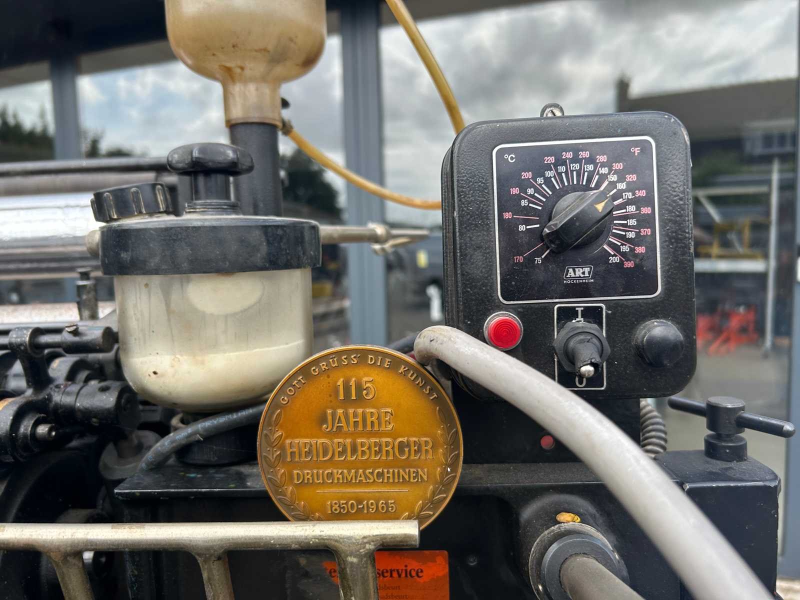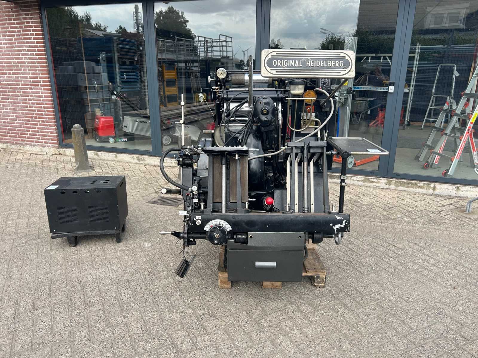 Geschikt tot A3 formaat Merk: Heidelberg Aansluiting: 400V Machinegewicht: 1000kg Totale afmeting L: 1700mm Totale afmeting Breedte: 1550mm Totale afmeting Hoogte: 1750mm