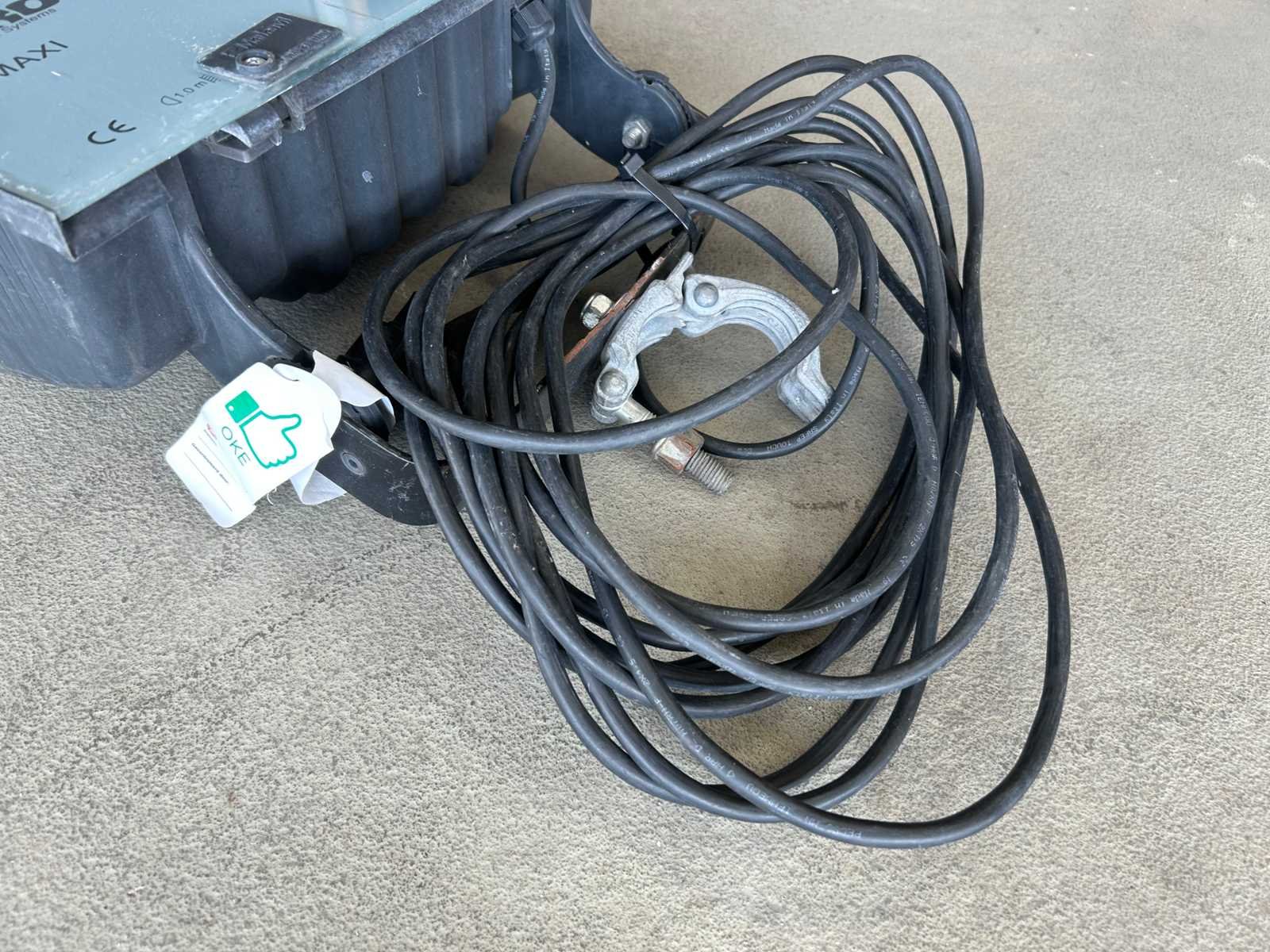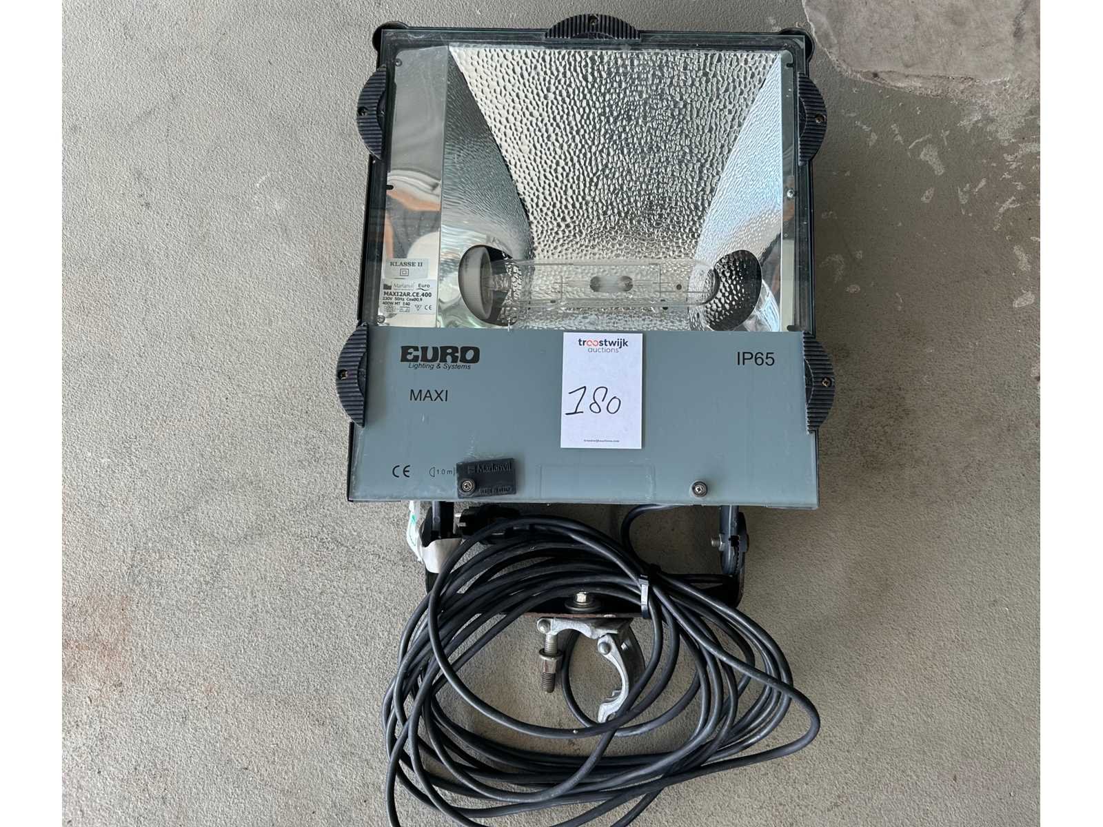 Stapelkrat hoort niet bij het kavel. Kabellengte 500cm, afmeting lamp zonder beugel 40x45cm. Merk: Euro Maxi