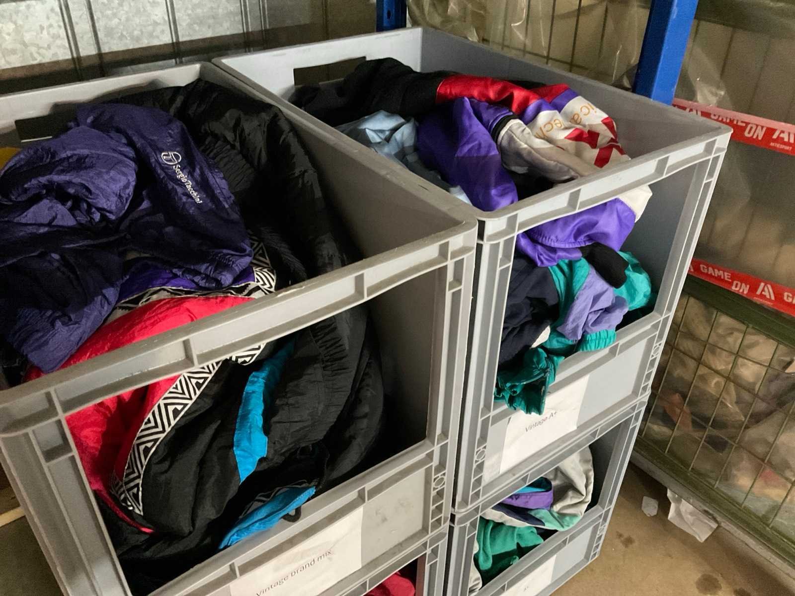 Partij vintage kleding in 4 kratten, exclusief kratten Merk: Diverse merken