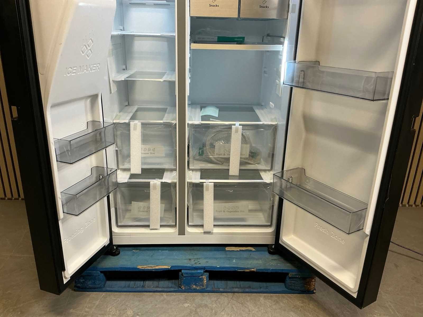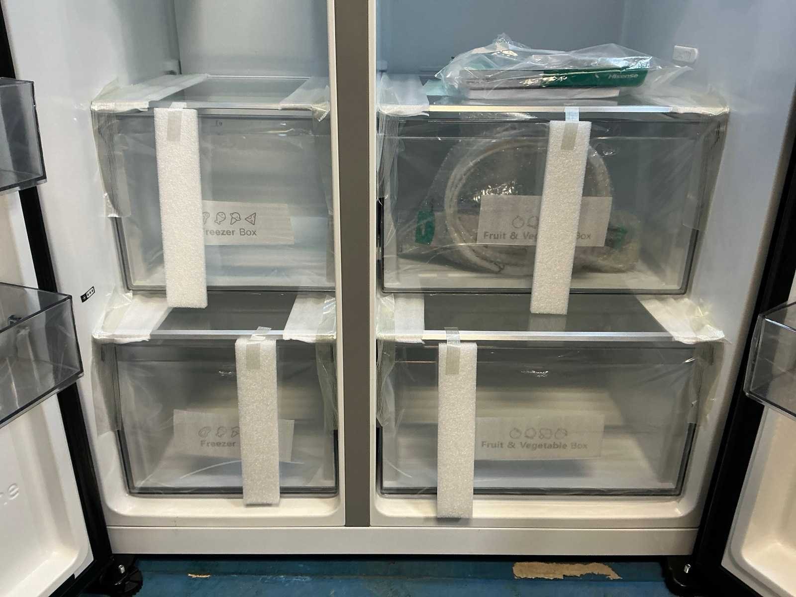 Betreft een ongebruikt showmodel met 2 jaar fabrieksgarantie op de werking van het product. Merk: Hisense Model: RS818N4IFD.. Netto inhoud Vriesvak: 215l Volume: 35dB