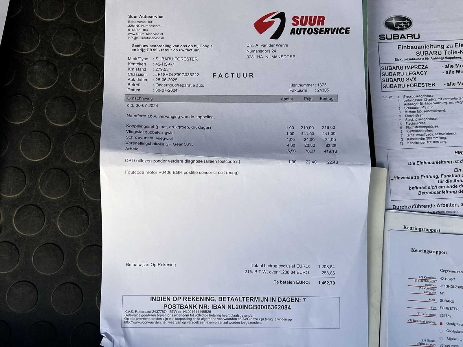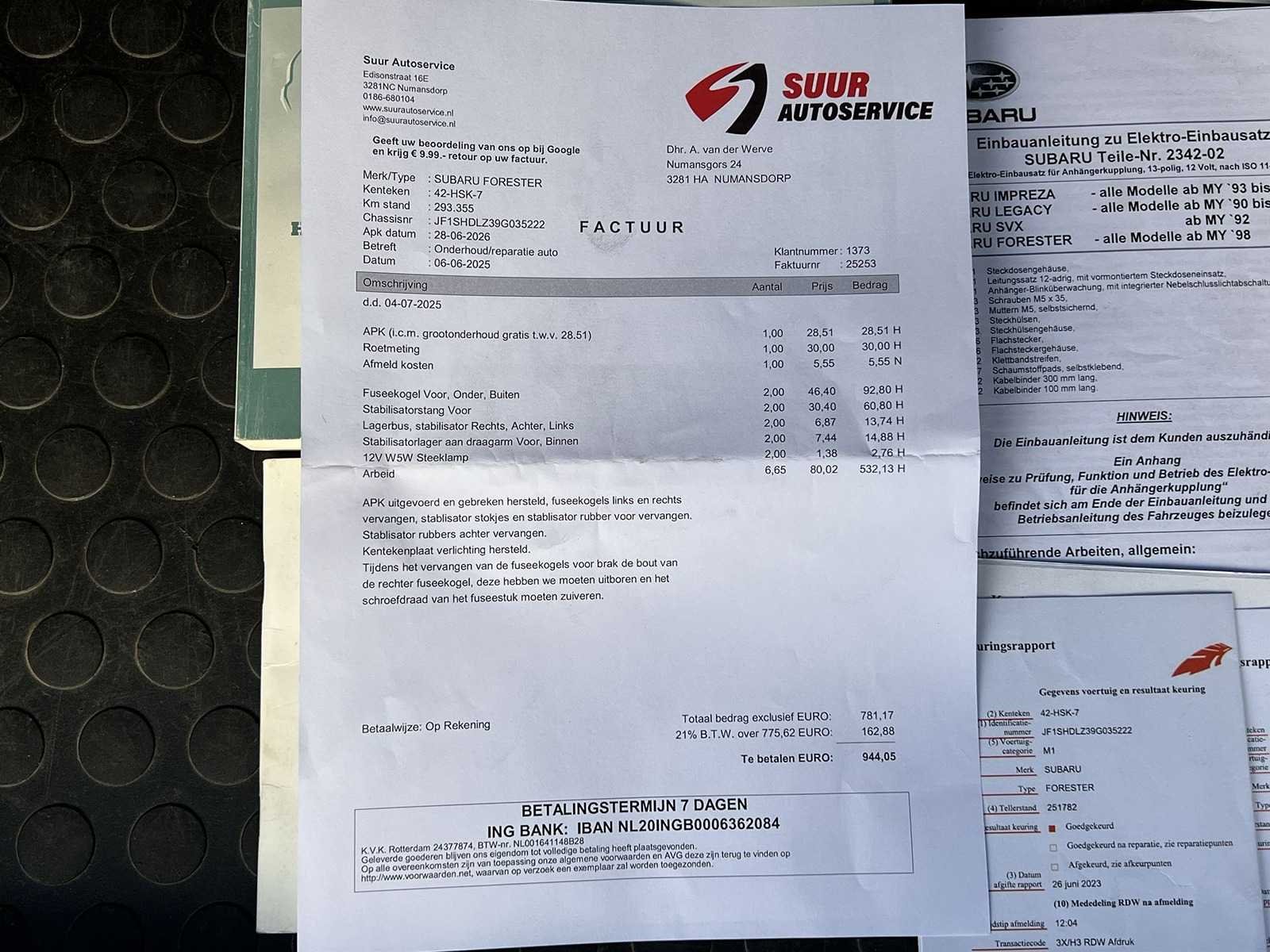 Let op! Voor Nederlandse kopers en kopers van buiten de EU komt de Rest-BPM bovenop het biedbedrag. De Rest-BPM bedraagt € 273 en is niet inbegrepen in de totaalprijs bij het bieden. De totaalprijs is dus exclusief BPM. Deze regeling geldt uitsluitend voor kopers binnen Nederland en kopers buiten de EU. Voor kopers binnen de EU wordt een borg gevraagd die gelijk is aan de BPM. De Rest-BPM wordt na de correcte registratie van het voertuig in het vestigingsland binnen de EU per bank aan de koper teruggestort. Voor verdere informatie over BPM kunt u de veilinginformatie raadplegen, welke bovenaan de homepage van onze website te vinden is. Indien u vragen heeft over de BPM-regeling, kunt u contact opnemen met onze klantenservice en/of de belastingdienst. Kenteken: 42-HSK-7 Merk: Subaru Model: Forester Type: 2.0D Premium Bouwjaar: 2009 Afgelezen kilometerstand: 297442km Cilinderinhoud: 1998cc Vermogen (kW): 108kW Chassisnummer: JF1SHDLZ39G035222 Laadvermogen: 0kg NAP status: Logisch Datum eerste toelating: 2009-02-14 Datum eerste toelating (NL): 2009-02-14 APK vervaldatum: 2026-06-28 Vermogen (pk): 147hp Energielabel: D Aandrijving: AWD Aantal zitplaatsen: 5 Maximaal trekgewicht ongeremd: 750kg Maximaal trekgewicht geremd: 2000kg Kleur: grijs Transmissie: Handgeschakeld Emissieklasse: 4 Aantal deuren: 4 Aantal sleutels: 1 Ledig gewicht: 1525kg Bruto BPM (NL): 10285€ Aantal cilinders: 4 Carrosserie: stationwagen CO2-uitstoot NEDC: 170 Carfax Link: https://was.carfax.eu/v0/api/ccdid/5100016408/svc/201/vinreg/42HSK7/checksum/eyJhbGciOiJIUzI1NiIsInR5cCI6IkpXVCJ9.eyJleHAiOjE3NjQ2NzM5NDB9.Tz7Vd-EDoKJZ3EVM0PBFAX6ZipHtA8tA2di_bD5mhyo Start en rijdt: Start and drive startinformatie : Start en rijdt