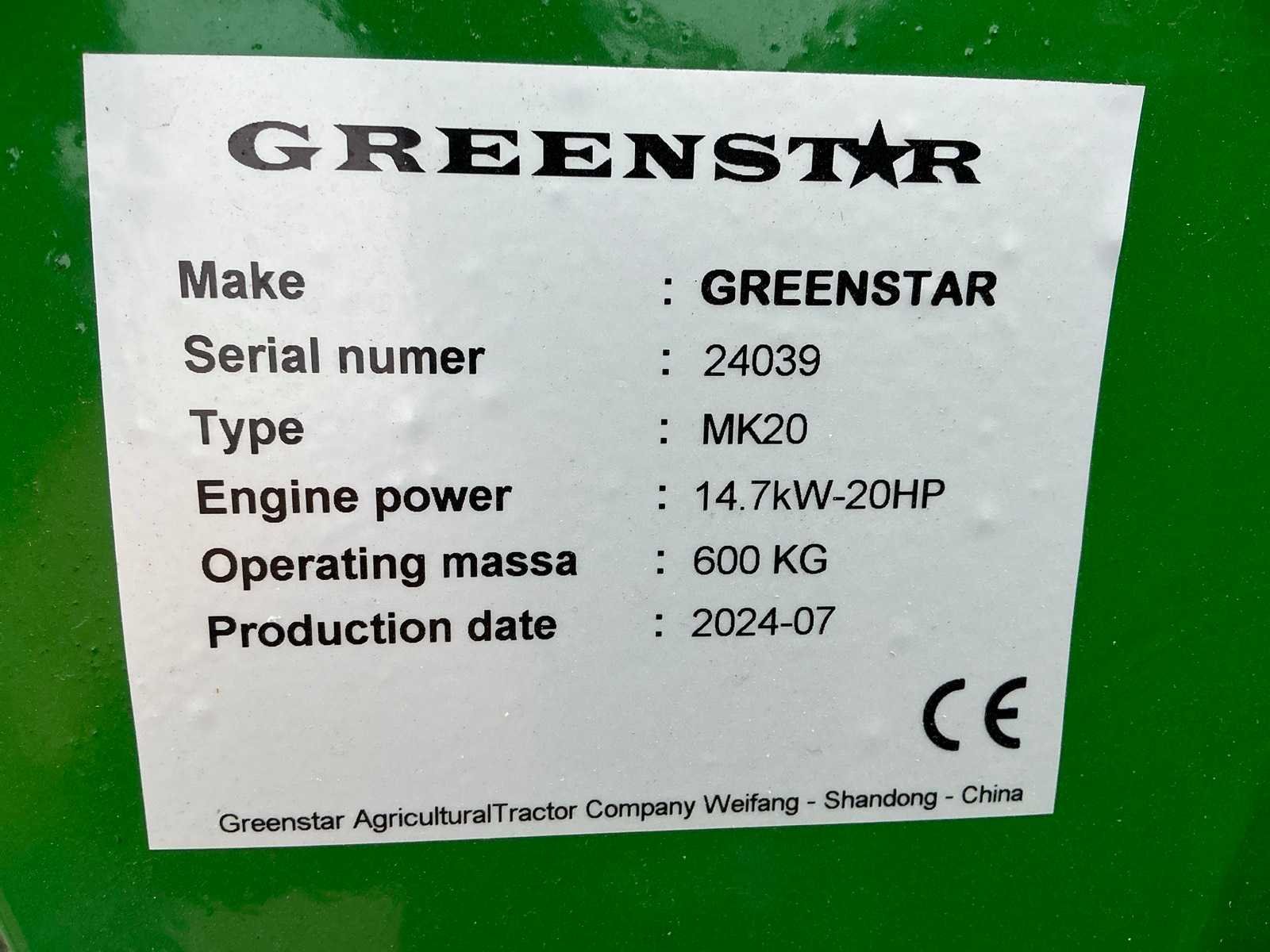Voorzien van grondfrees ca 105cm; Frees diepte ca 17cm Merk: GREENSTAR Type: MK20 Bouwjaar: 2024 Serienummer: 24039 Motorvermogen (kW): 14.7kW Afgelezen urenstand: 80 Versnellingsbaktype: Handgeschakeld Bandenmaat voor: 5.5/65-11 Bandenmaat achter: 8.50/75-13 Aantal hydraulische ventielen achter: 2 Eigen gewicht: 600kg Totale afmeting L: 3000mm Totale afmeting Breedte: 1100mm Totale afmeting Hoogte: 1250mm No self drive export!: true
