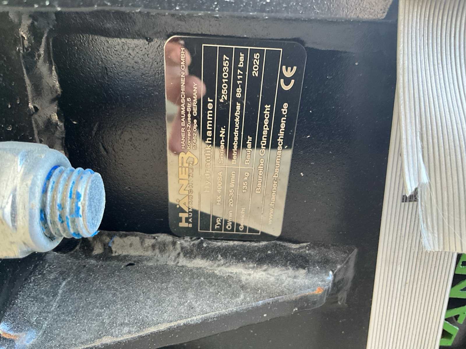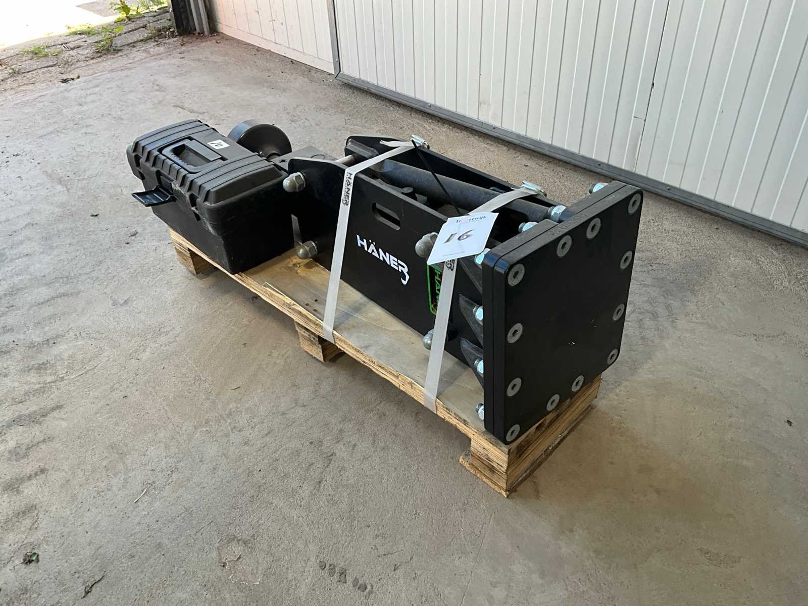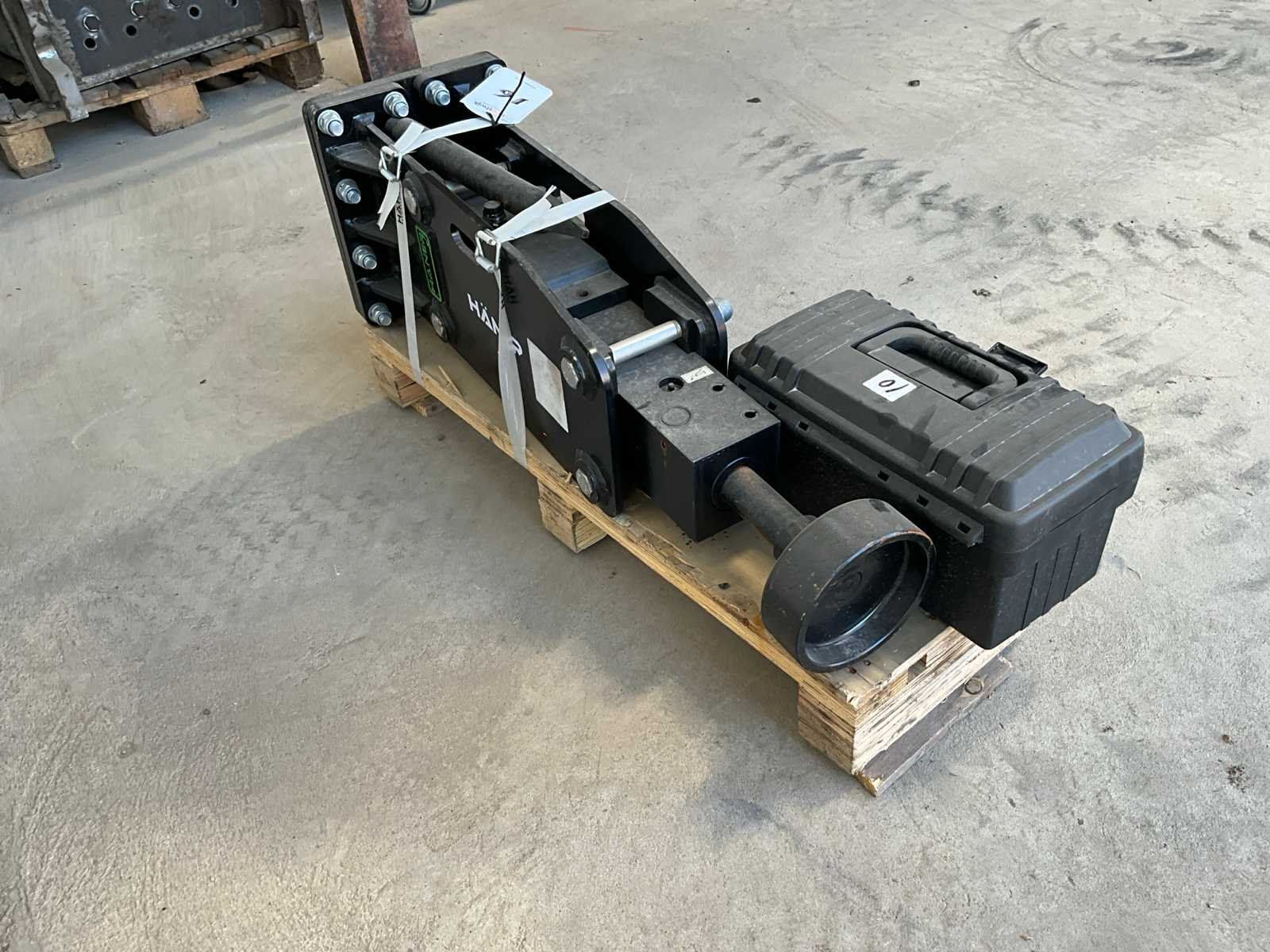 Geen kopplaat, paalstamper en punt beitel, Gereedschapskist, 20-35 L/MIN, 88-117 Bar Merk: Häner Type: HX400SA Bouwjaar: 2025 Serienummer: 25010357 Eigen gewicht: 135kg Totale afmeting L: 950mm Totale afmeting Breedte: 270mm Totale afmeting Hoogte: 450mm
