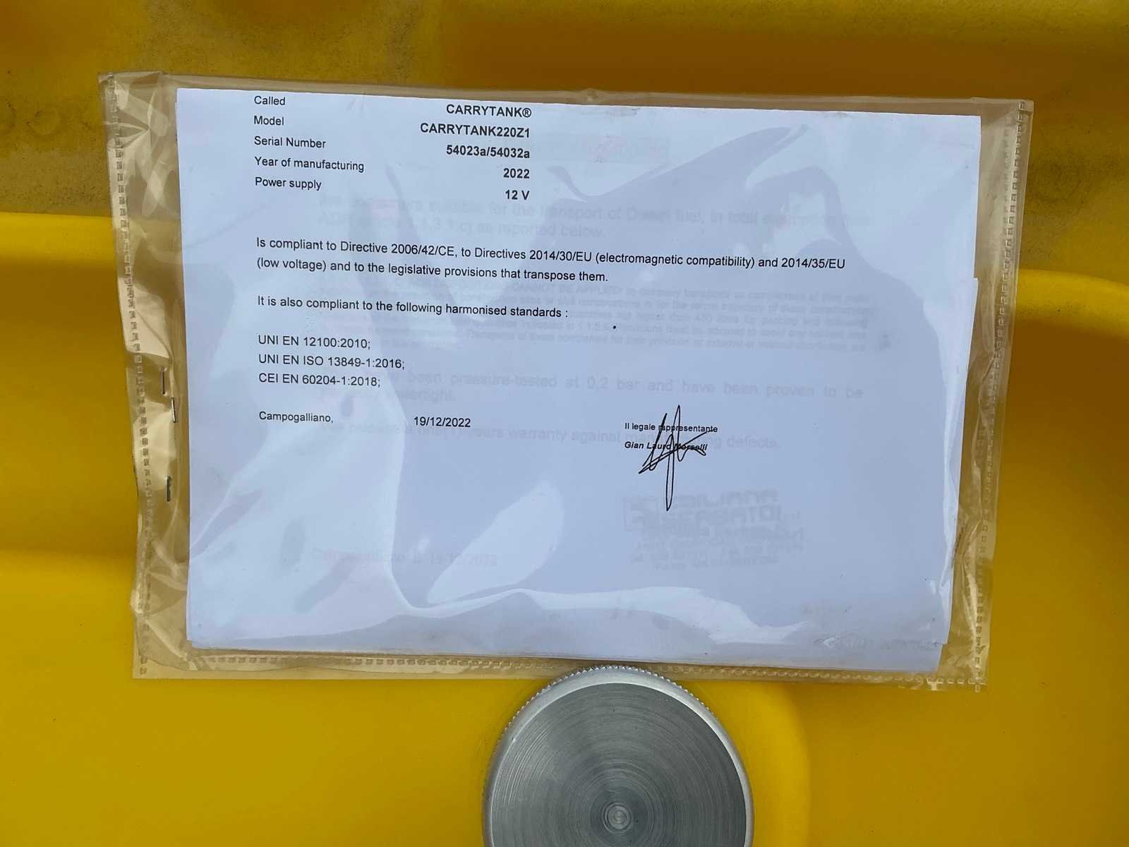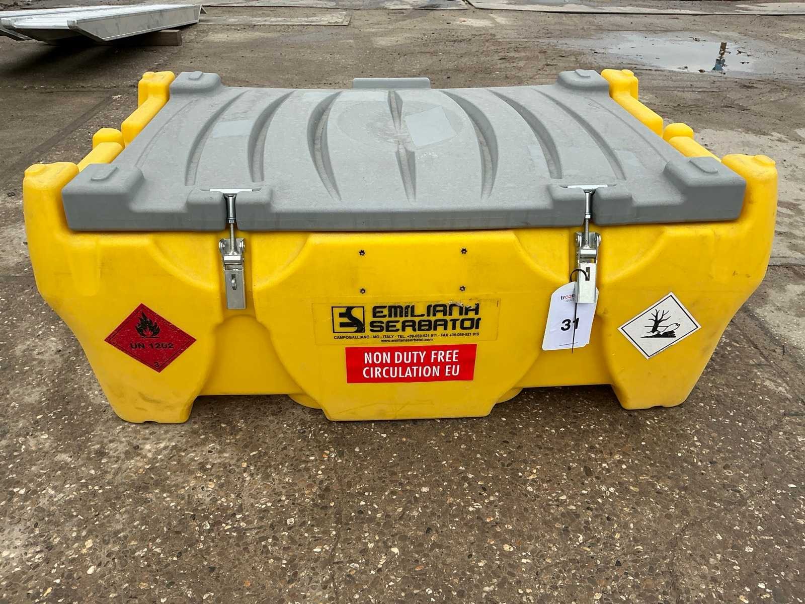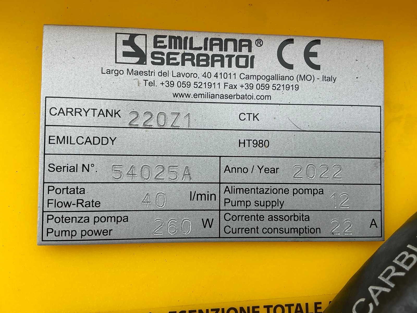 Tank inhoud ca 220L; Pomp 260W / 12V, 40 liter p/min Merk: EMILIANA SERBATOI Bouwjaar: 2022 Serienummer: 54025A Afmeting l: 780mm Afmeting b: 1130mm Afmeting h: 470mm