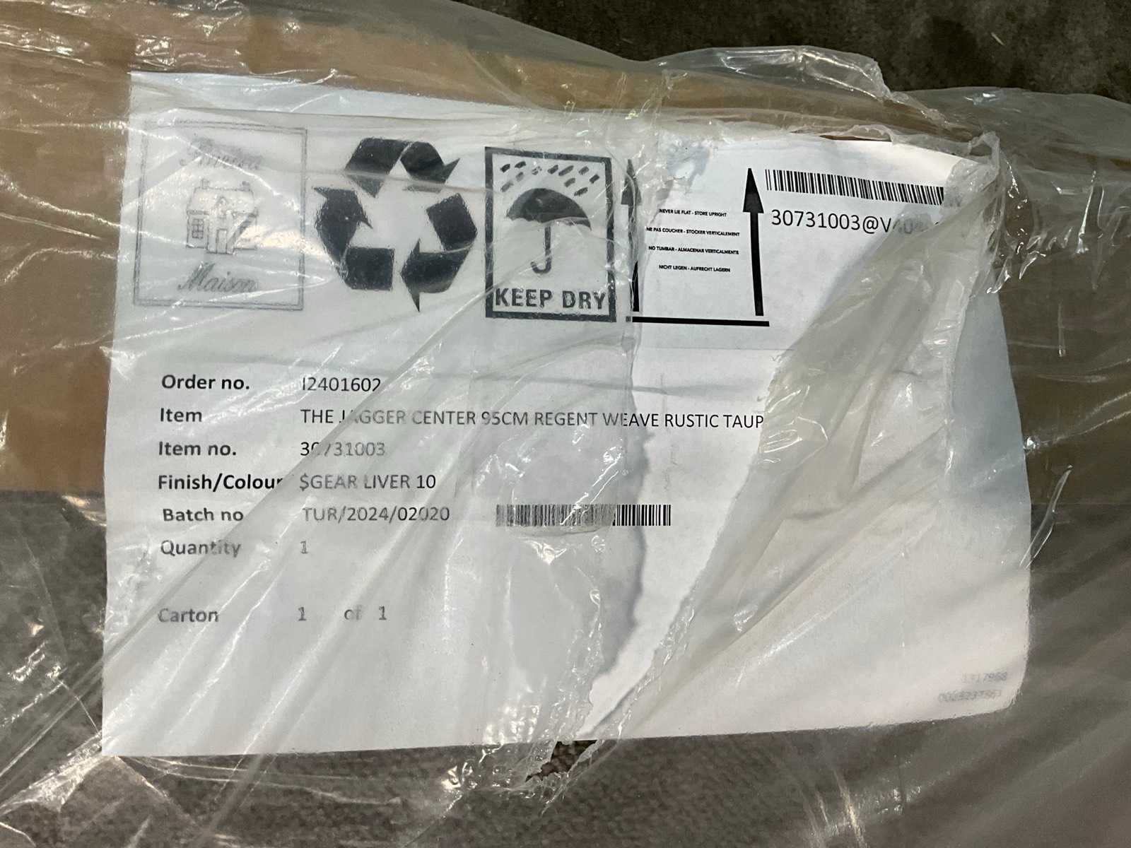 Stof is als op laatste foto Merk: Rivièra Maison Model: The Jagger Center Kleur: Rustic Taupe Lengte: 95cm Breedte: 100cm Materiaal: Stof
