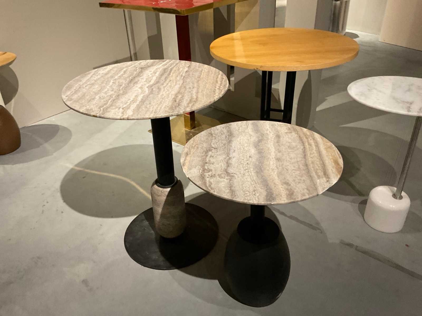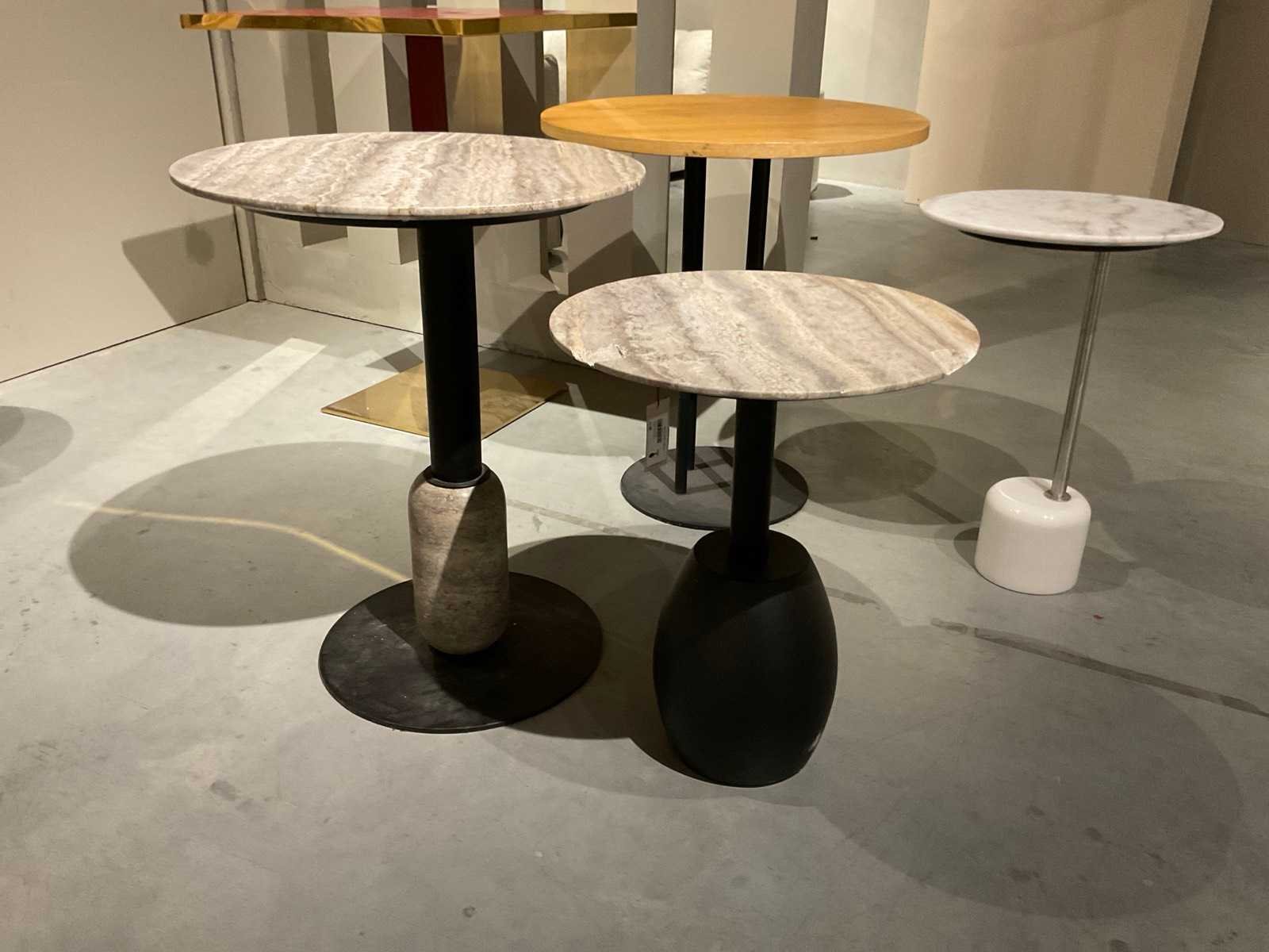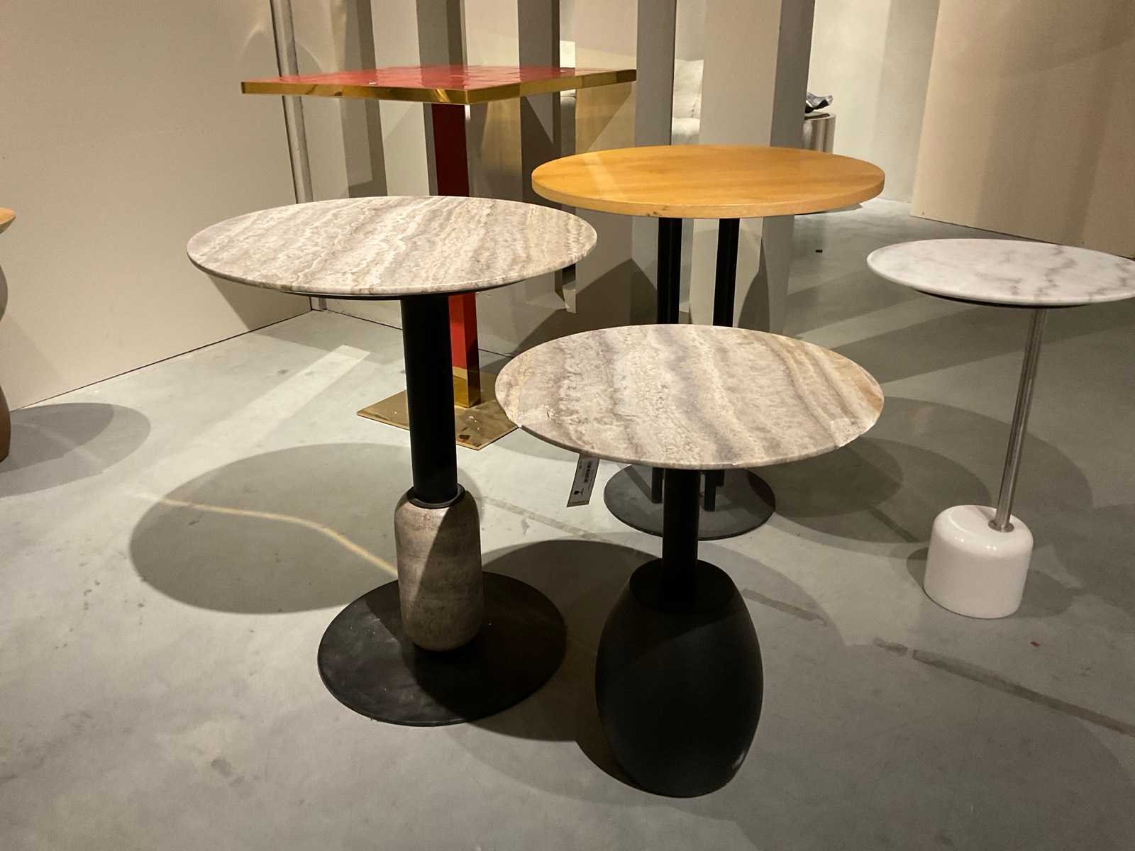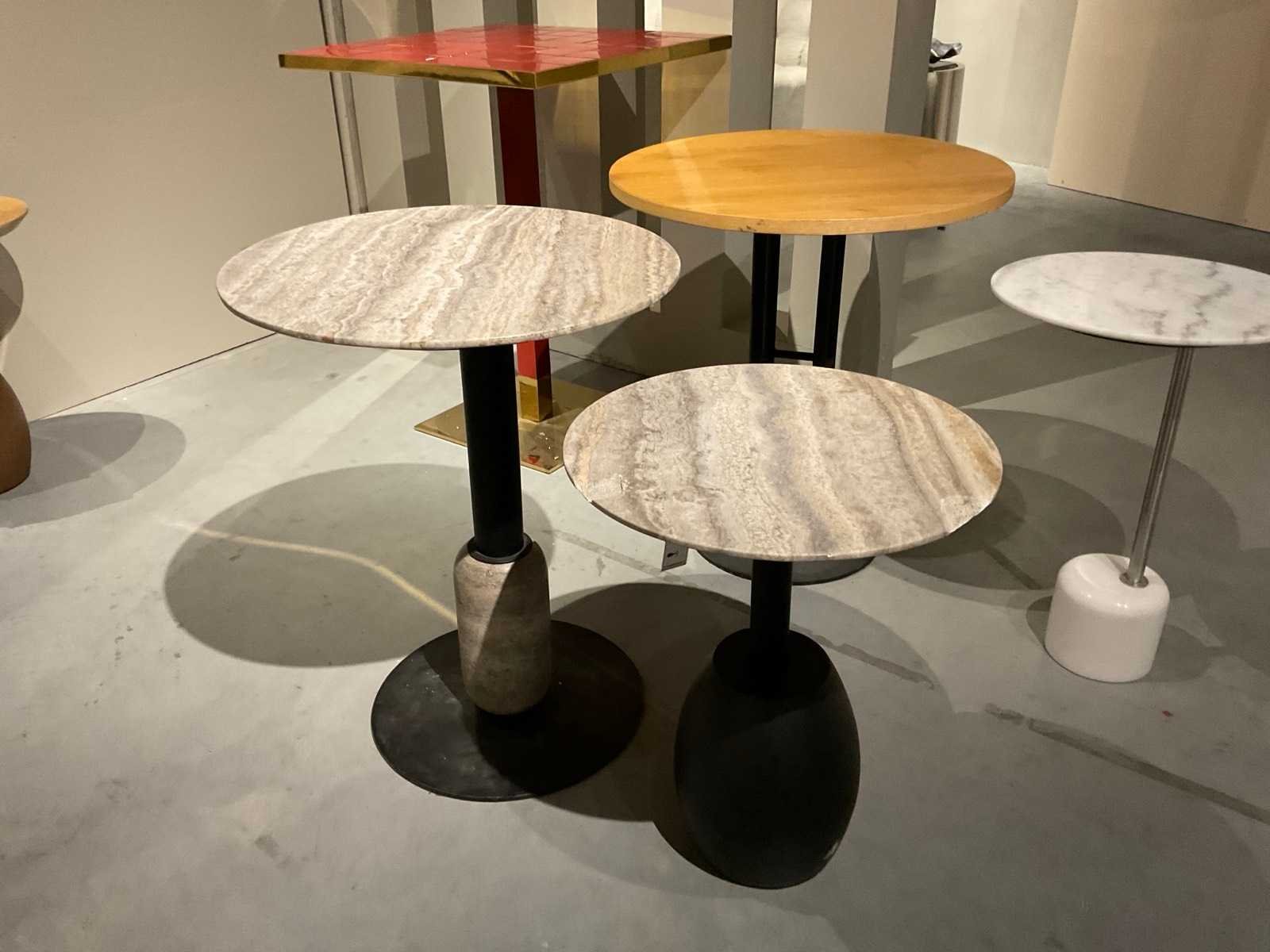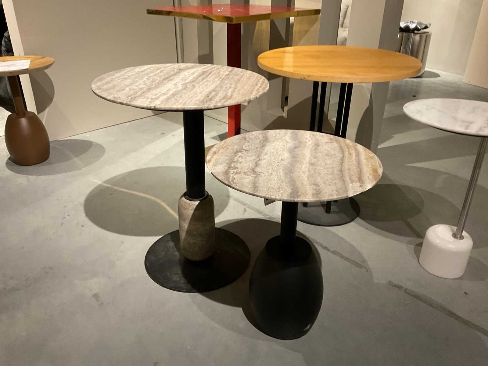 Blad is beschadigd zie foto’s Afmetingen linker tafel. (LxBxH) 60x60x76 cm Afmetingen rechter tafel (LxBxH) 50x50x62 cm Model: Bulli