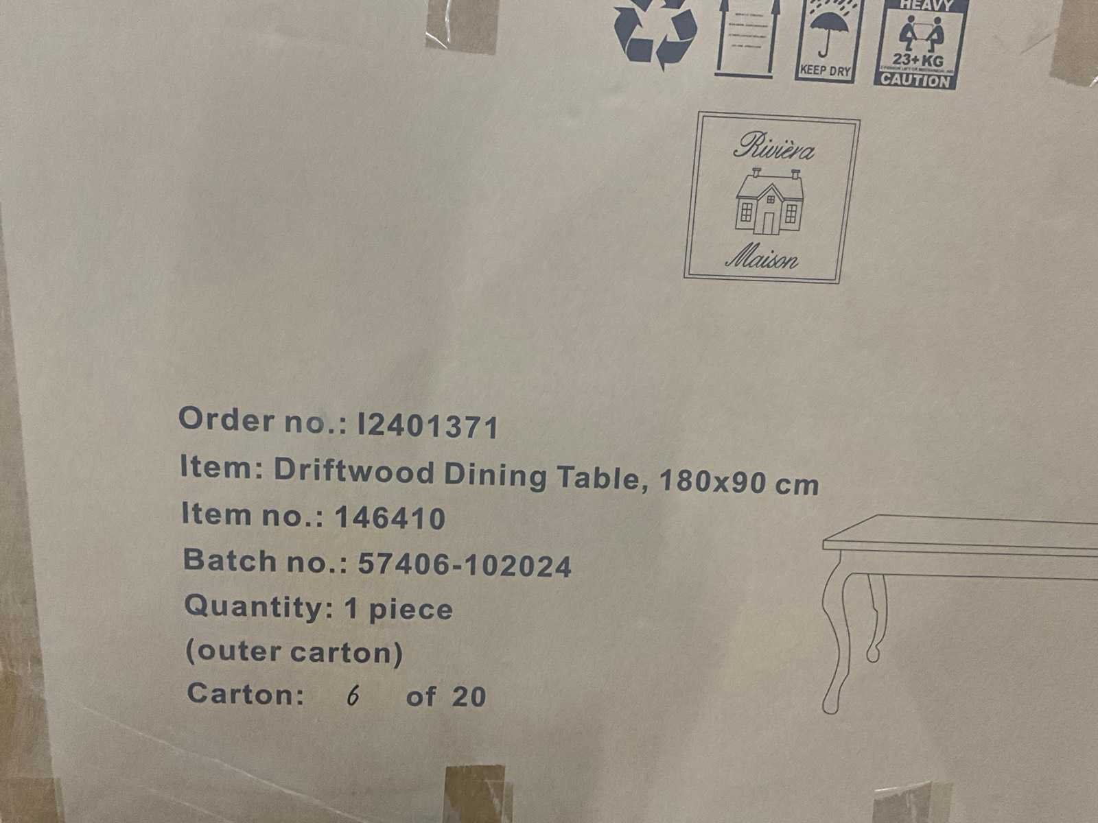 Nieuw in doos Merk: Rivièra Maison Model: Driftwood Lengte: 180cm Breedte: 90cm Hoogte: 78cm