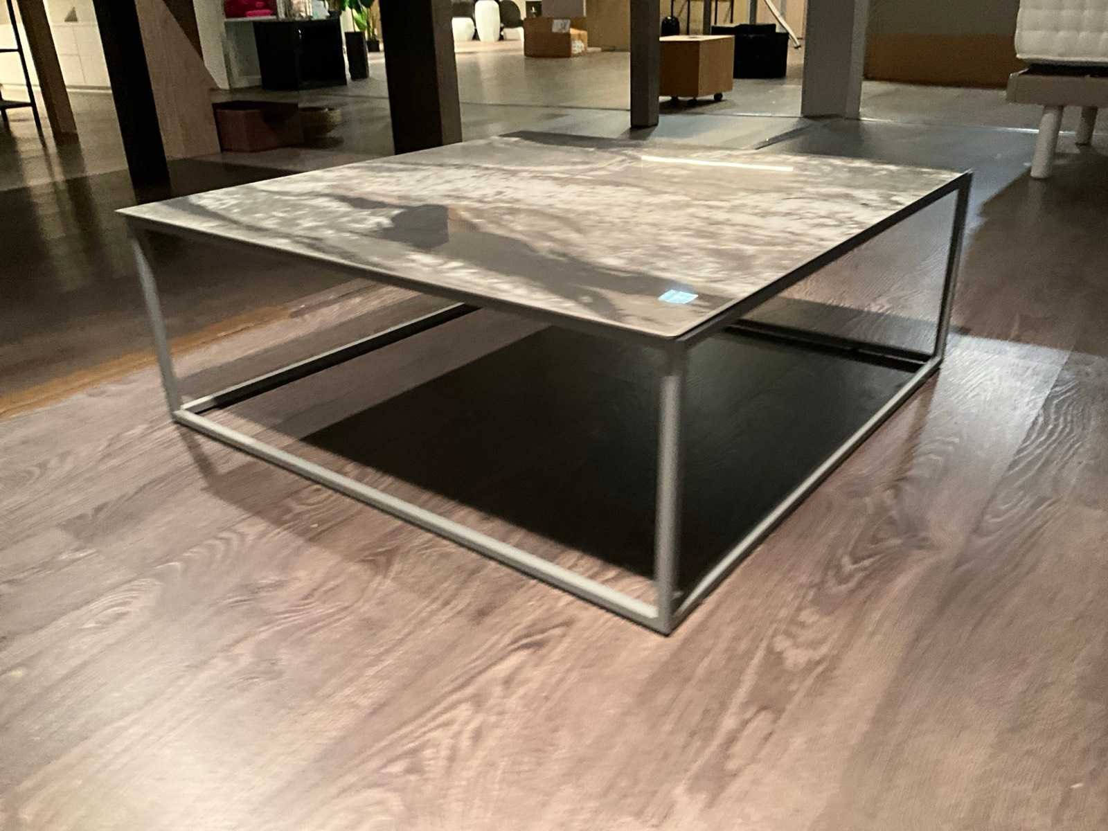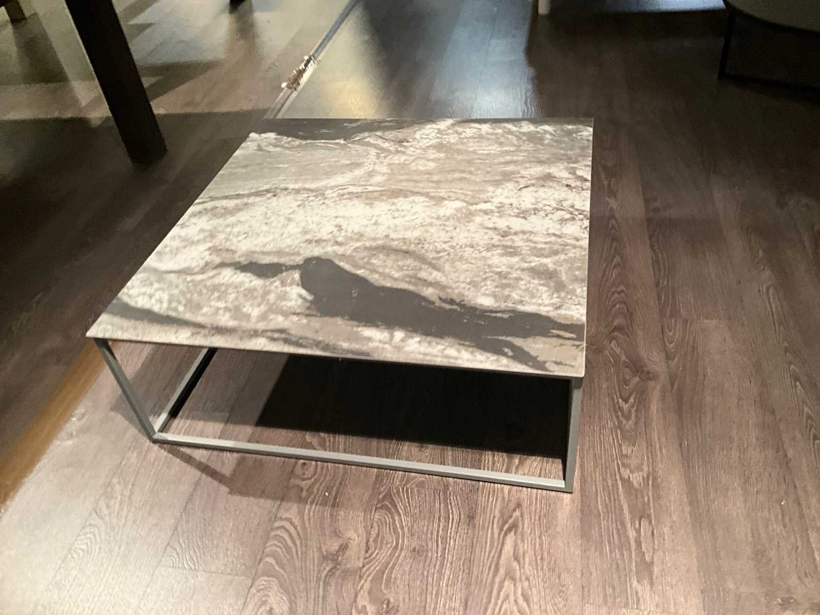 Poten metaal copacabana Blad keramiek Merk: Natuzzi Model: Cabaret Lengte: 90cm Breedte: 90cm Hoogte: 34cm