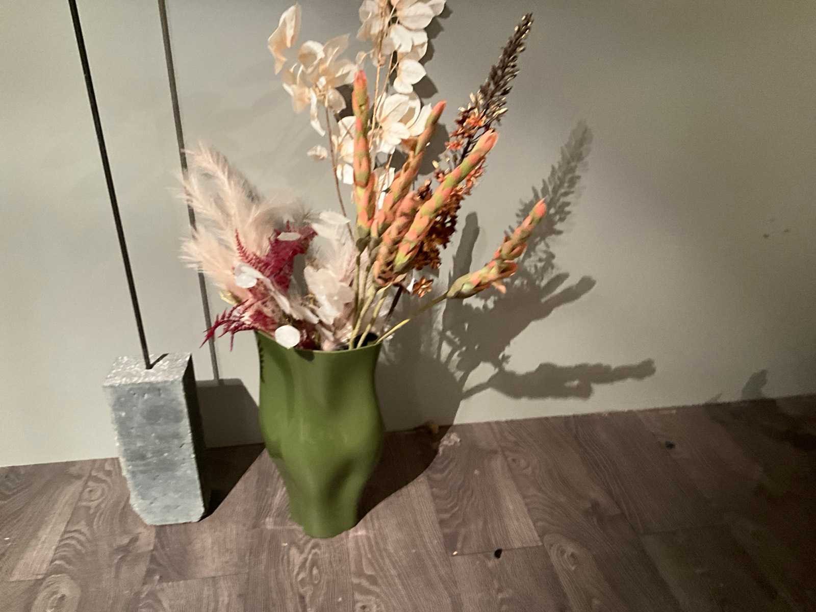 Decoratief beeld en vaas met div kunstbloemen