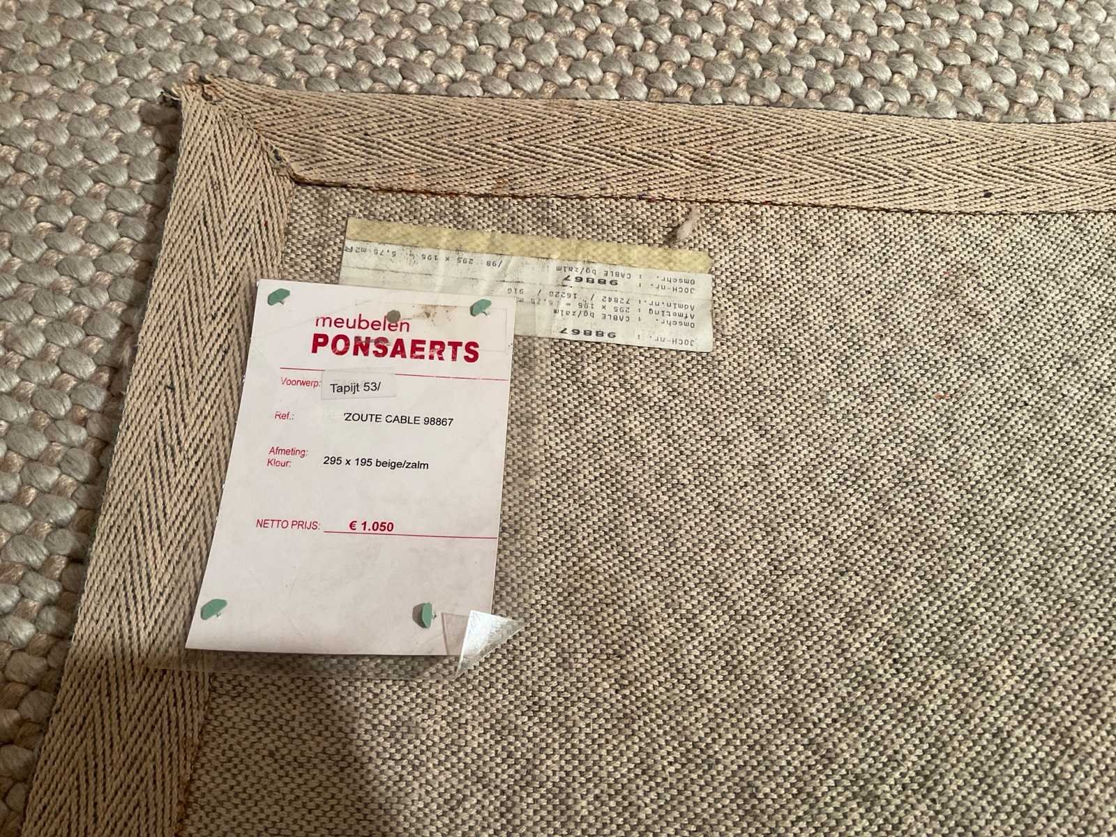 Merk: Janssens Model: Cable Kleur: Beige/zalm Lengte: 295cm Breedte: 195cm