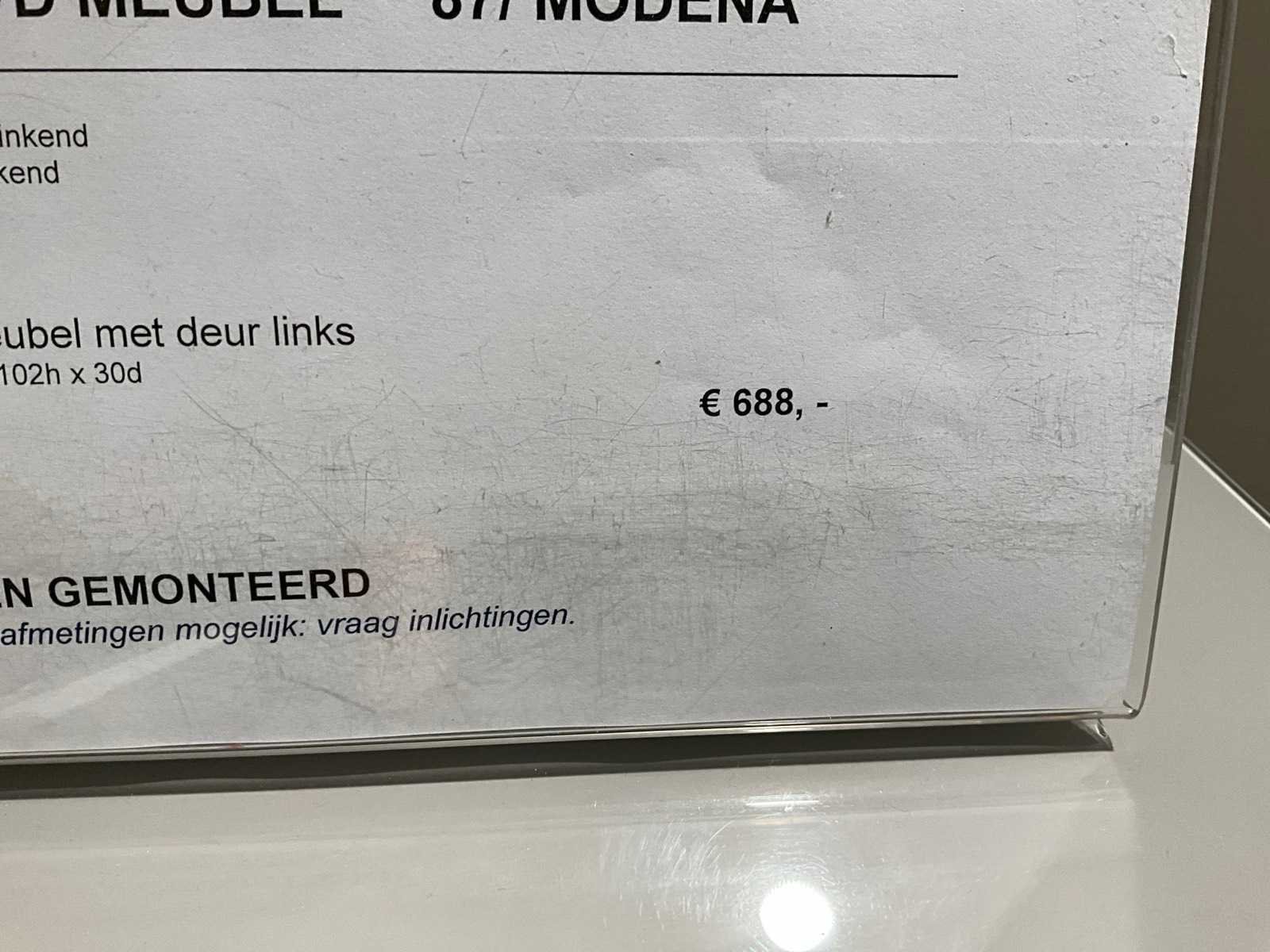 Met deur links Model: Modena Lengte: 30cm Breedte: 30cm Hoogte: 102cm