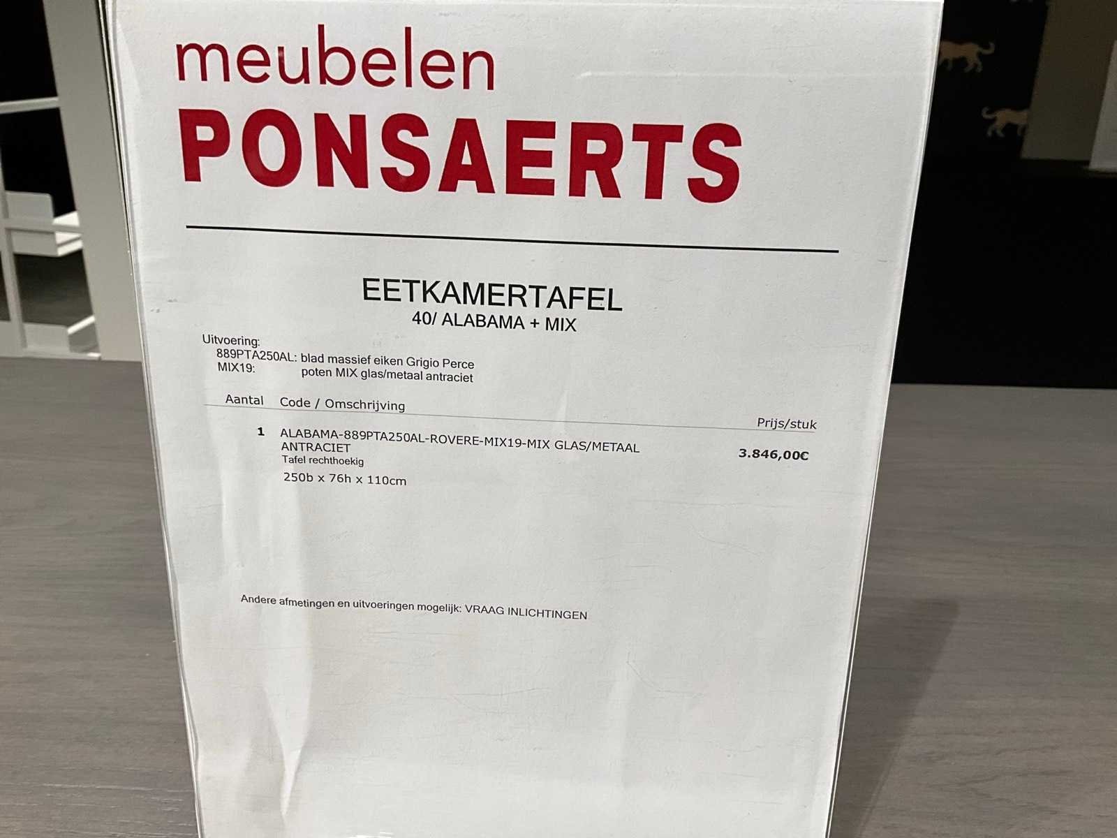 Model: Alabama Lengte: 250cm Breedte: 110cm Hoogte: 76cm Materiaal: Glas metaal