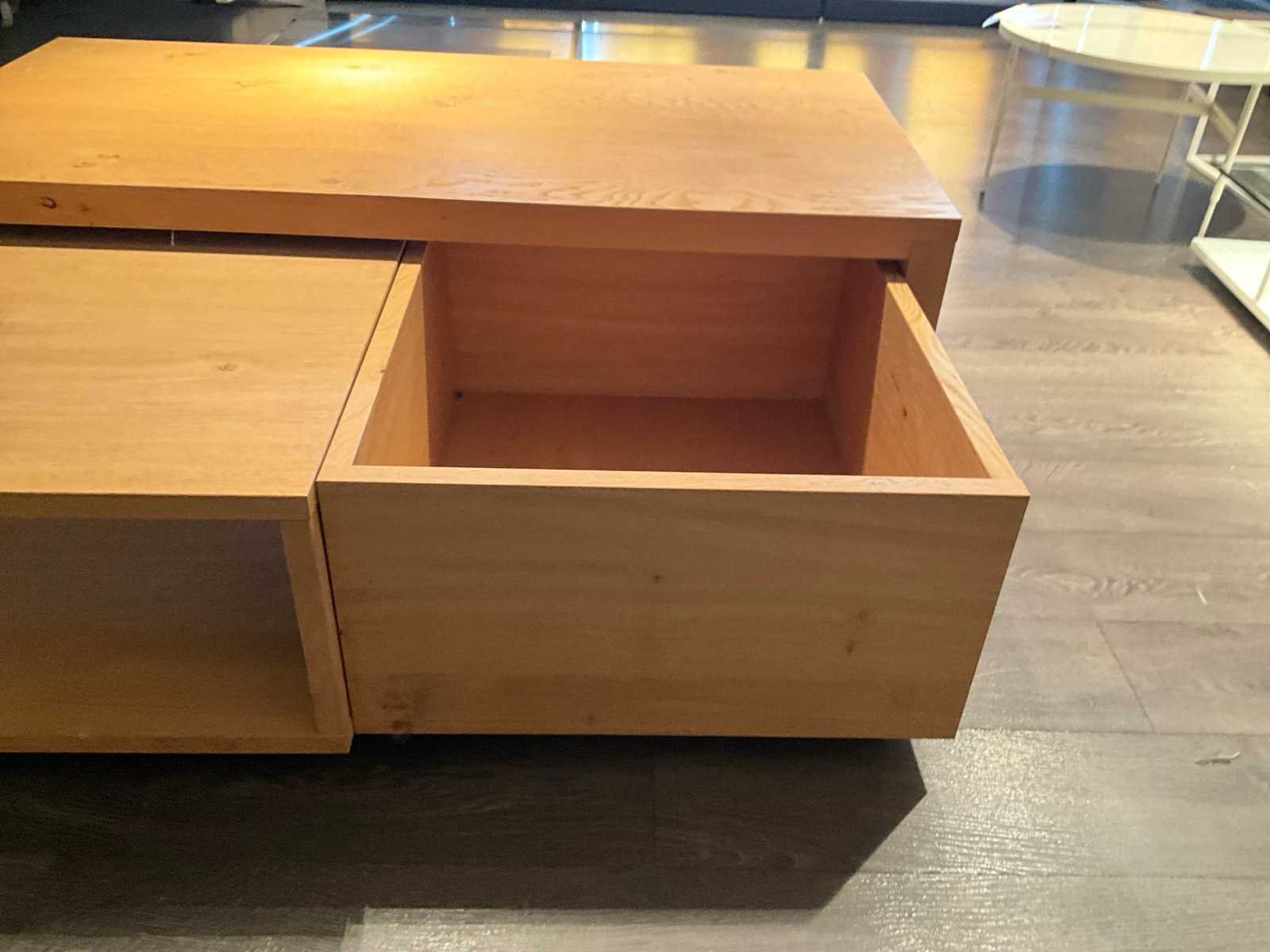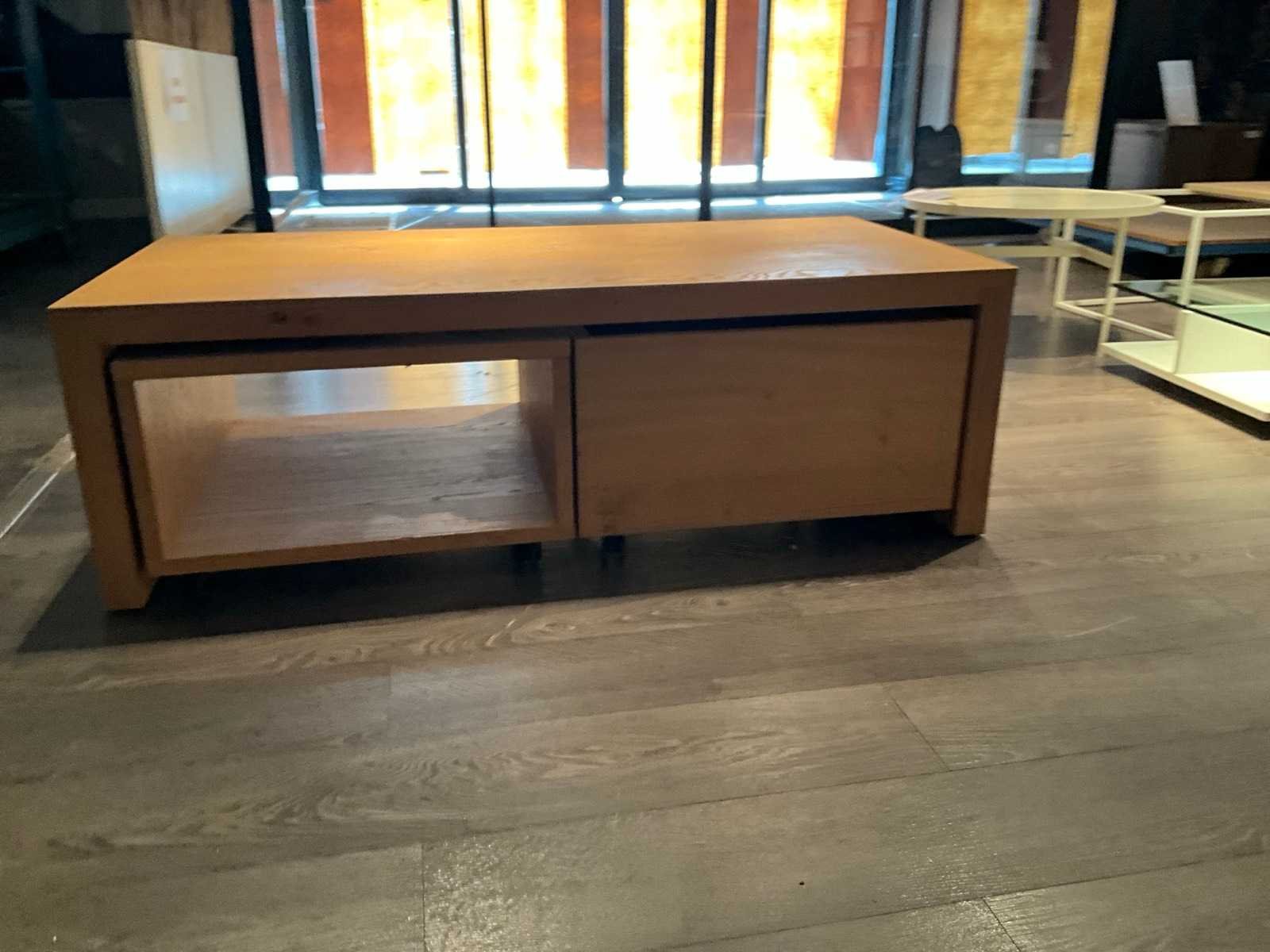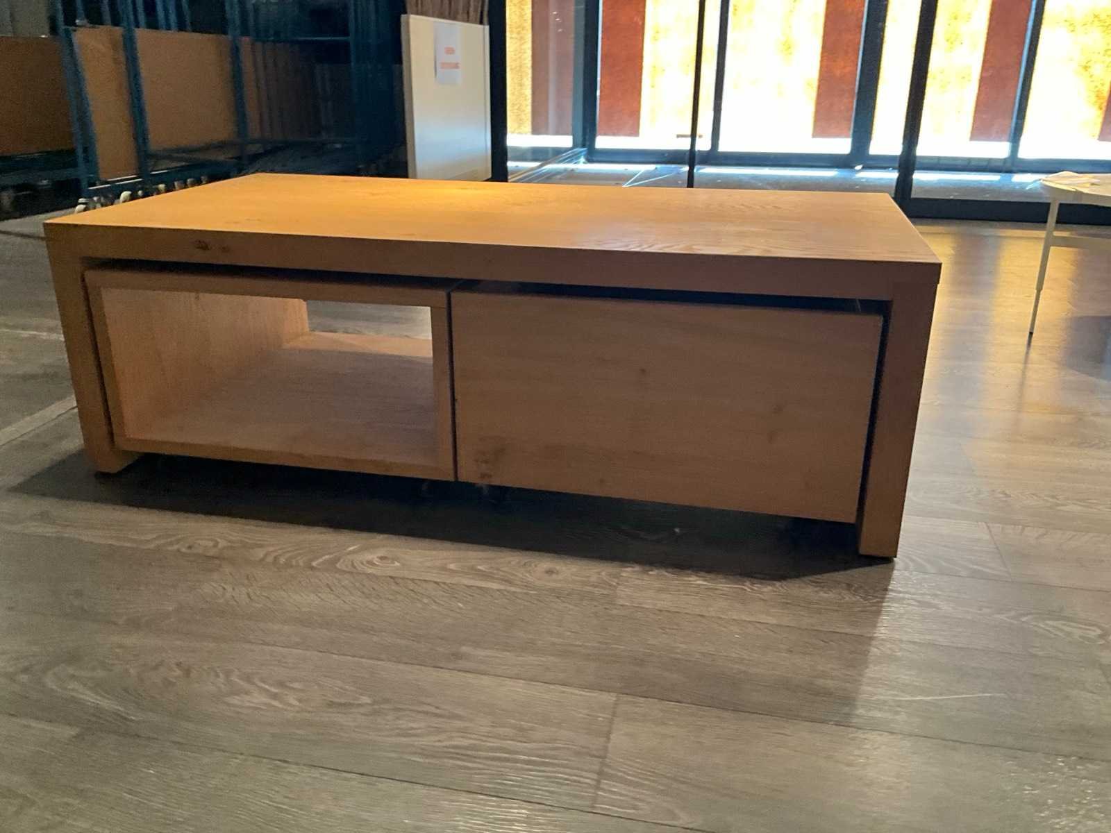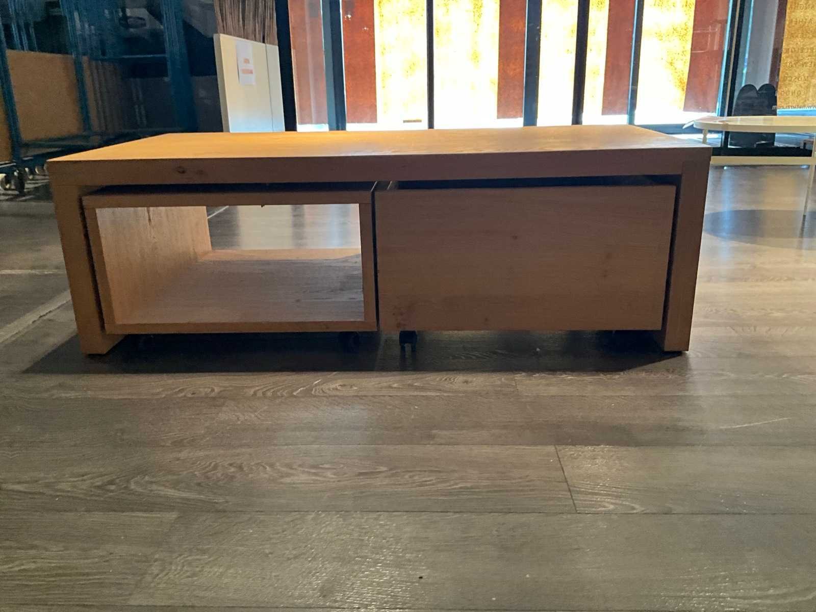 Inclusief 2 verrijdbare onderschuifbakken Licht beschadigd Merk: Mintjens Model: Libris Lengte: 140cm Breedte: 70cm Hoogte: 45cm