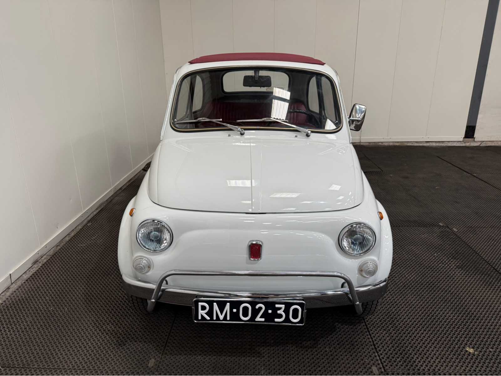 Kenteken: RM-02-30 Merk: Fiat Type: 500 Bouwjaar: 1969 Afgelezen kilometerstand: 39942 NAP status: Geen oordeel Brandstof: benzine Datum eerste toelating: 1969-03-28 Datum eerste toelating (NL): 2025-08-26 Nationaliteit documenten: Nederlands Kentekenpapieren compleet?: true Carrosserie: sedan Vermogen (pk): 18 Vermogen (kW): 13kW Emissieklasse: 0 Aantal deuren: 2 Aantal zitplaatsen: 4 Kleur: wit Cilinderinhoud: 499 Aantal cilinders: 2 Ledig gewicht: 499