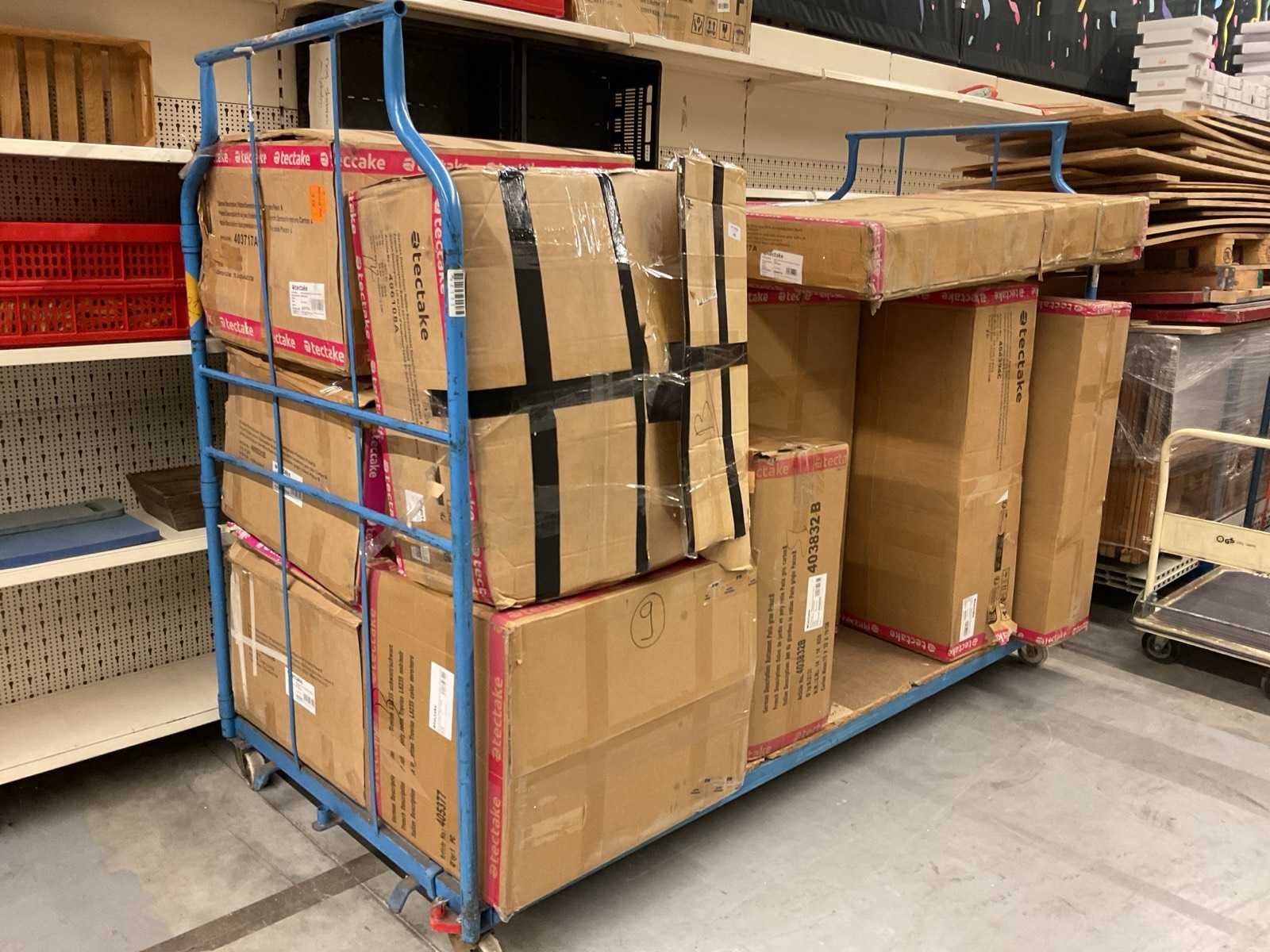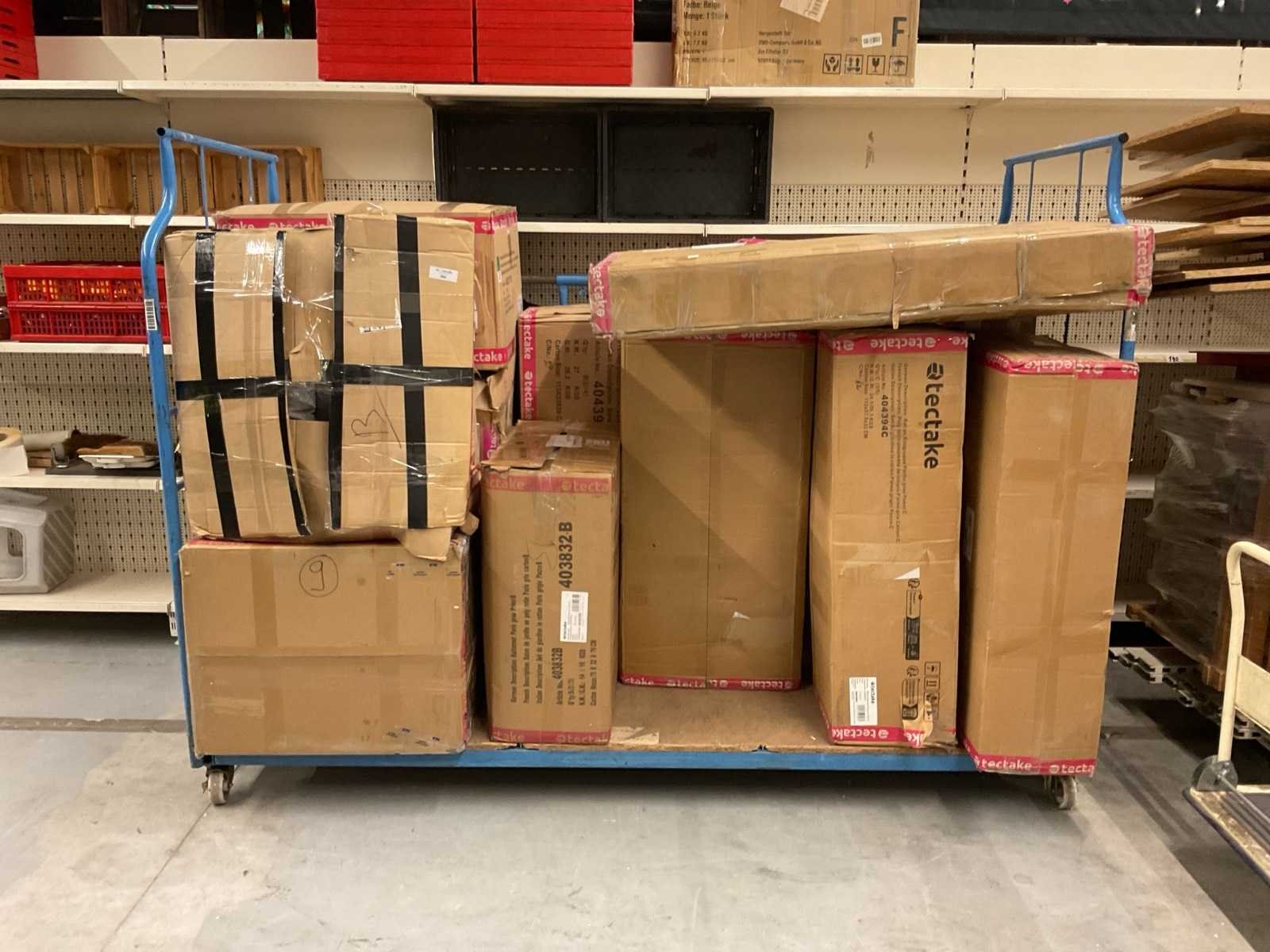 Niet bekend wat erin zit en of het compleet is; verpakt in 18 dozen; zonder meubelkar