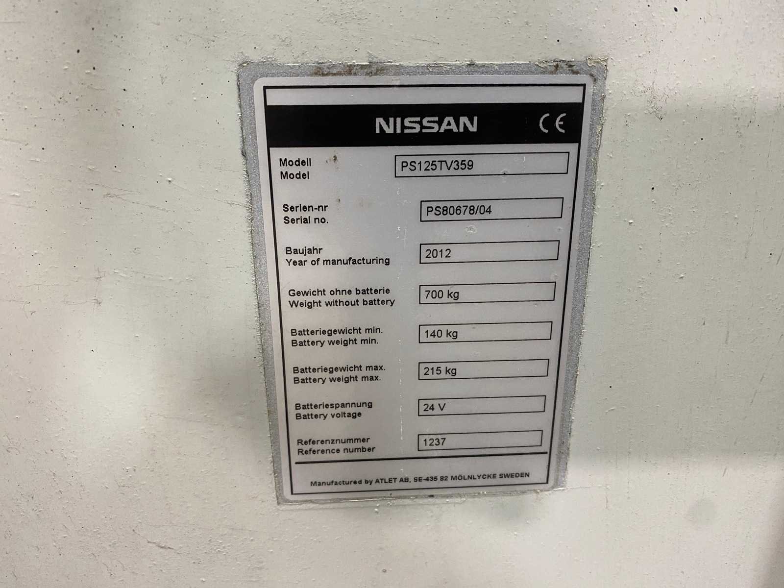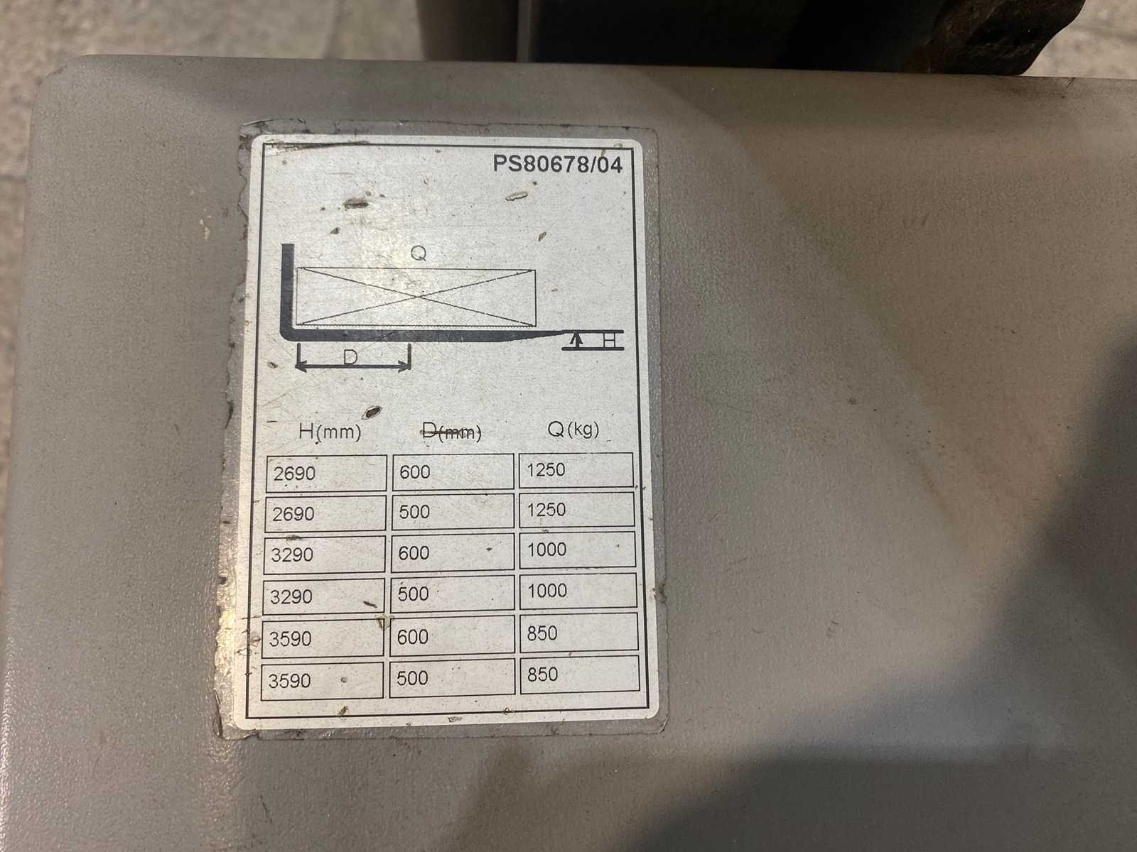 Merk: Atlet Type: PS125TV359 Bouwjaar: 2012 Serienummer: PS80678/04 Hefvermogen: 1200kg Hefhoogte: 3560mm Lepellengte: 1200mm Afgelezen urenstand: 4083 Eigen gewicht: 915kg Minimale doorrijhoogte: 2300mm Totale afmeting L: 2050mm Totale afmeting Breedte: 800mm Totale afmeting Hoogte: 2300mm Accu lader: true
