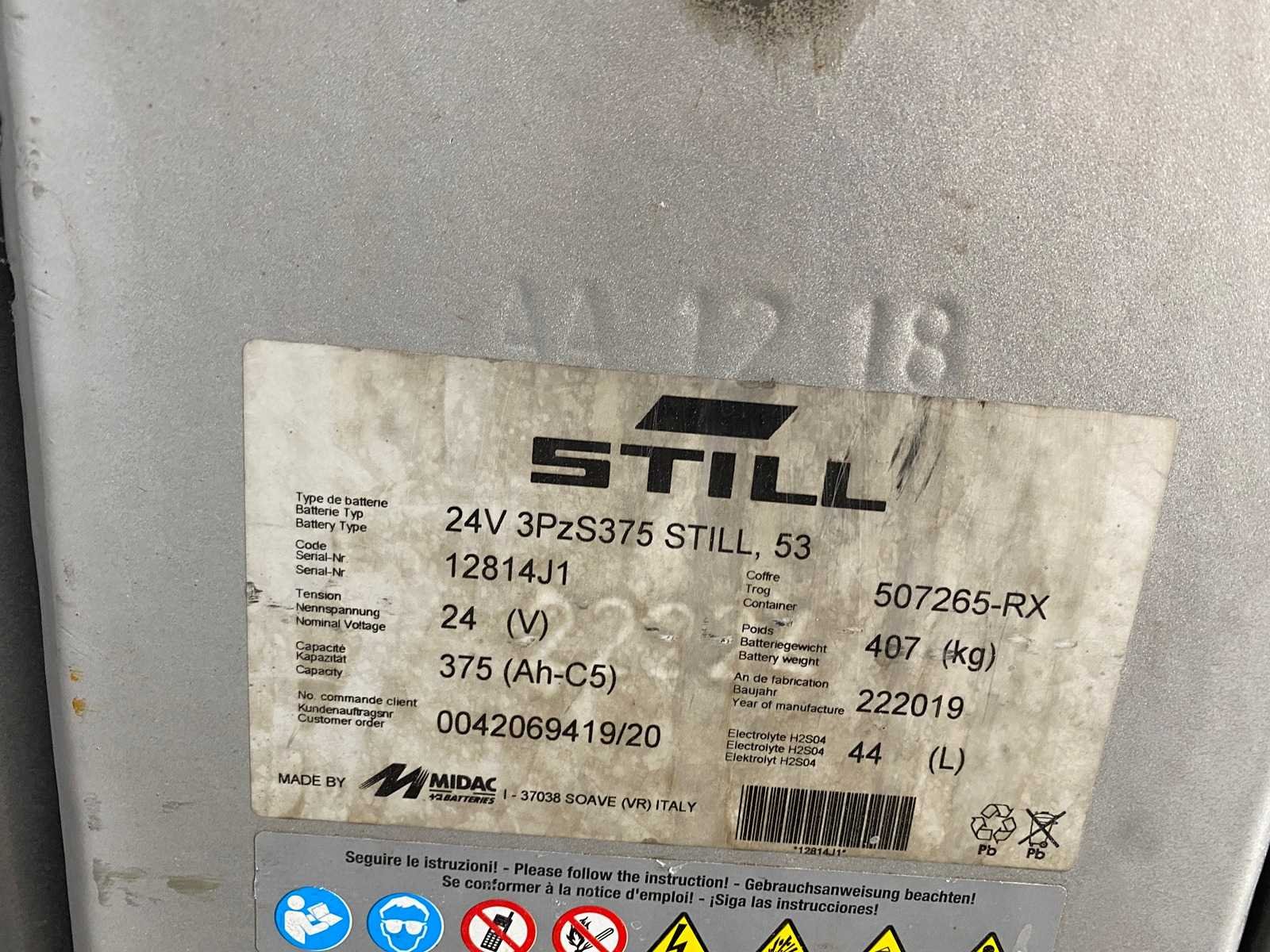 Merk: Still Type: OPX-L12 Bouwjaar: 2019 Serienummer: F21082V00183 Hefvermogen: 1000kg Hefhoogte: 800mm Lepellengte: 1200mm Accu lader: true Afgelezen urenstand: 1404 Eigen gewicht: 1376kg Totale afmeting L: 2600mm Totale afmeting Breedte: 800mm Totale afmeting Hoogte: 1400mm