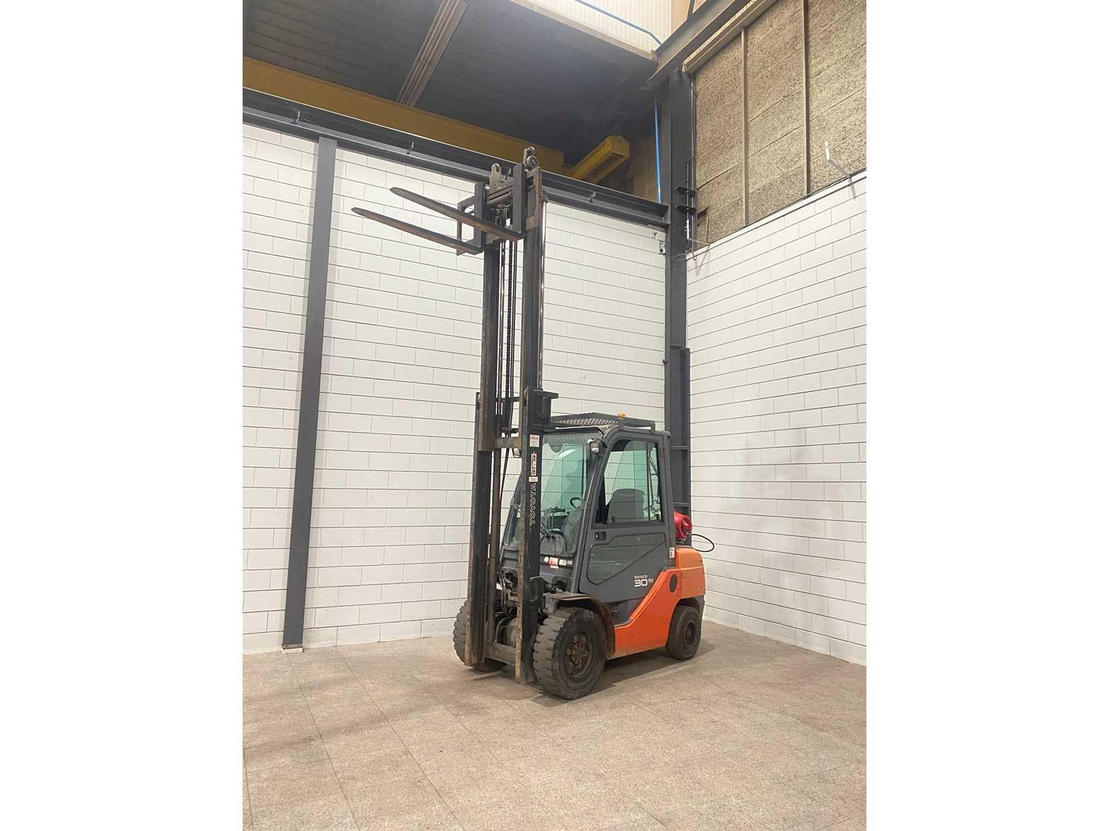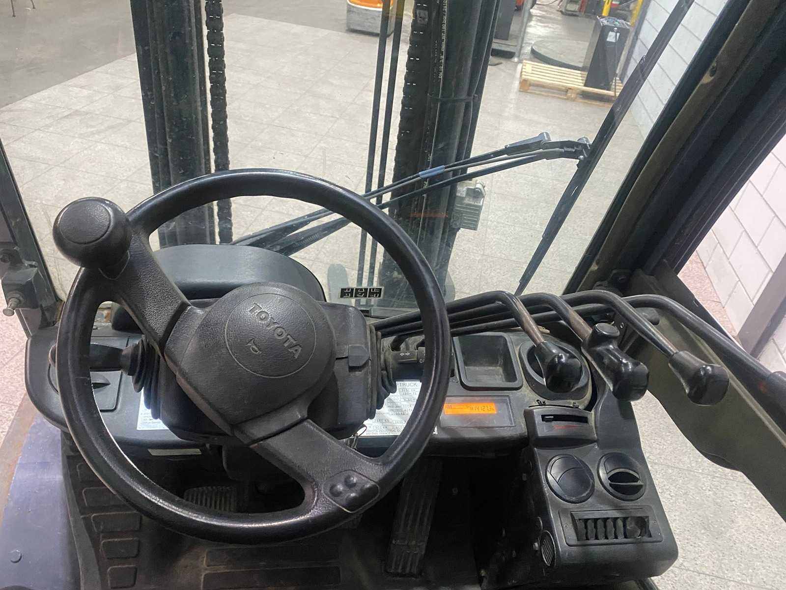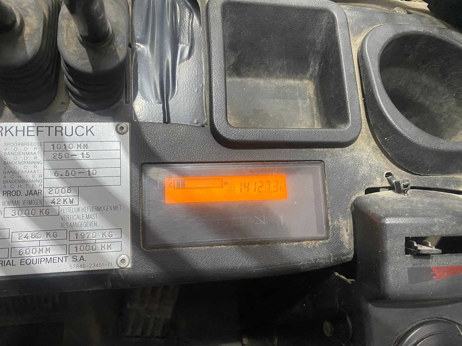 Merk: Toyota Type: 02-8 FGF 30 Bouwjaar: 2008 Serienummer: 10418 Brandstof: Elektrisch Mast: Duplex Soort band: Volrubber Afgelezen urenstand: 14127 Side-shift: true Duplex mast: true Eigen gewicht: 4210kg Hefvermogen: 3000kg Lepellengte: 1200mm Hefhoogte: 3740mm Vol rubber banden: true Minimale doorrijhoogte: 2470mm Totale afmeting L: 2900mm Totale afmeting Breedte: 1250mm Totale afmeting Hoogte: 2470mm LPG: true