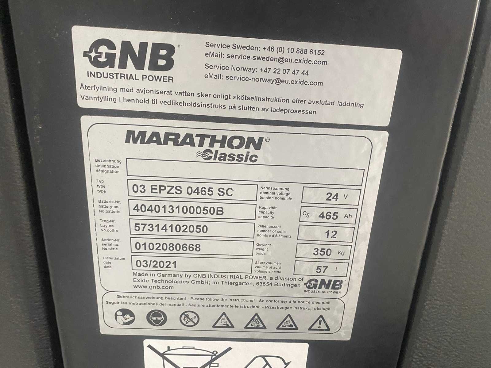 Bouwjaar batterij 2021 Merk: BT Type: LPE240 Bouwjaar: 2008 Serienummer: 6020636 Hefvermogen: 4500kg Meerij palletwagen: true Accu lader: true Afgelezen urenstand: 251 Eigen gewicht: 1650kg Totale afmeting L: 3200mm Totale afmeting Breedte: 1620mm Totale afmeting Hoogte: 1600mm