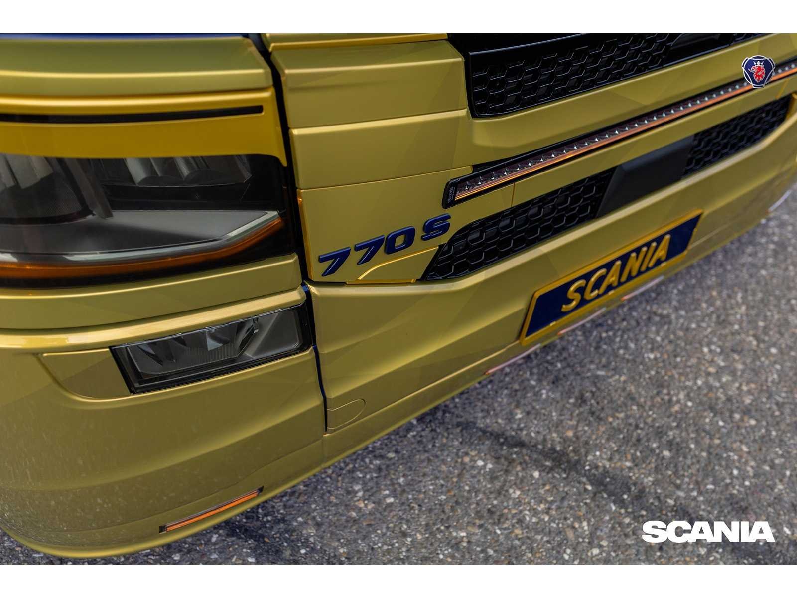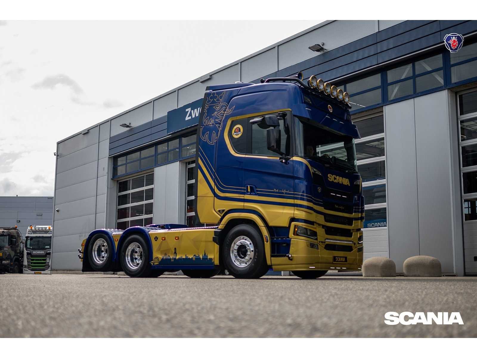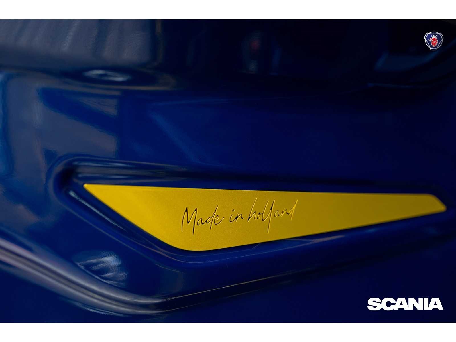 Met trots presenteren wij deze unieke Scania 770S 6x2 trekker, het miljoenste chassis dat in mei 2025 van de productielijn in Zwolle rolde. Een bijzondere mijlpaal in de geschiedenis van Scania Production Zwolle, waar sinds 1964 met vakmanschap, passie en precisie wordt gebouwd aan de toekomst van transport. Deze Scania 770S met luxe S-cabine (hoog dak) is voorzien van Scania’s krachtigste V8-motor (770 pk) en symboliseert de innovatie, betrouwbaarheid en trots van duizenden medewerkers die de afgelopen decennia hebben bijgedragen aan dit succes. Het voertuig is opgebouwd tot een exclusieve showtruck, en vormt daarmee een stuk levendige Scania historie. Het chassis heeft luchtvering rondom, Alcoa Durabright-velgen en Goodyear-banden. De truck beschikt over een G38 Opticruise-transmissie met kruipversnelling, retarder en drie rijmodi. Binnenin: lederen premium-stoelen, smart dashboard, automatische klimaatregeling en een uitschuifbaar bed. Volledige LED-verlichting, 12” infotainmentsysteem met navigatie, spraakbediening en Bluetooth. De truck is ook uitgerust met een uitgebreid pakket aan veiligheidssystemen, waaronder automatische noodrem (AEB), adaptieve cruisecontrol (ACC), rijstrookassistent (LKA), stabiliteitscontrole (ESP), dodehoekwaarschuwing, en meer. De opbouw is “full spec” en “custom made”, met unieke details buiten én binnen. In het interieur wordt onder andere gewerkt met zwart leder en goudkleurige stiknaden, in lijn met het jubileumthema. Exterieurdetails omvatten een opvallende kleurstelling (saffierblauw met gouden accenten) en thematische striping. Op de zijkanten is de skyline van Zwolle verwerkt, inclusief herkenbare gebouwen zoals de Peperbus en de Sassenpoort. De cabine draagt het jubileumlogo “Scania 1 Million Zwolle”, Scania-Vabis en de griffioen worden prominent weergegeven. Dit voertuig wordt verkocht met fabrieksgarantie en heeft geen kenteken. Merk: Scania Type: 770S Bouwjaar: 2025 Chassisnummer VIN: 5781969 Cilinderinhoud: 16400cc Kilometerstand bij opname: 5000km Type transmissie: Automatisch Aantal assen: 3 Asconfiguratie: 6x2 Fuel Type: Diesel Laadvermogen: 18000kg Aantal sleutels: 2 Emissieklasse: Euro 6 Slaapcabine: true Navigatie: true Xenon verlichting: false LED-koplampen: true Eigen gewicht: 9876kg Totale afmeting L: 6821mm Totale afmeting Breedte: 2550mm Totale afmeting Hoogte: 4000mm Startinformatie: Start en rijdt Nationaliteit documenten: Nederlands Aantal zitplaatsen: 2 Zelf rijdend exporteren: Niet mogelijk GS Code: 8704 Automaat: true Diesel: true No self drive export!: true