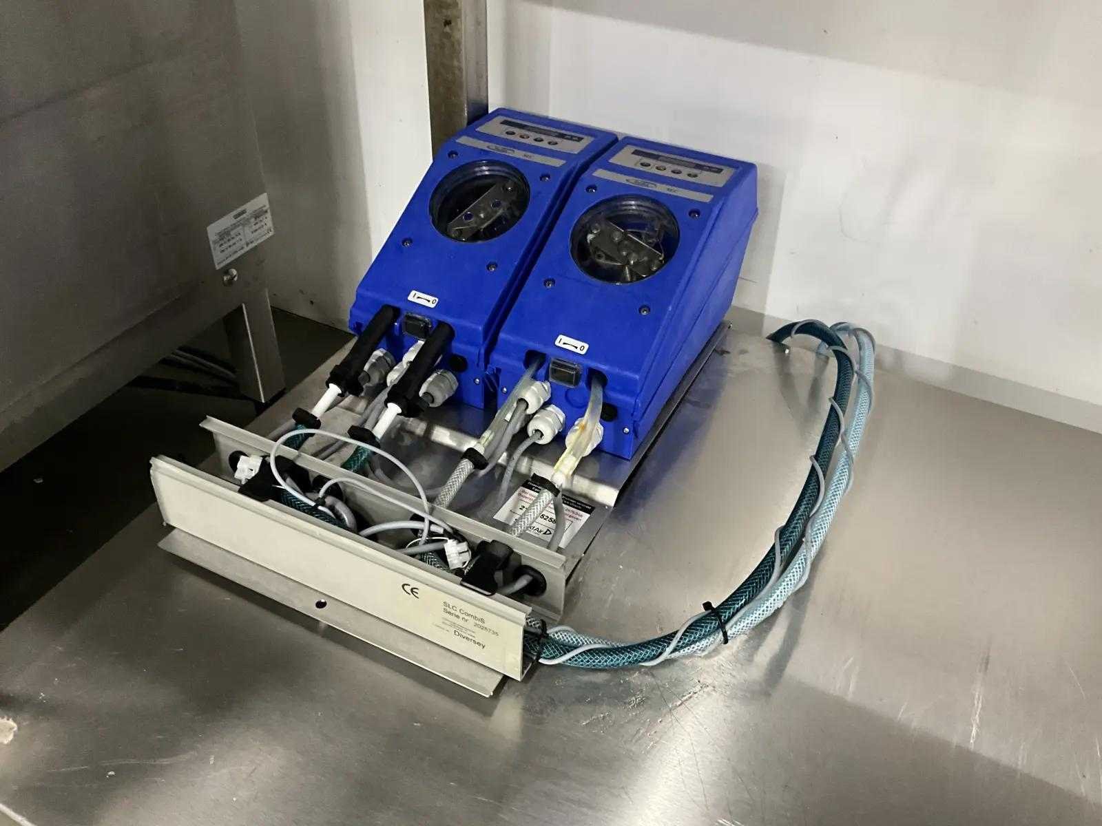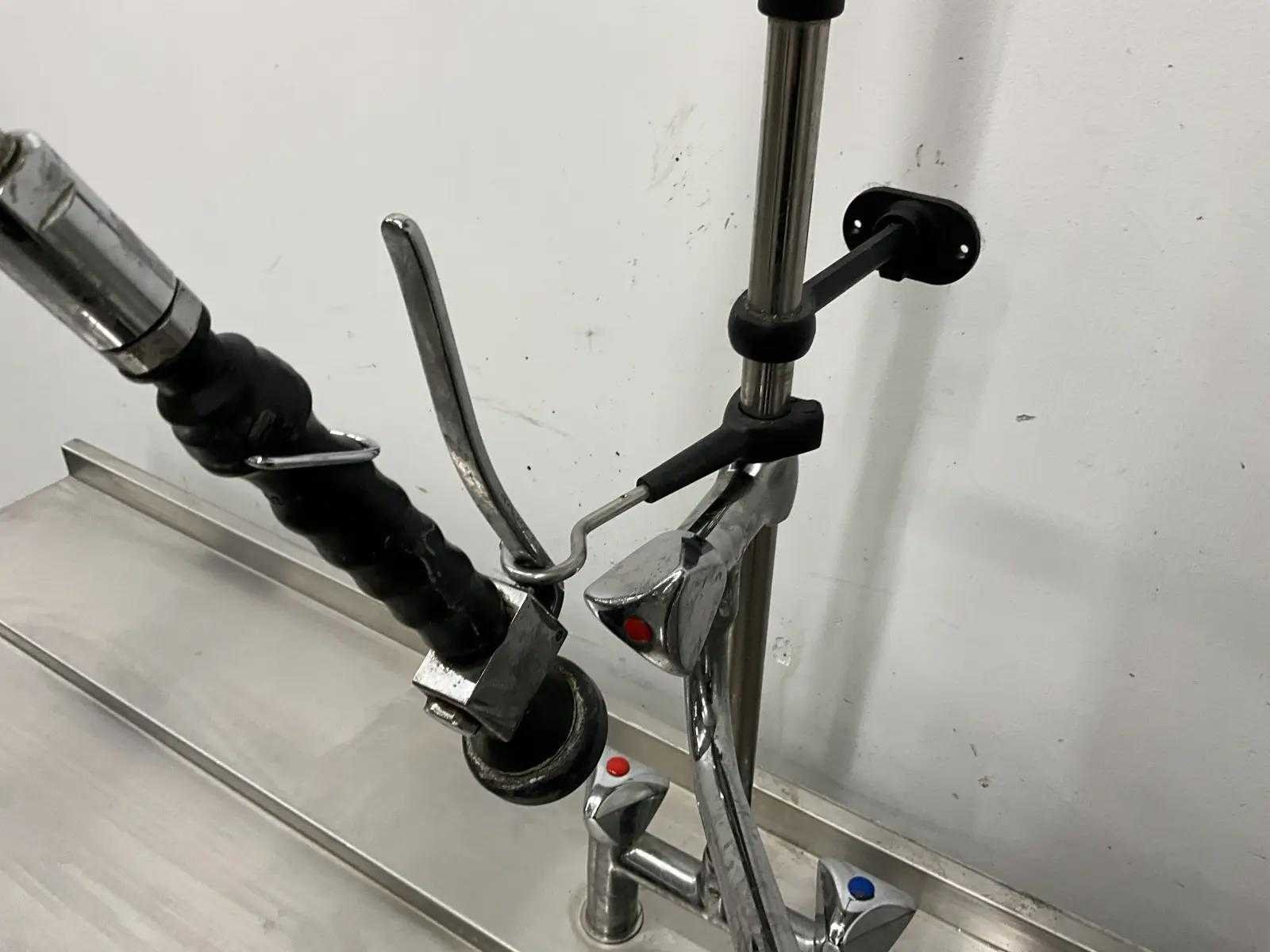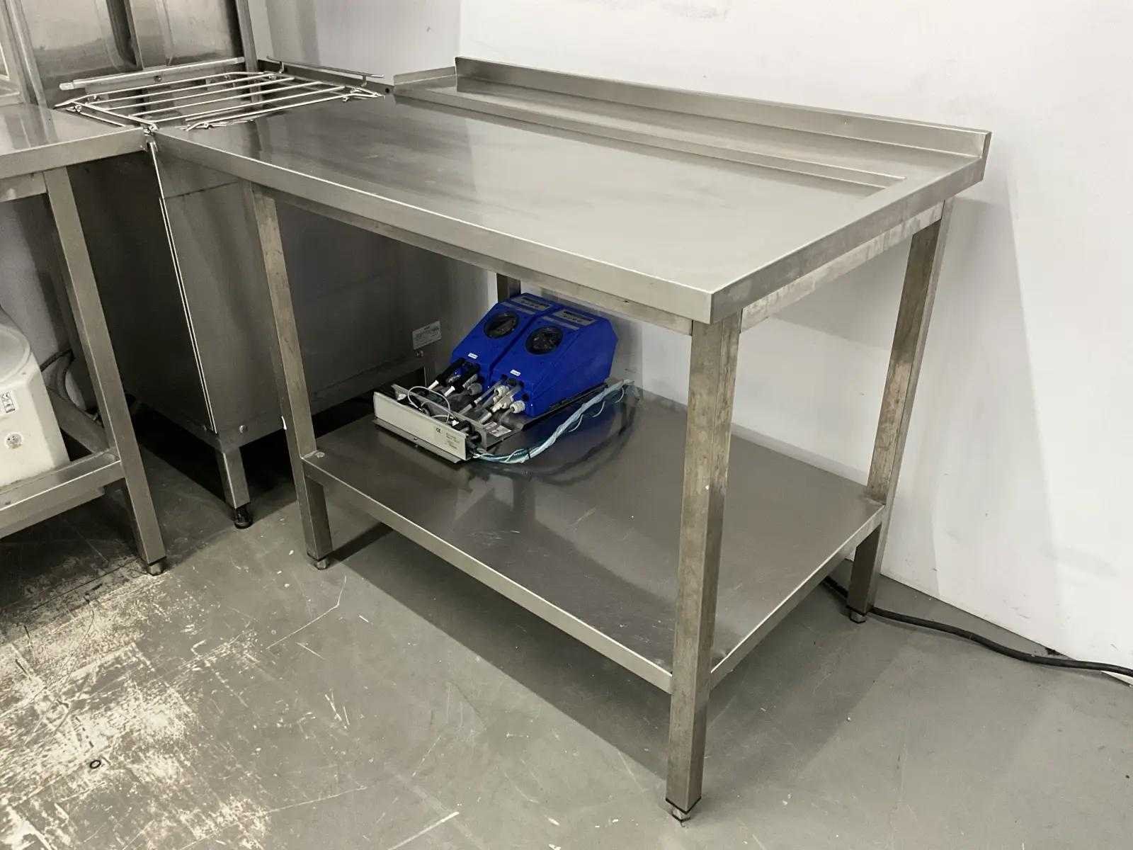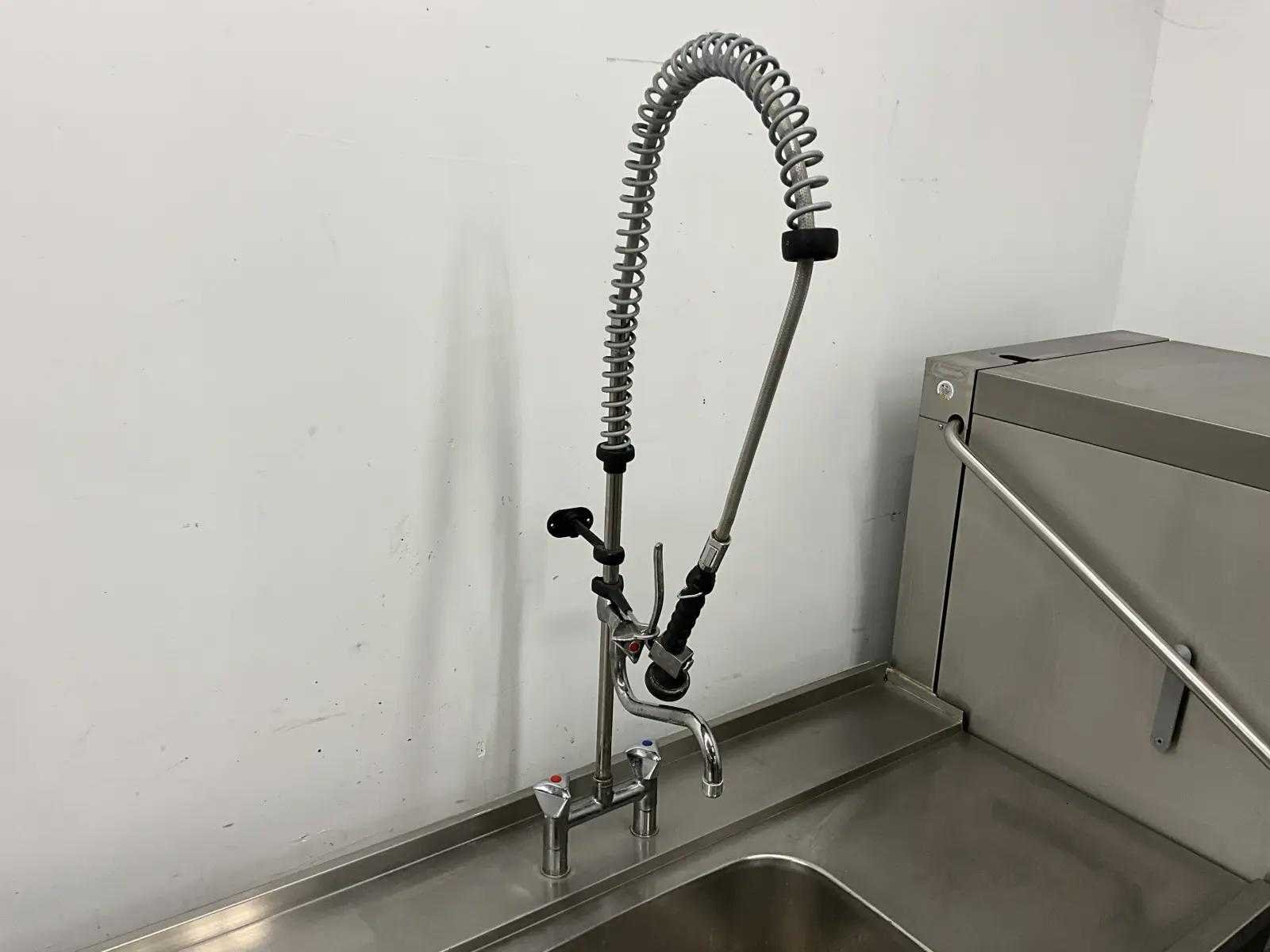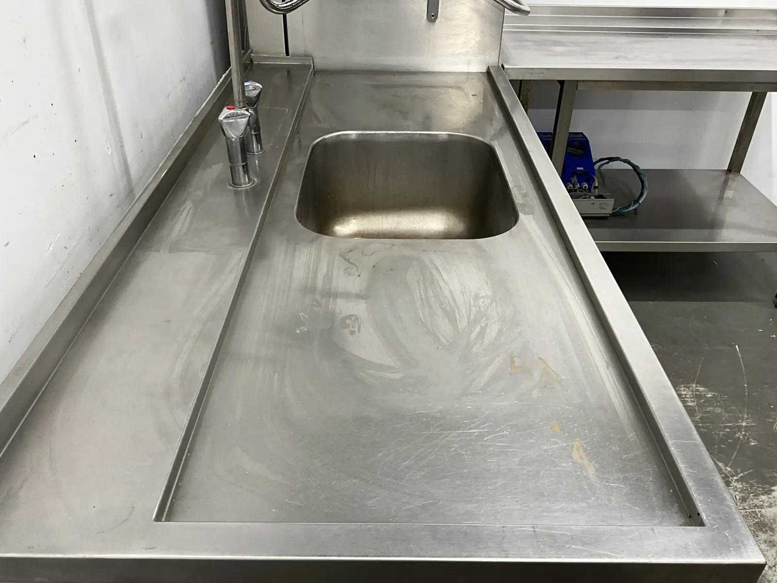 Complete spoelkeuken v.v. korven spoeltafel met mengkraan en voorspoeldouche (160x75x90 cm), korven afvoertafel (120x750x90 cm), waterontharder (Mijar Senior B65) en zeepdoseersysteem Suma Merk: Hobart Type: AMX-10A Vermogen: 7.1kW Aansluiting: 400V Totale afmeting L: 640mm Totale afmeting Breedte: 730mm Lengte: 640 Totale afmeting Hoogte: 1530mm