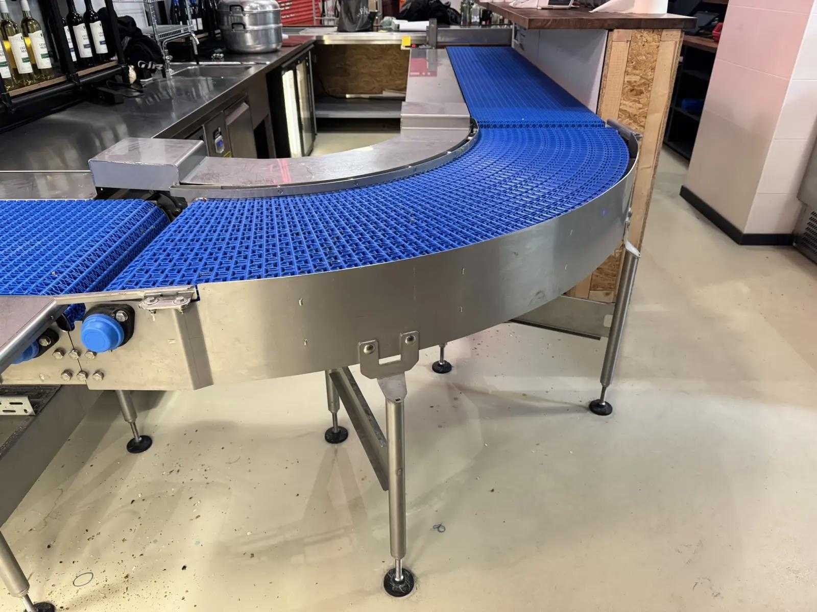Transportband met 20 meter aan bandlengte. de breedte van de tafel is 1000mm en de transportband breedte is 50 cm. Bekijk een video van de werking door deze link te kopieren: https://www.youtube.com/watch?v=AtKLb5fPcGQ Reeds professioneel gedemonteerd en zorgvuldig getransporteerd naar de afhaallocatie. LET OP! Voor bovenstaande kunnen additionele kosten van toepassing zijn. Merk: New Motion Type: MBC-S & MBC-C Bouwjaar: 2021 Totale afmeting L: 15550mm Totale afmeting Breedte: 4200mm Totale afmeting Hoogte: 1900mm
